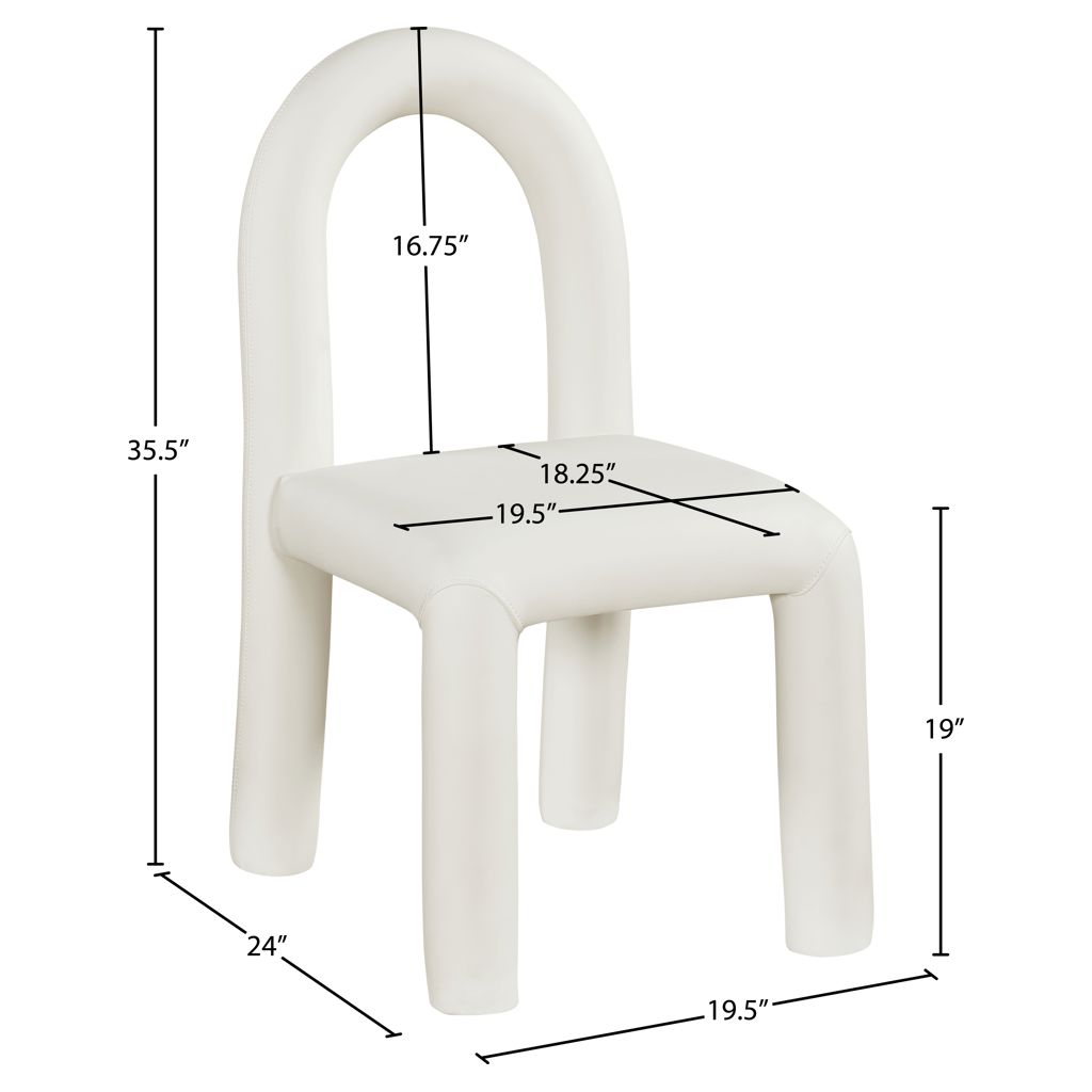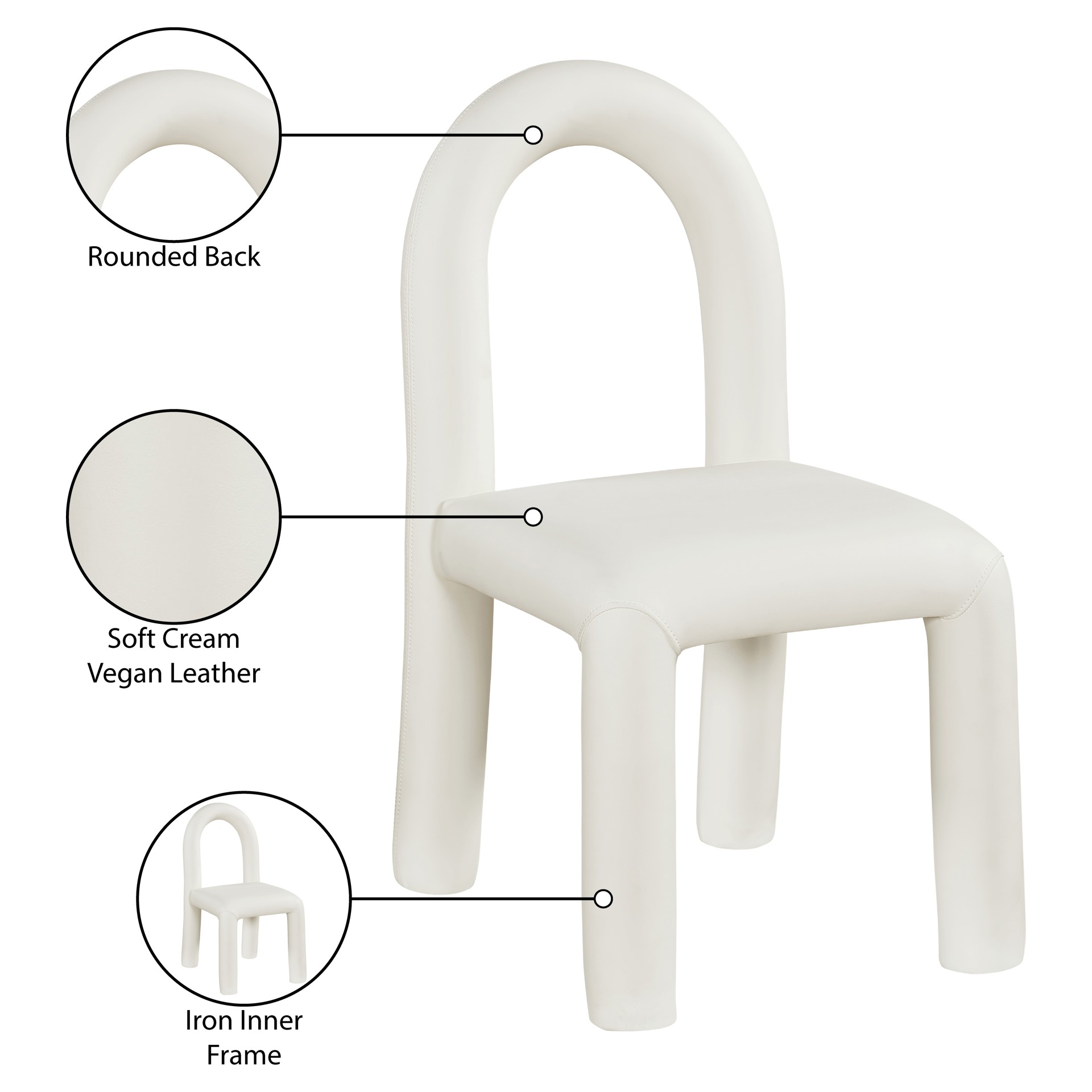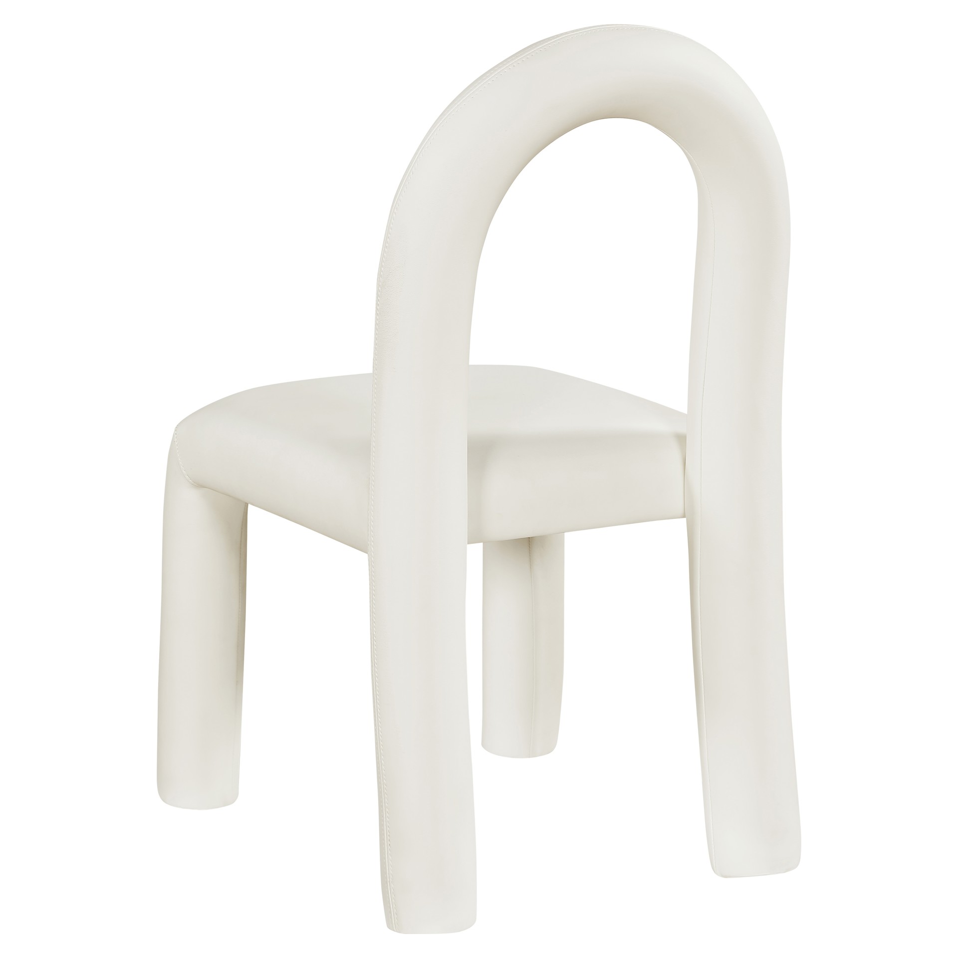 Laissez-vous séduire par le charme de la chaise de salle à manger Amari en cuir végétalien de Meridian Furniture. Son design captivant et sa luxueuse finition en cuir végétalien crème rehaussent n'importe quel espace avec une élégance sans effort.