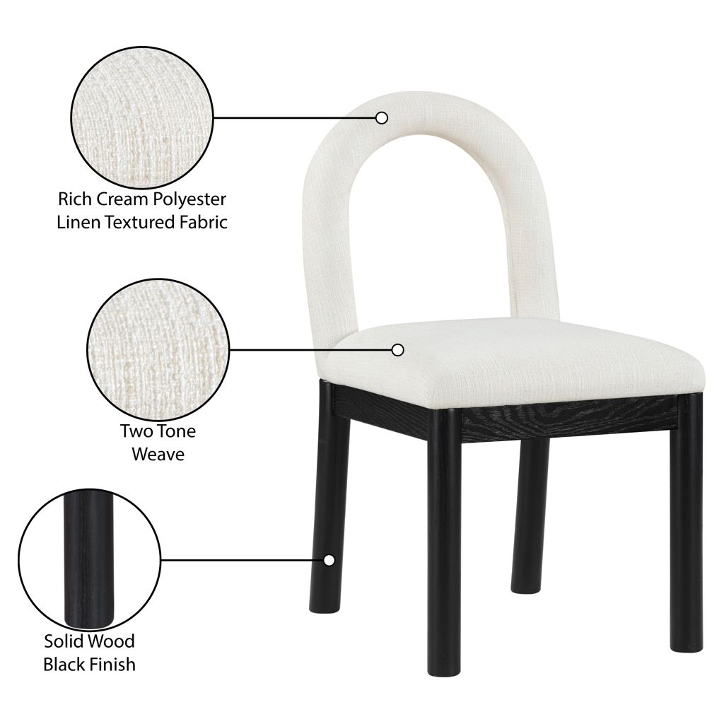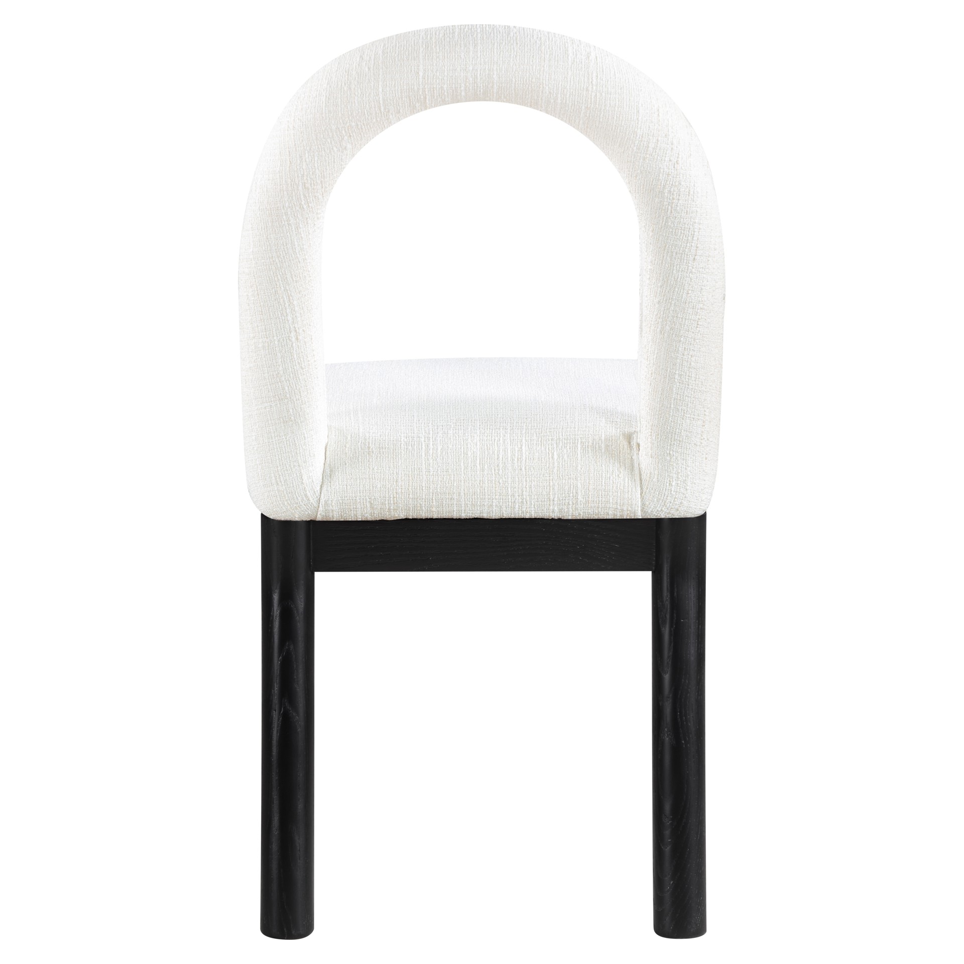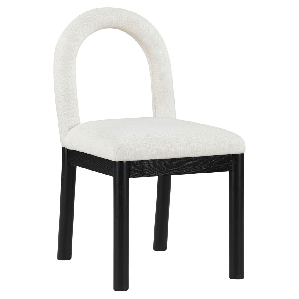 Laissez-vous séduire par le charme de la chaise de salle à manger Conrad en tissu texturé en lin de Meridian Furniture. Son design captivant et sa luxueuse finition en tissu texturé en lin crème rehaussent n'importe quel espace avec une élégance sans effort.
