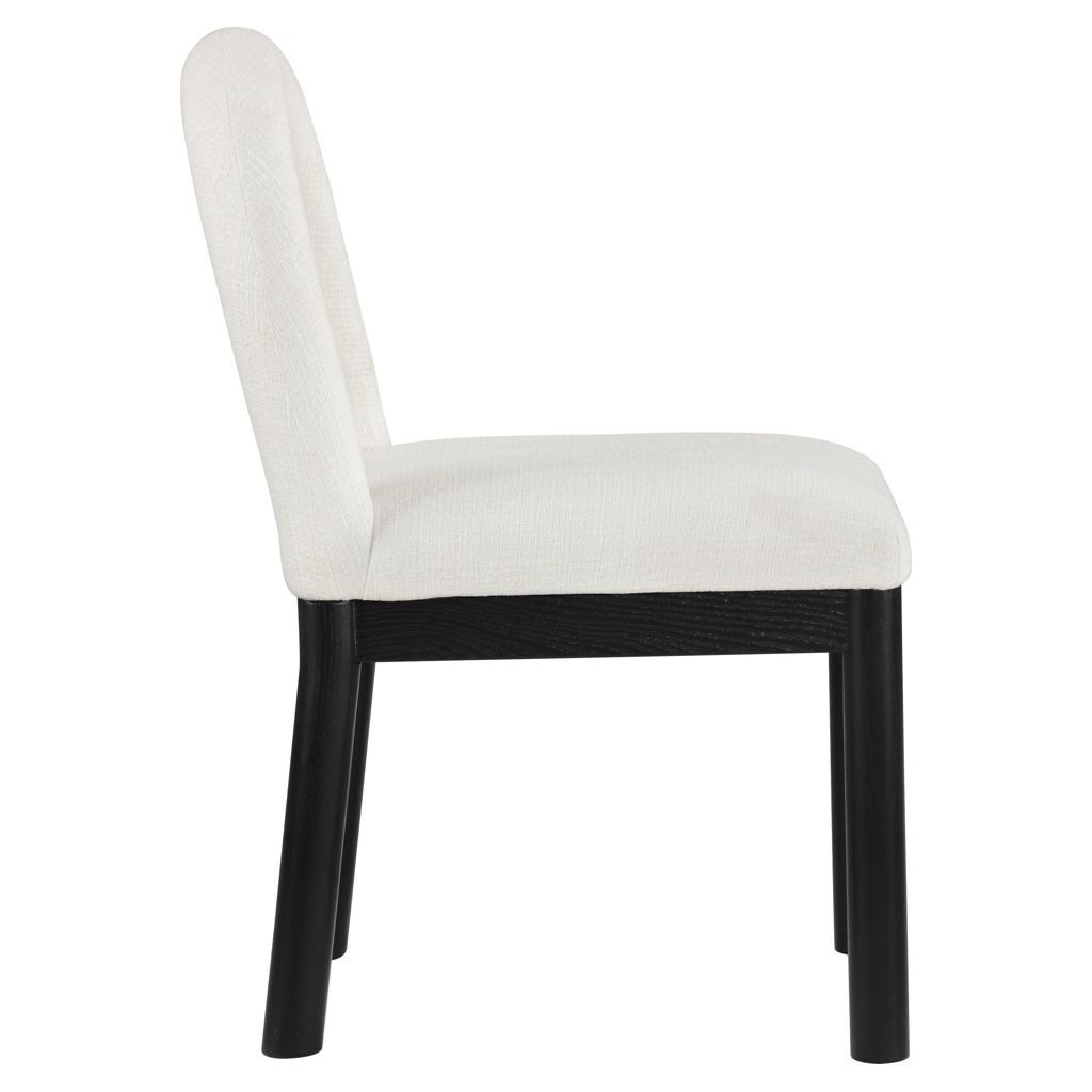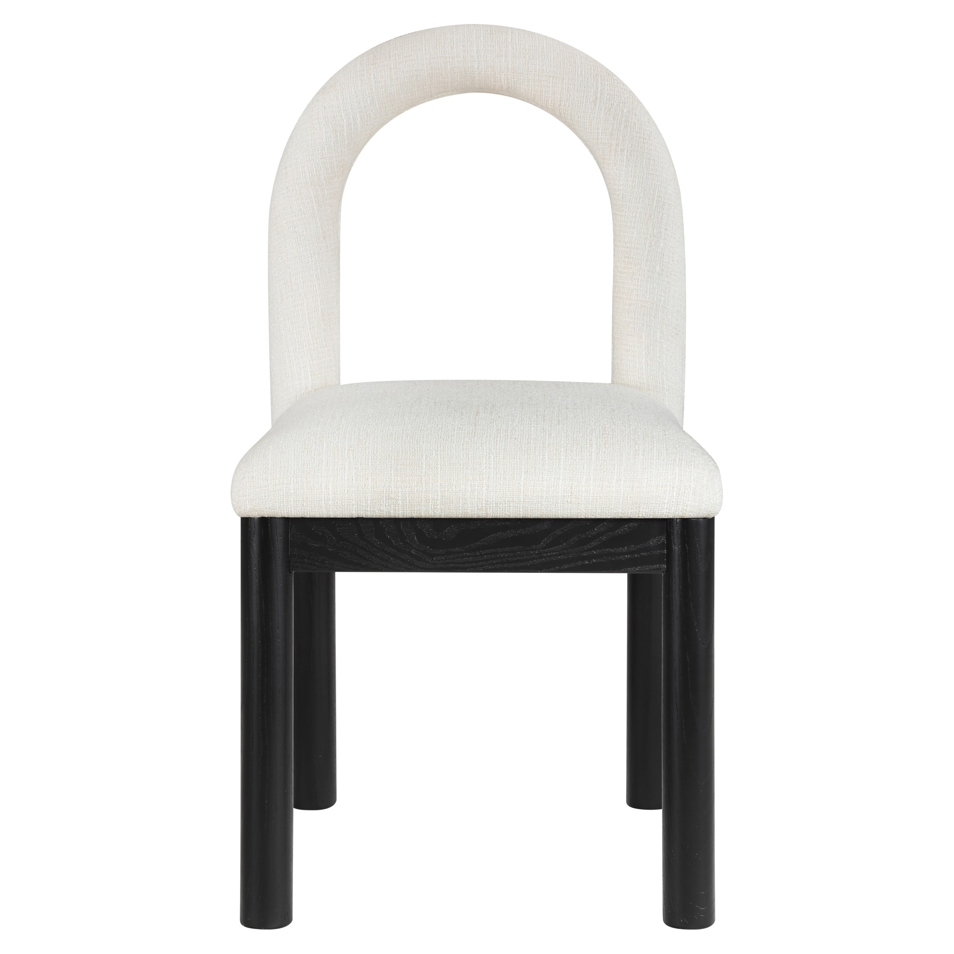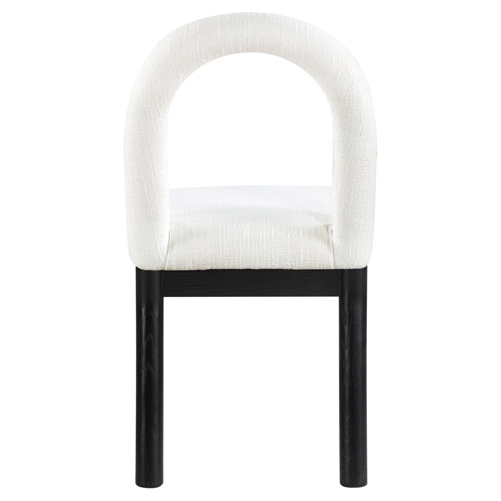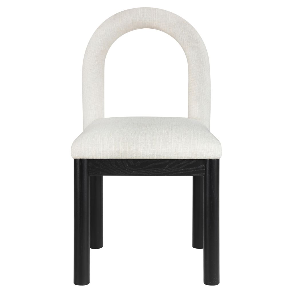 Laissez-vous séduire par le charme de la chaise de salle à manger Conrad en tissu texturé en lin de Meridian Furniture. Son design captivant et sa luxueuse finition en tissu texturé en lin crème rehaussent n'importe quel espace avec une élégance sans effort.