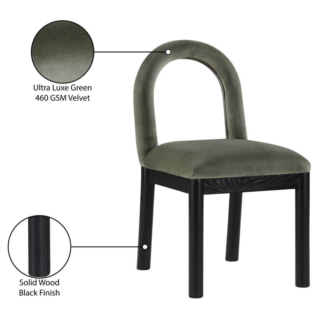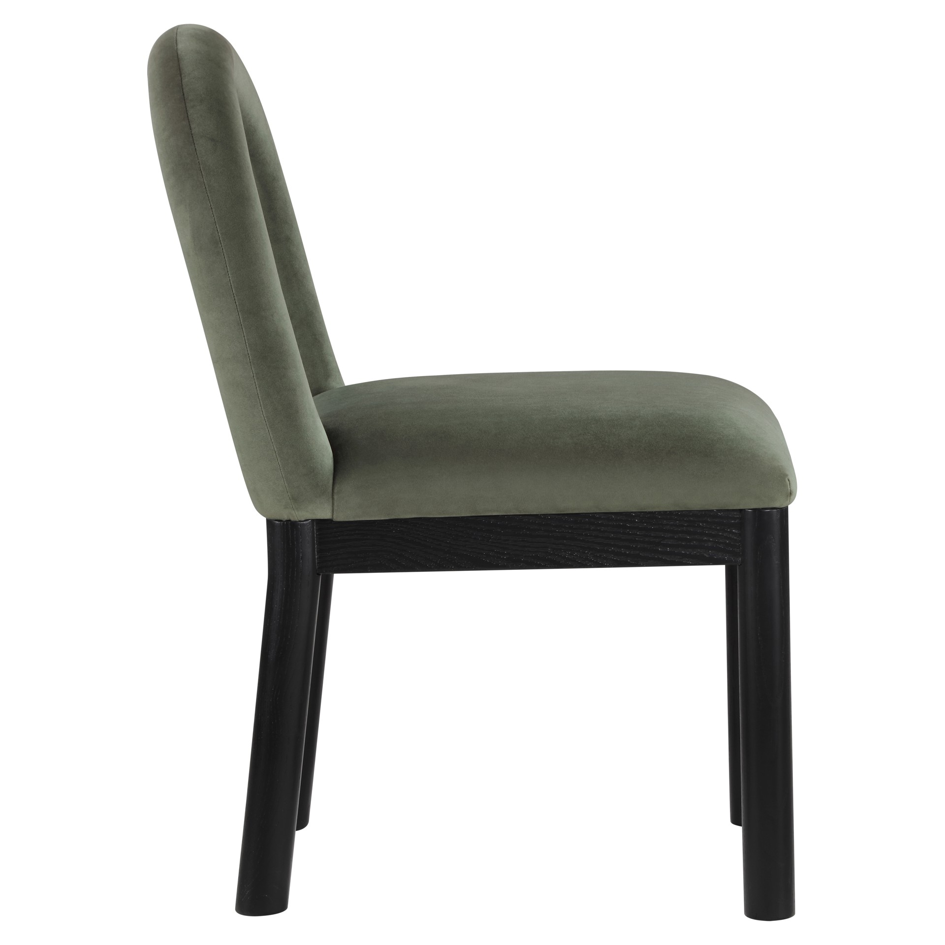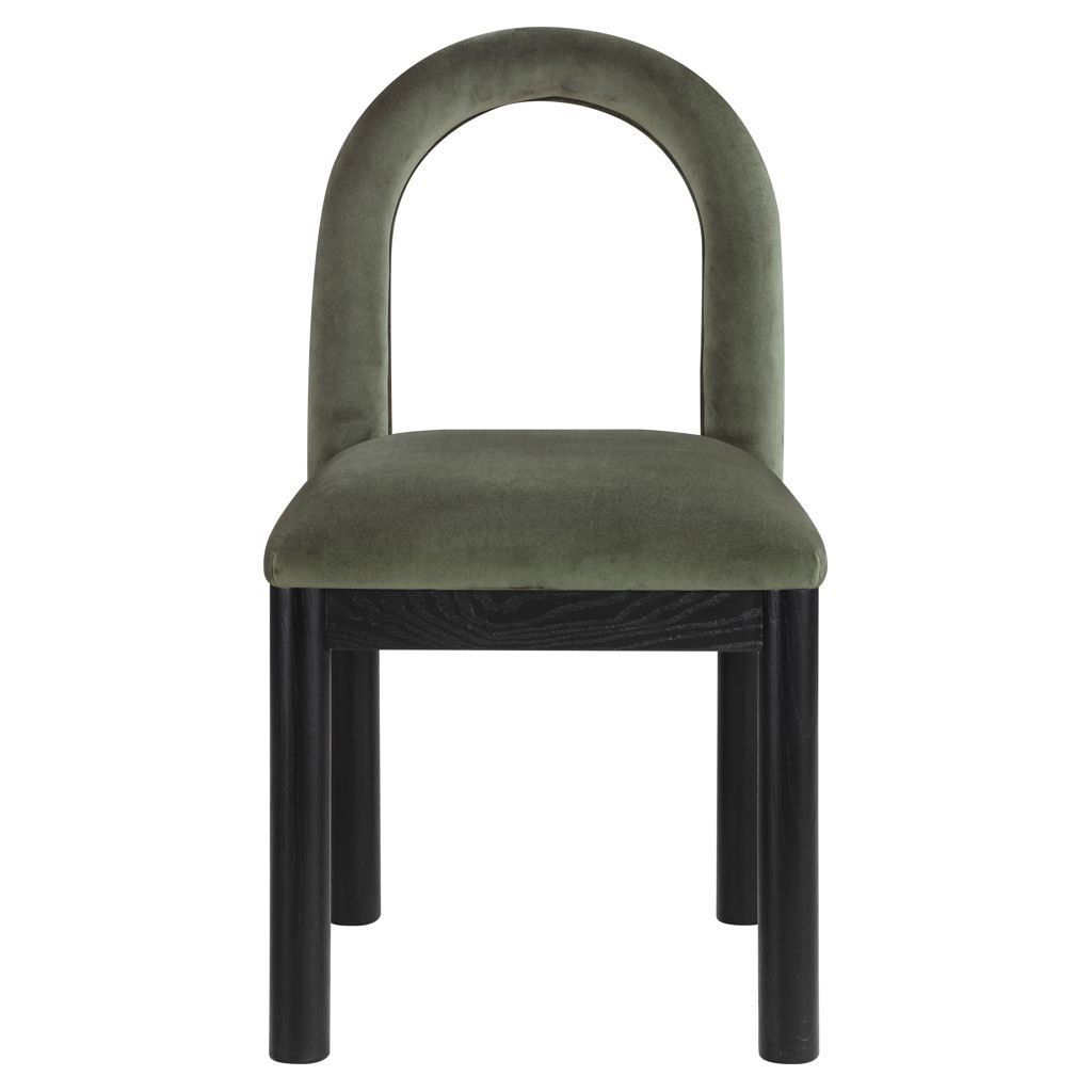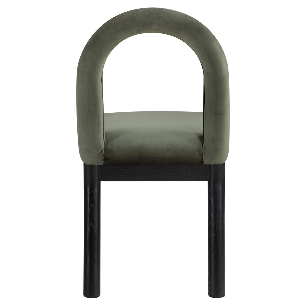 Laissez-vous séduire par le charme de la chaise de salle à manger en velours Conrad de Meridian Furniture. Son design captivant et sa luxueuse finition en velours verte rehaussent n'importe quel espace avec une élégance sans effort.