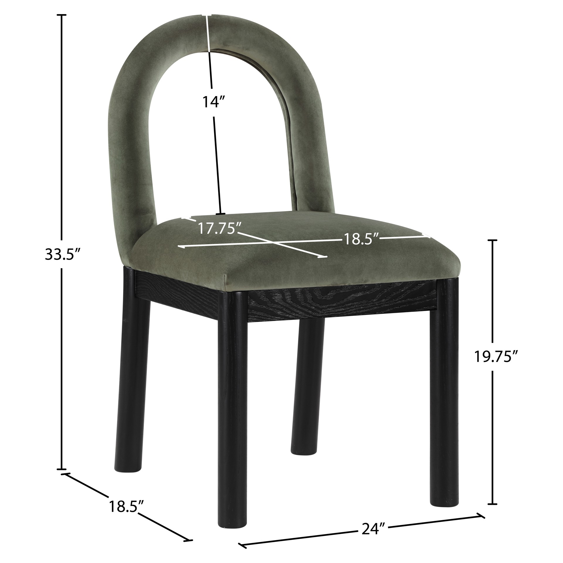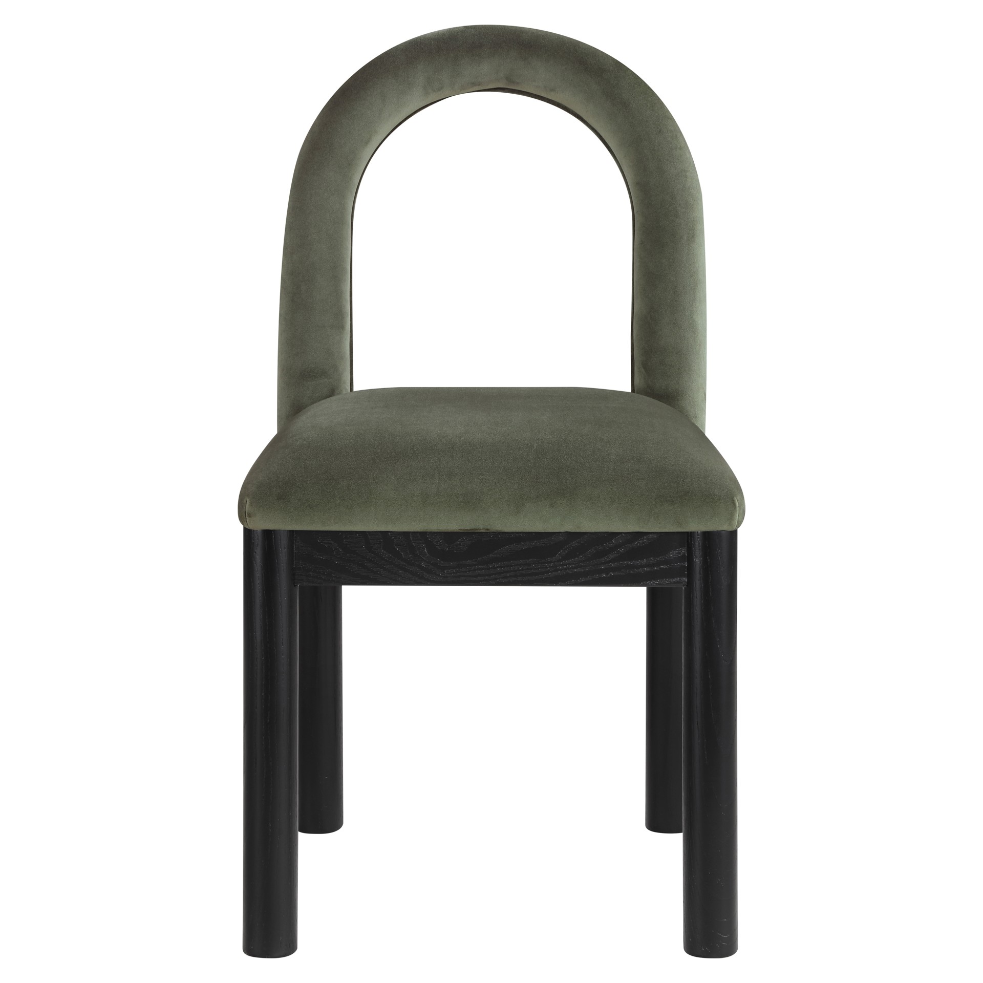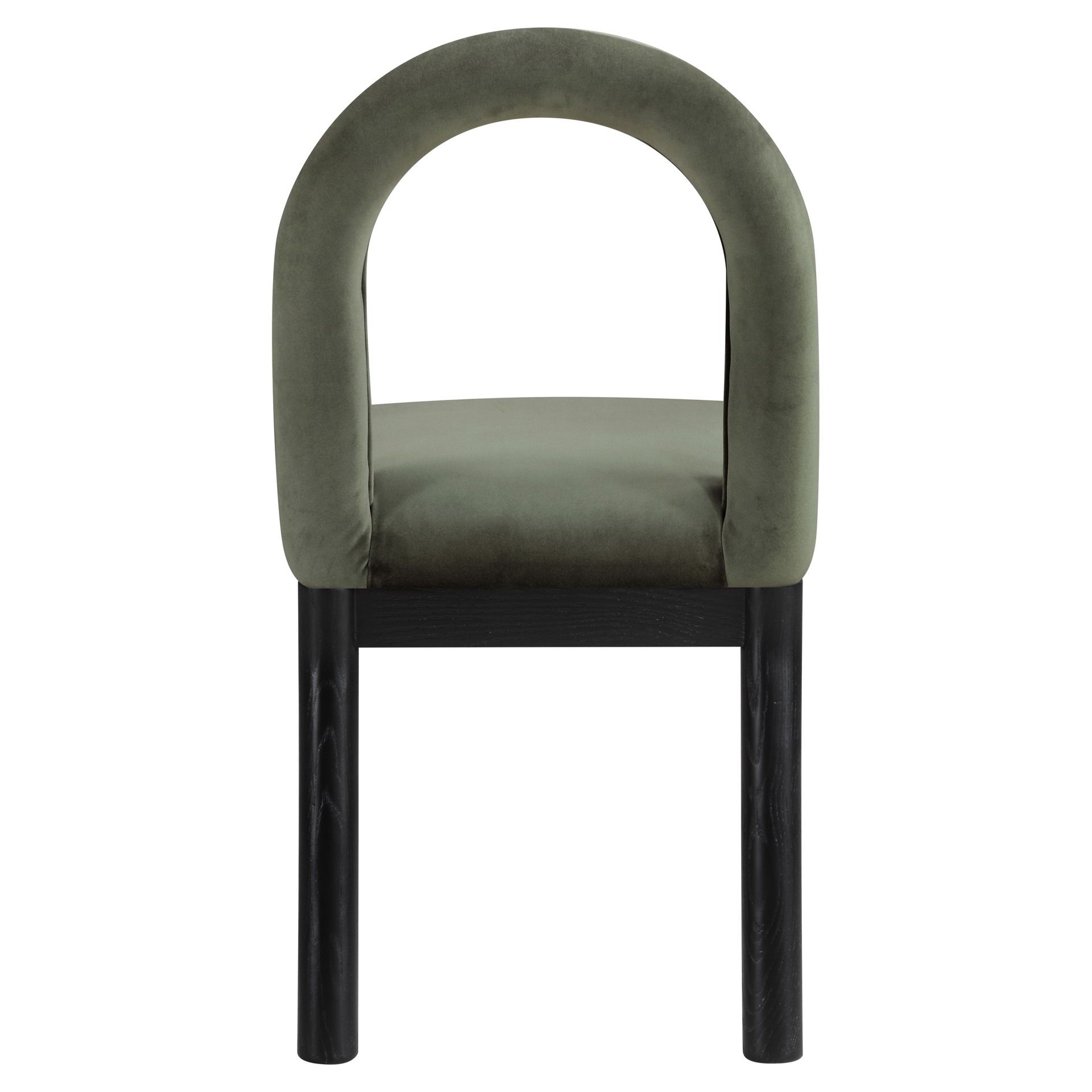 Laissez-vous séduire par le charme de la chaise de salle à manger en velours Conrad de Meridian Furniture. Son design captivant et sa luxueuse finition en velours verte rehaussent n'importe quel espace avec une élégance sans effort.