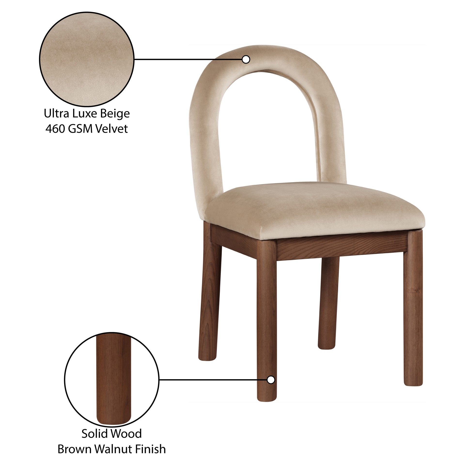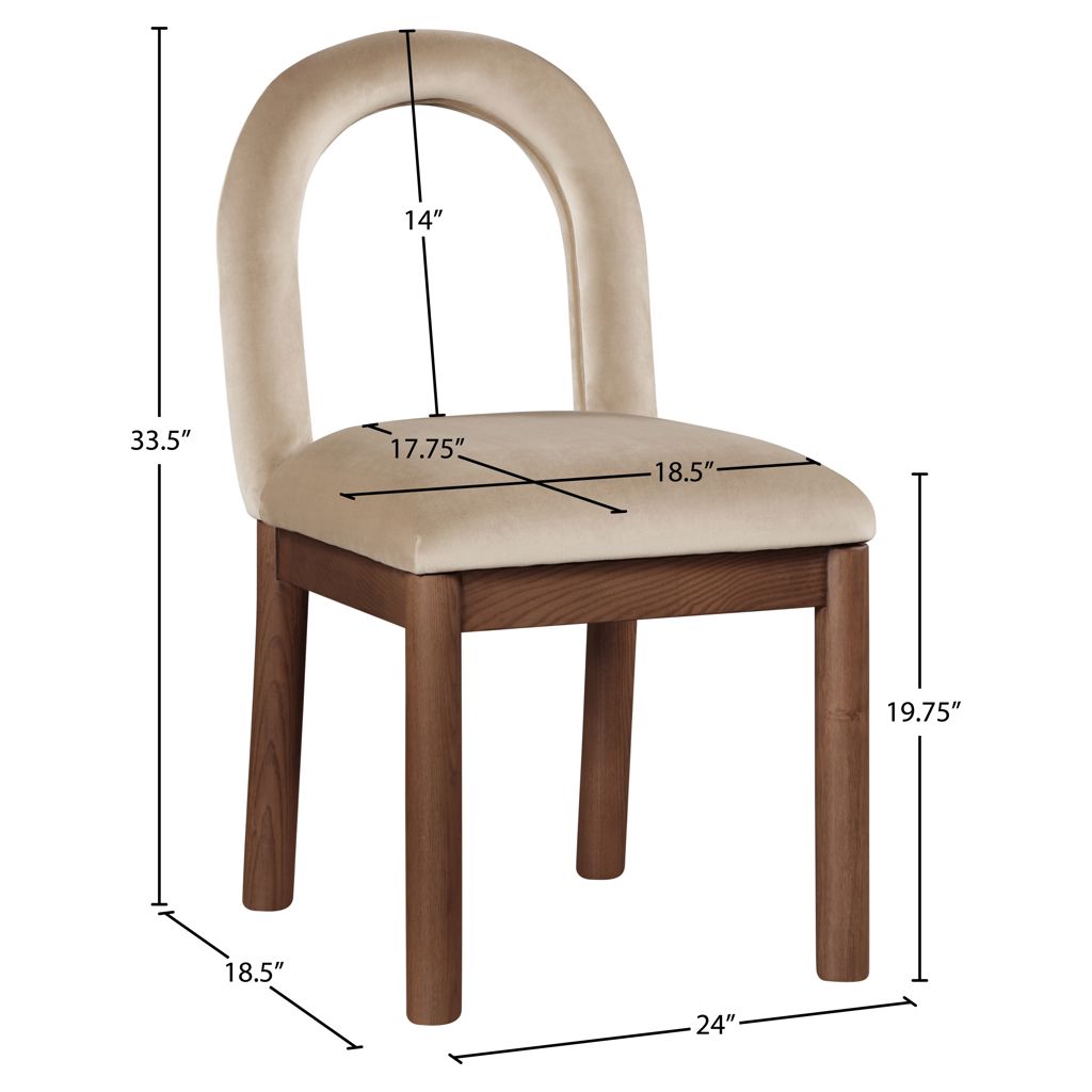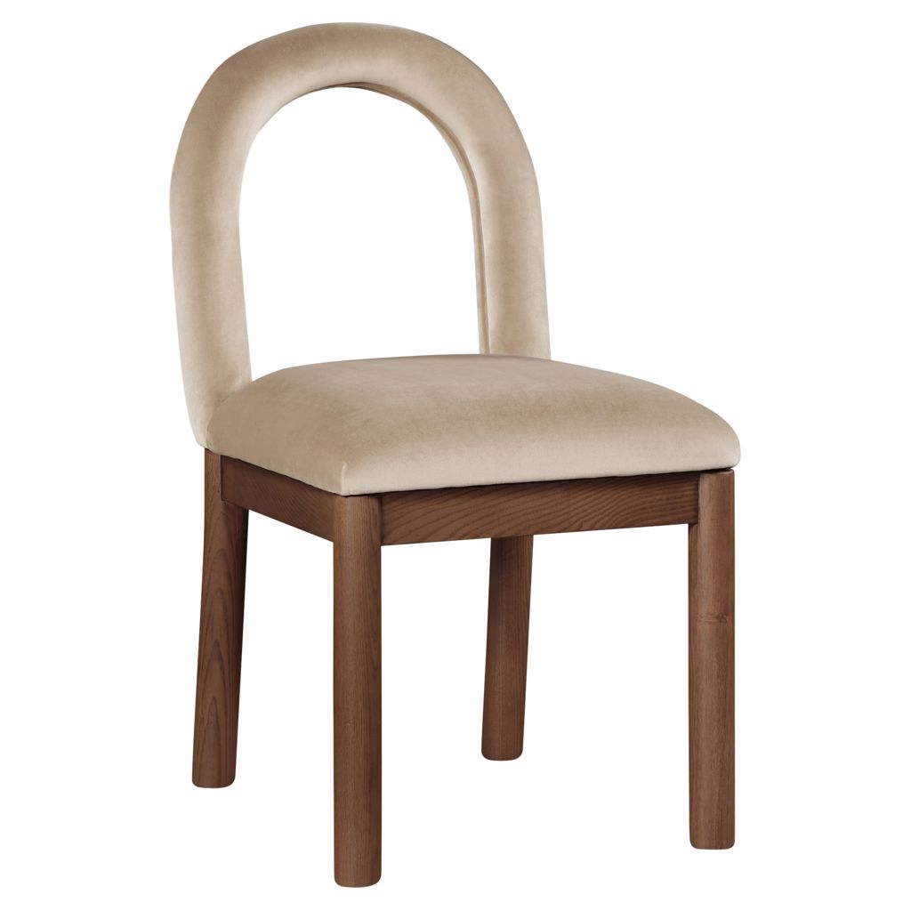 Laissez-vous séduire par le charme de la chaise de salle à manger en velours Conrad de Meridian Furniture. Son design captivant et sa luxueuse finition en velours beige rehaussent n'importe quel espace avec une élégance sans effort.