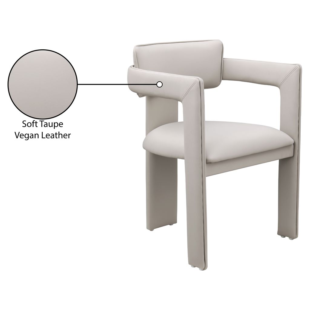 Entrez dans une sophistication sans effort avec la chaise de salle à manger en cuir végétalien taupe, où le design élégant rencontre un confort inégalé. Drapée de cuir végétalien doux, cette chaise présente une texture luxueuse qui améliore à la fois le style et le confort.