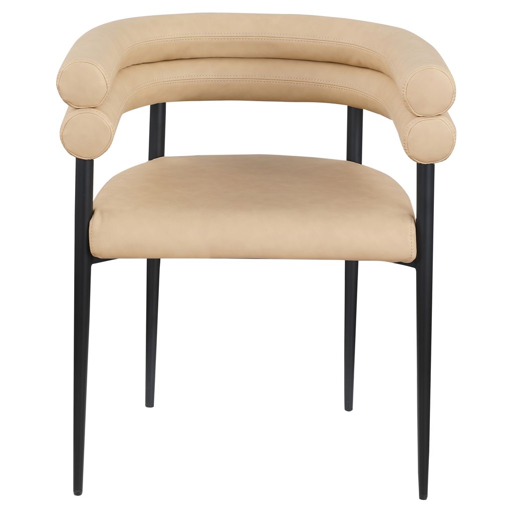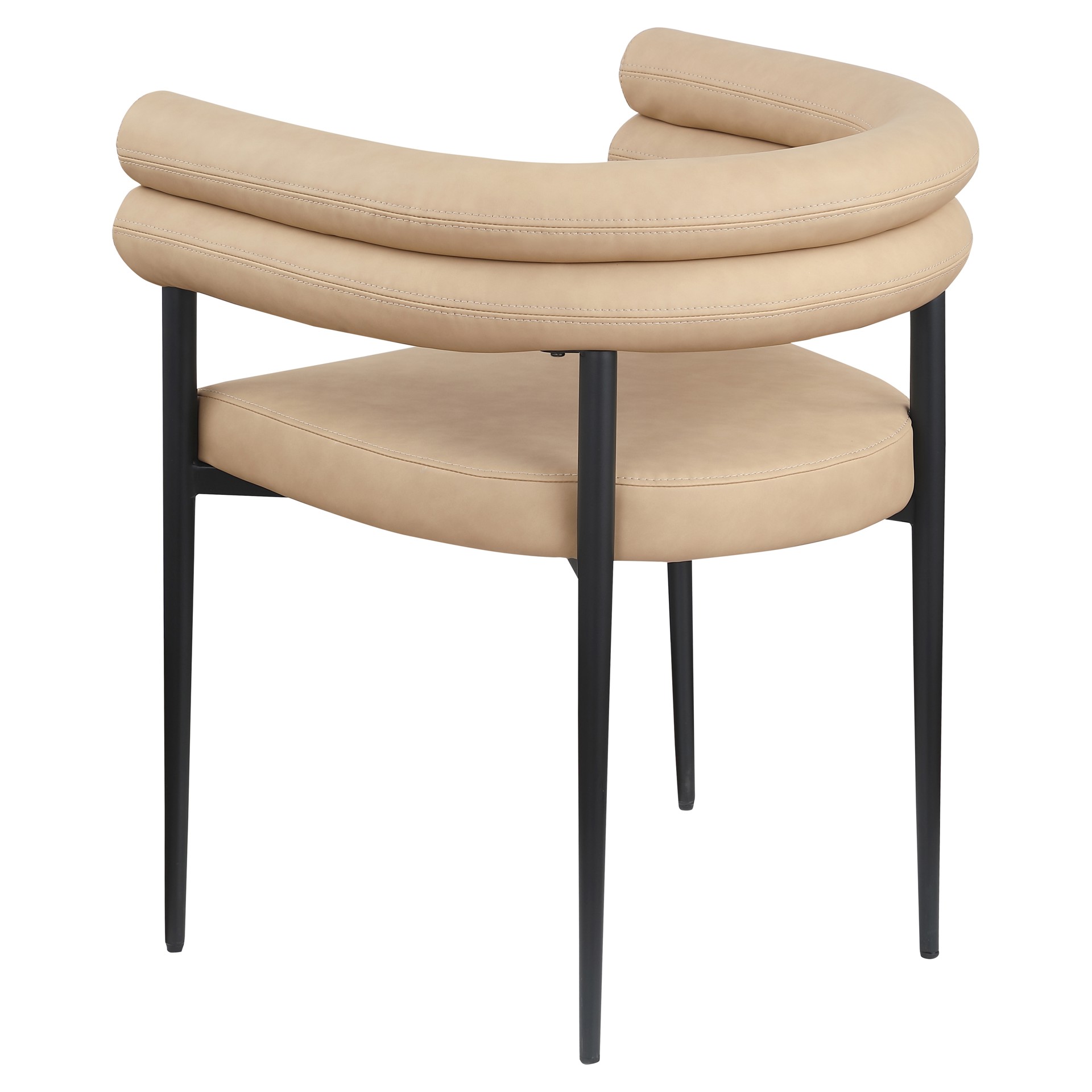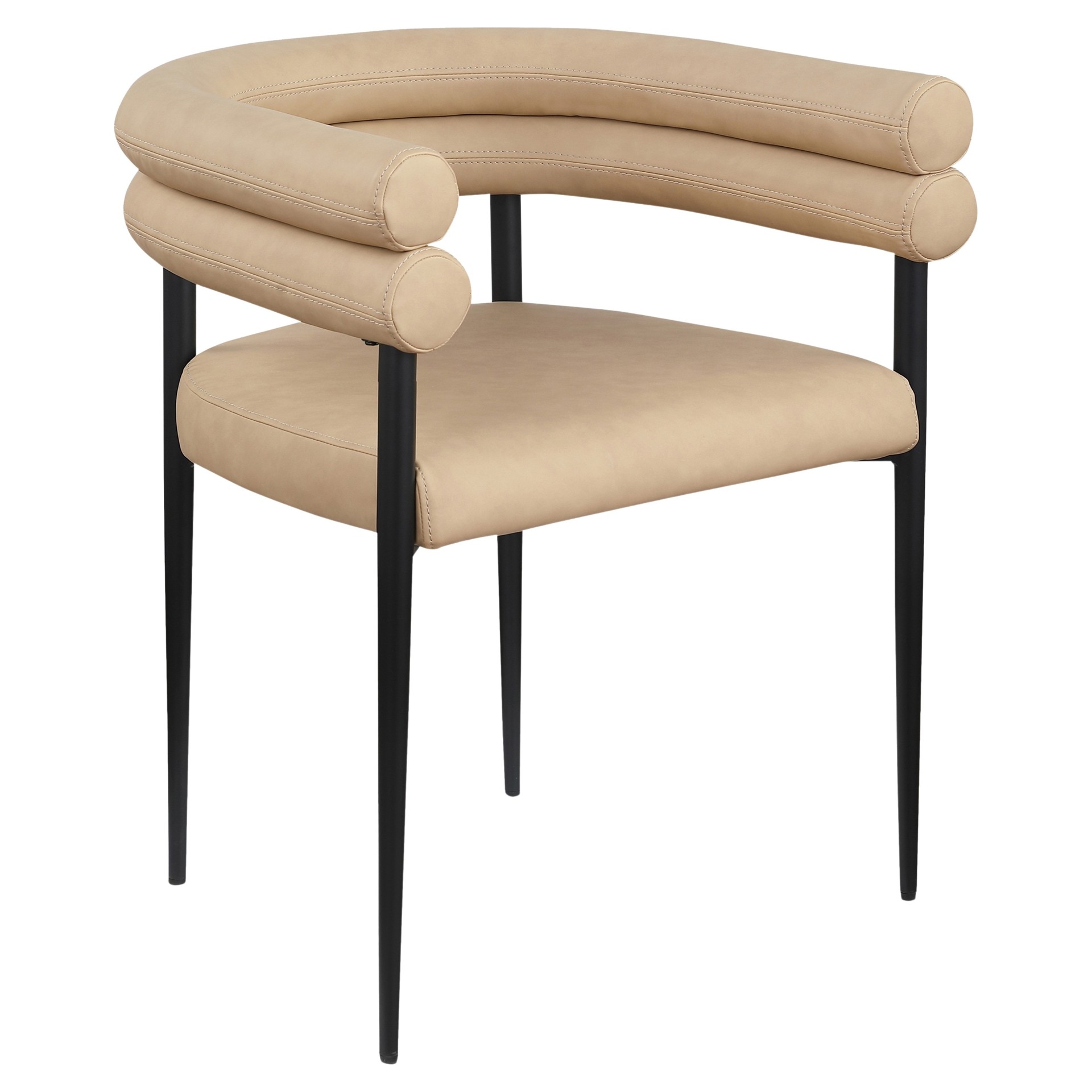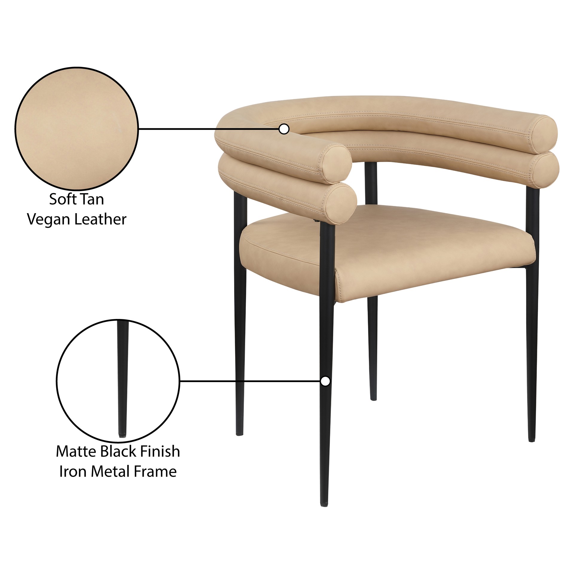 Découvrez l'allure sophistiquée de la chaise de salle à manger en cuir végétalien tan Lavina. Cette chaise présente une finition noire mate et une structure en fer métallique, assurant à la fois durabilité et touche moderne.