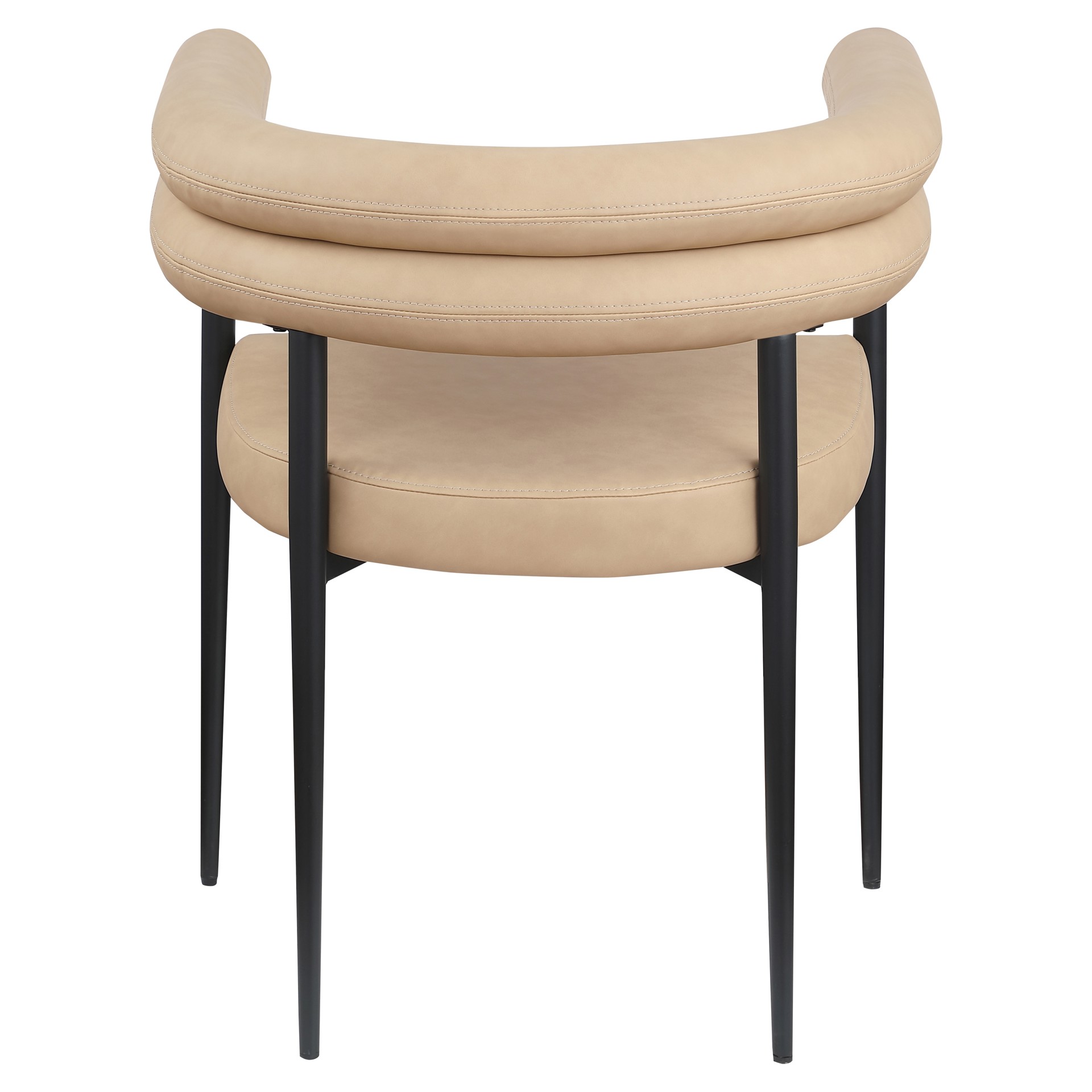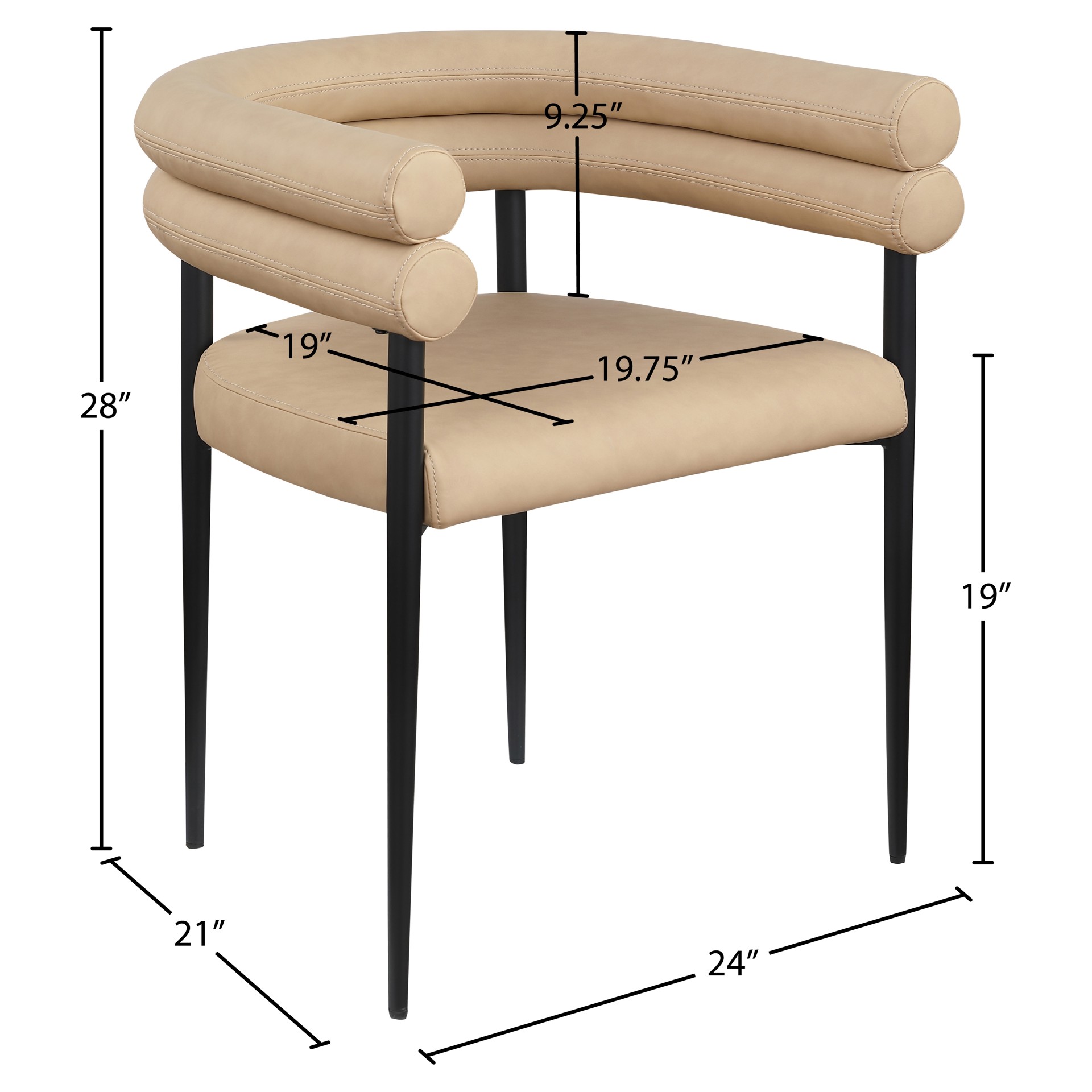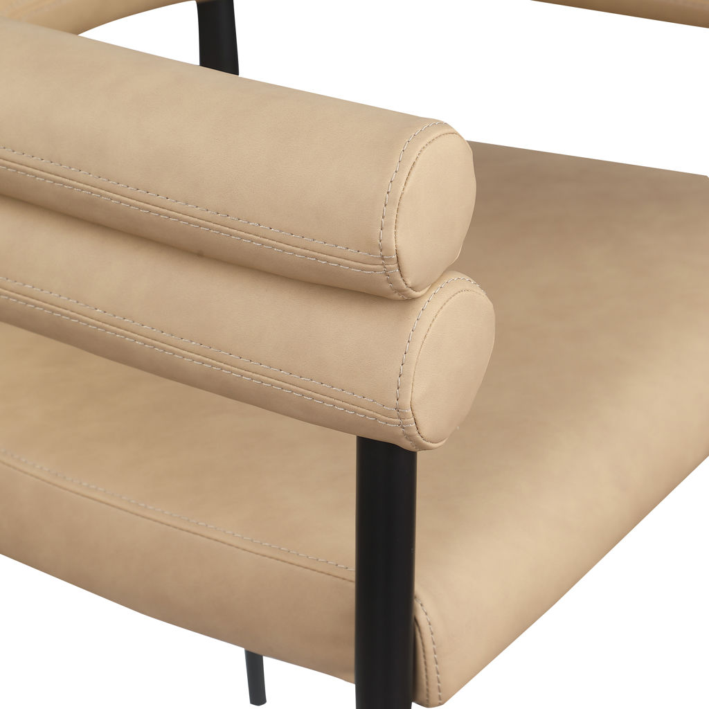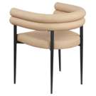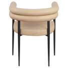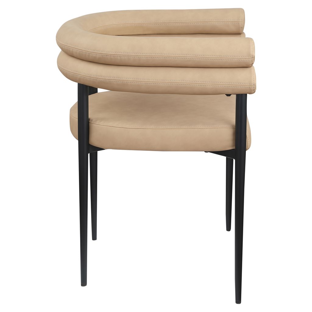 Découvrez l'allure sophistiquée de la chaise de salle à manger en cuir végétalien tan Lavina. Cette chaise présente une finition noire mate et une structure en fer métallique, assurant à la fois durabilité et touche moderne.