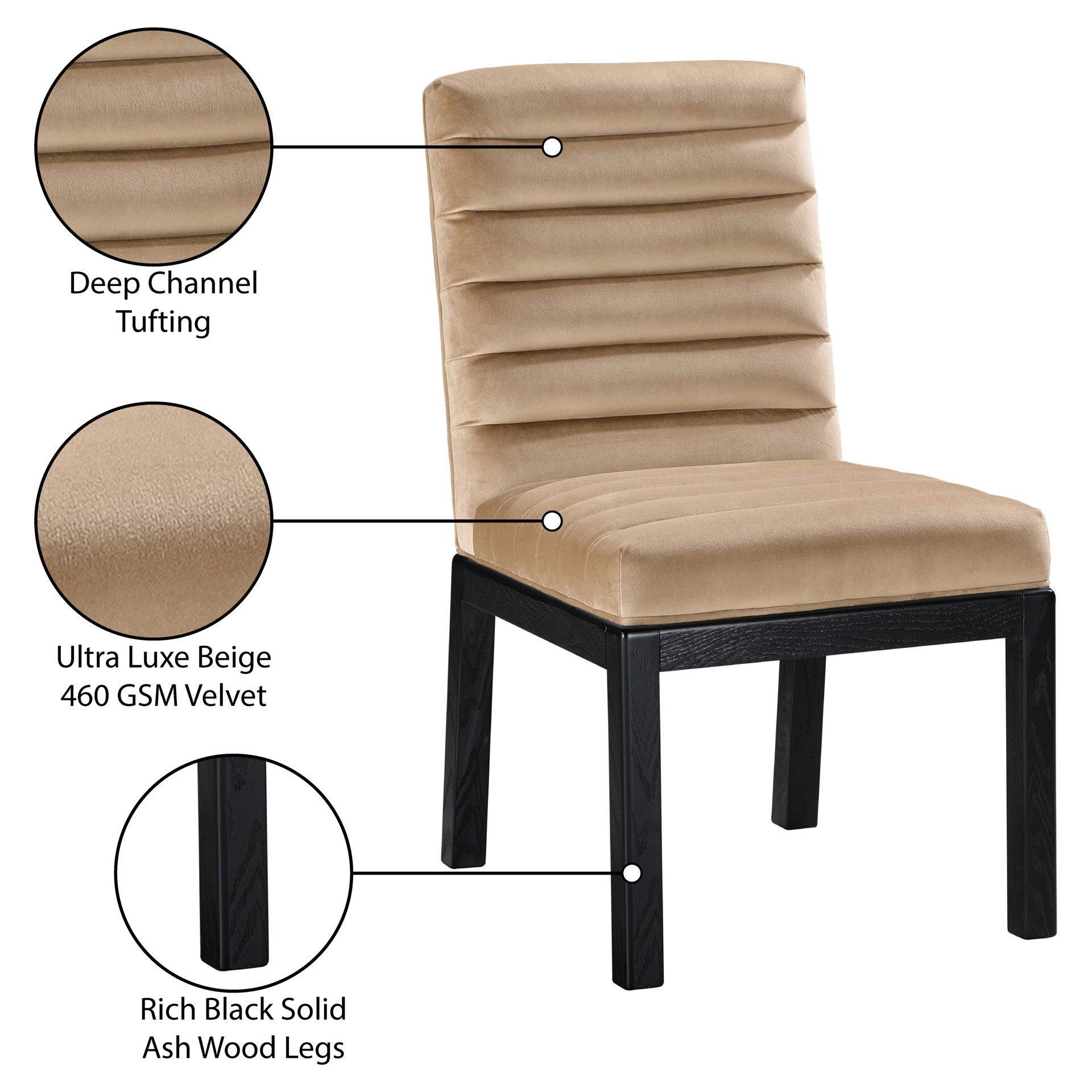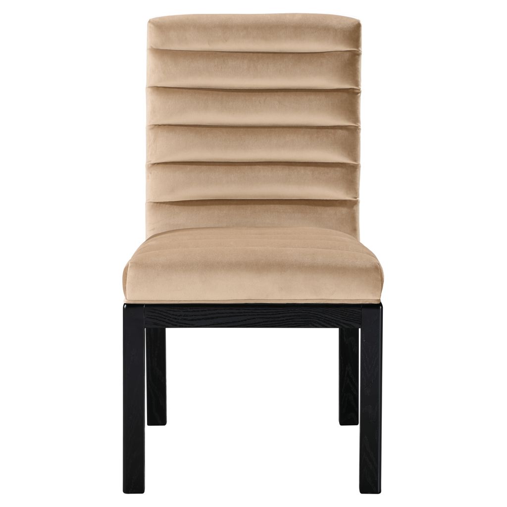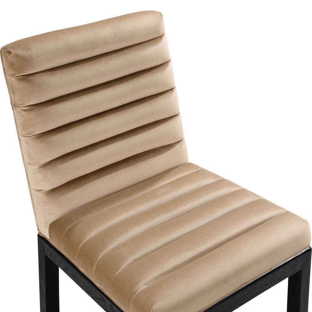 Transformez votre salle à manger avec la chaise de salle à manger Evelyn, dotée d'un luxueux revêtement en velours. Soutenue par de riches pieds en bois de frêne massif noir et ornée d'un capitonnage profond, cette chaise respire à la fois la durabilité et l'opulence.