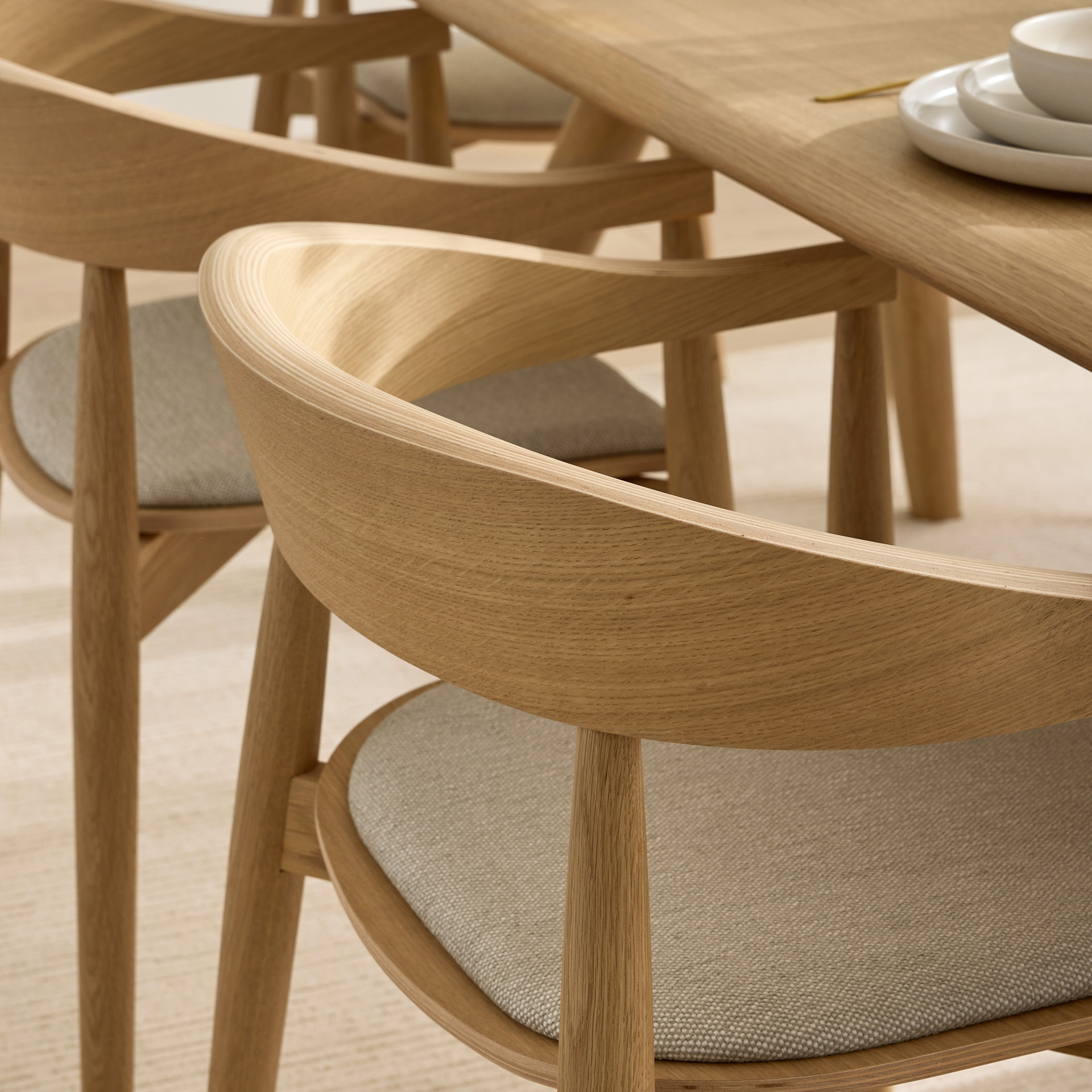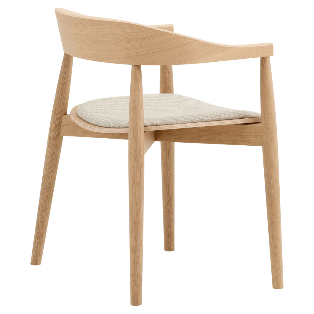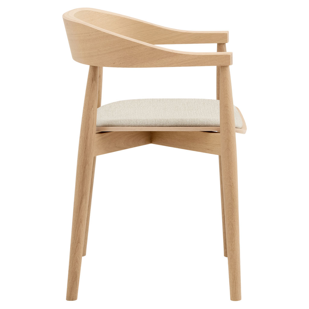 La chaise Emma en bois de chêne massif propose une assise en tissu beige, apportant une touche de douceur et un confort accru à vos repas quotidiens ou festifs.