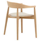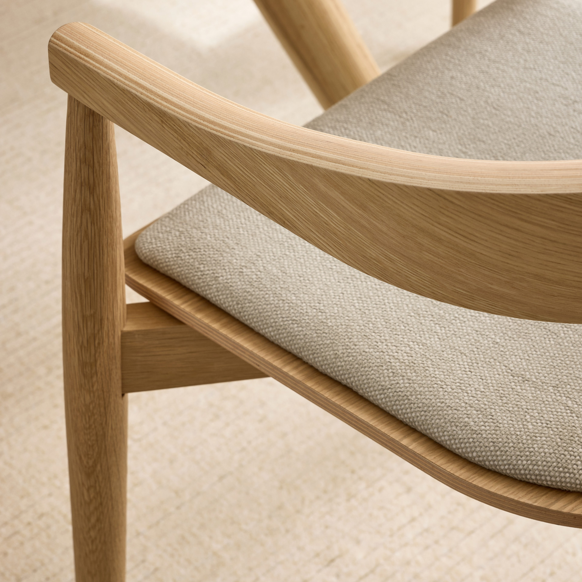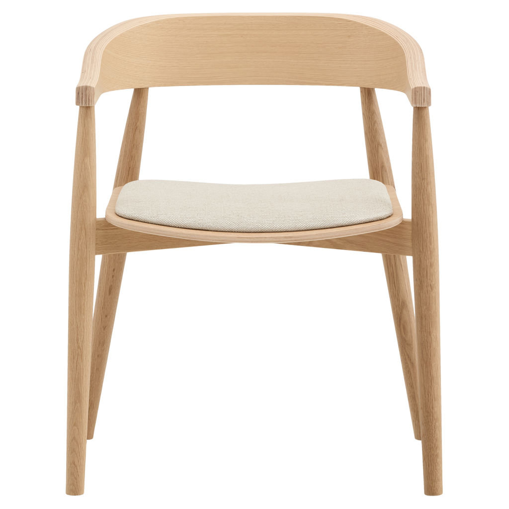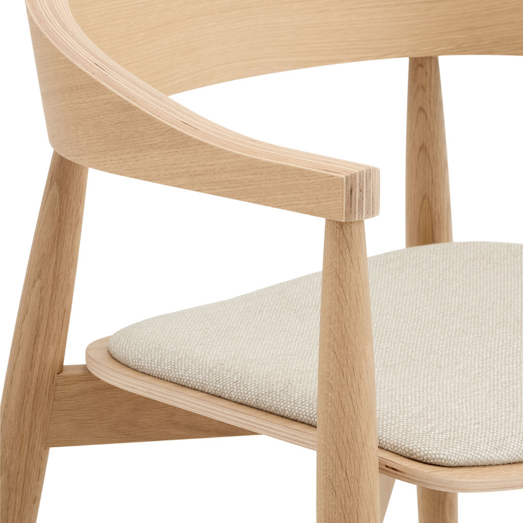 La chaise Emma en bois de chêne massif propose une assise en tissu beige, apportant une touche de douceur et un confort accru à vos repas quotidiens ou festifs.