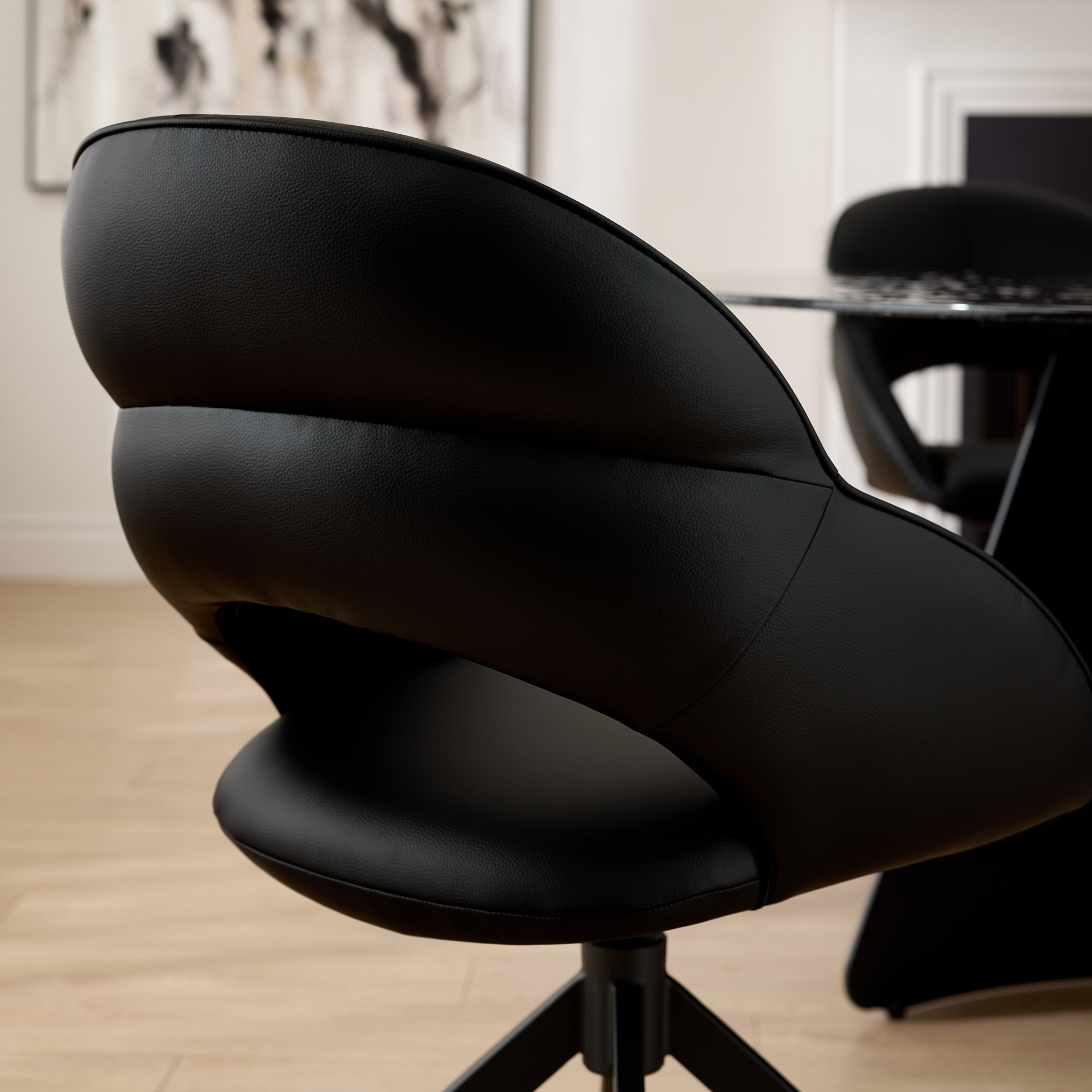 Idéale pour les repas quotidiens comme pour les réceptions, cette chaise transforme chaque moment à table en expérience confortable. Sa fonction pivotante facilite les conversations et les mouvements autour de la table.
