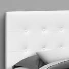 Cette tête de lit bouton est capitonnée et recouverte de similicuir blanc.