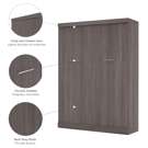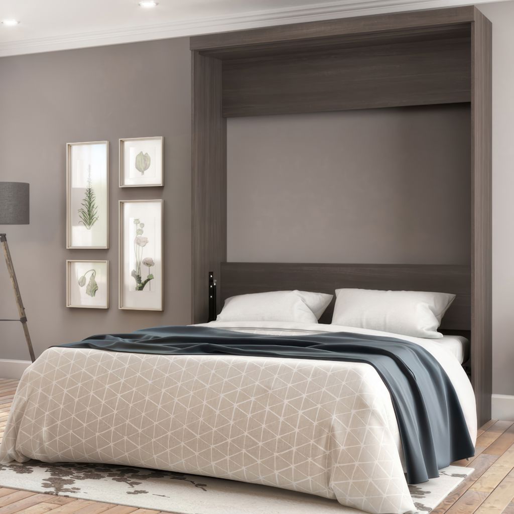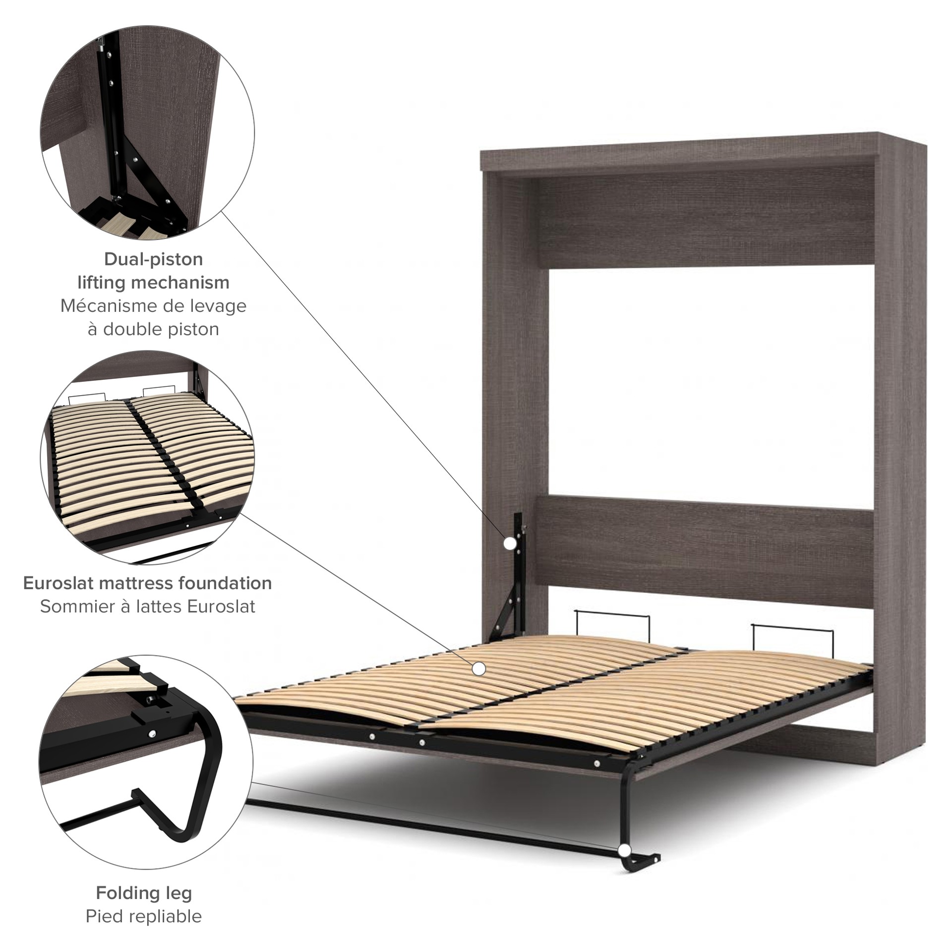Le caisson du lit doit être ancré à un mur d’une hauteur minimale de 91. 1 po (231. 4 cm). Ce grand lit escamotable (queen) est couvert par une garantie de 10 ans du fabricant, Bestar. Fabriqué au Québec à partir de composants locaux et importés. Panneaux de particules de qualité avec fini laminé, conformes à la norme TSCA Title VI pour un fini durable.