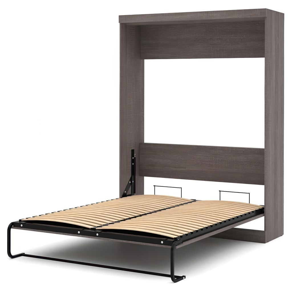 Ce grand lit escamotable (queen) solide et confortable peut être utilisé toutes les nuits, c’est le meuble gain de place idéal pour toute pièce multifonctionnelle. Le lit se relève et s’abaisse de façon sécuritaire grâce au mécanisme à double piston et le support de matelas à lattes Euroslat augmente votre confort pour une bonne nuit de sommeil.