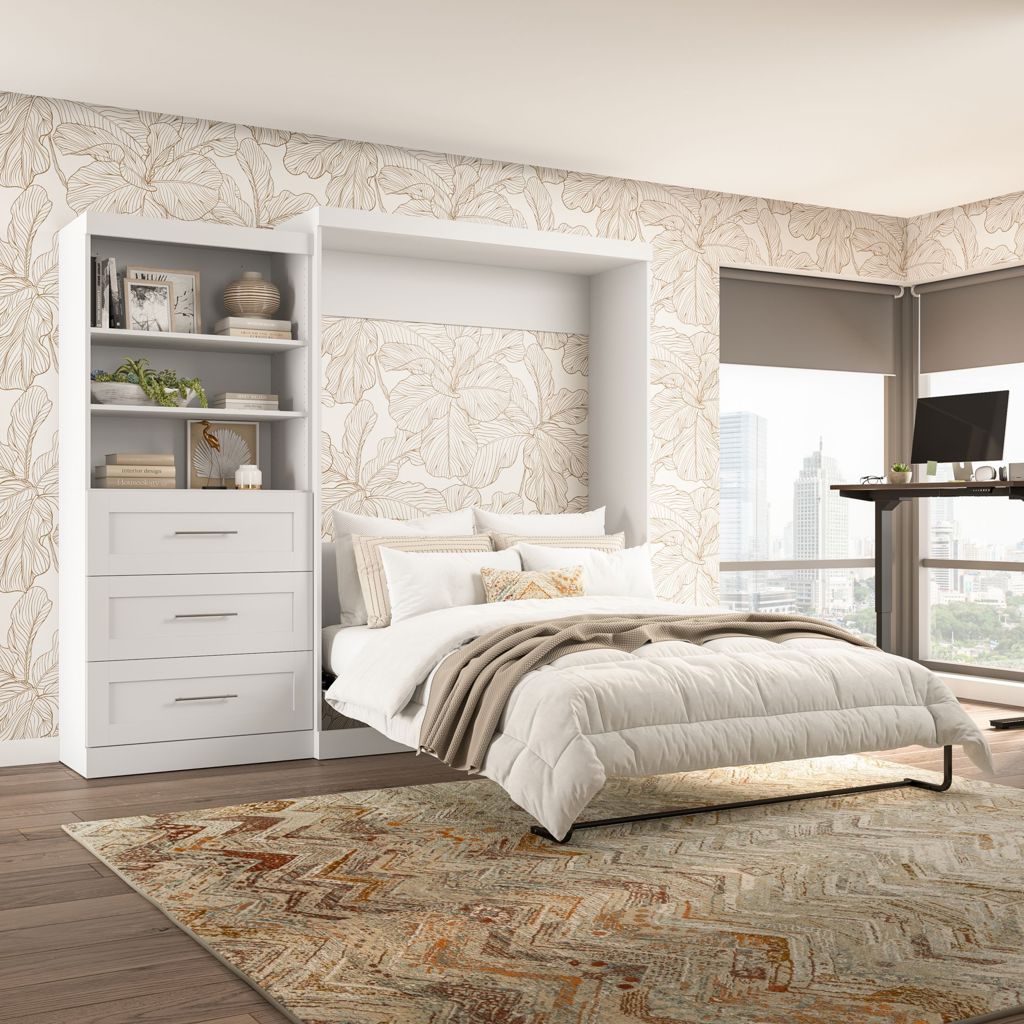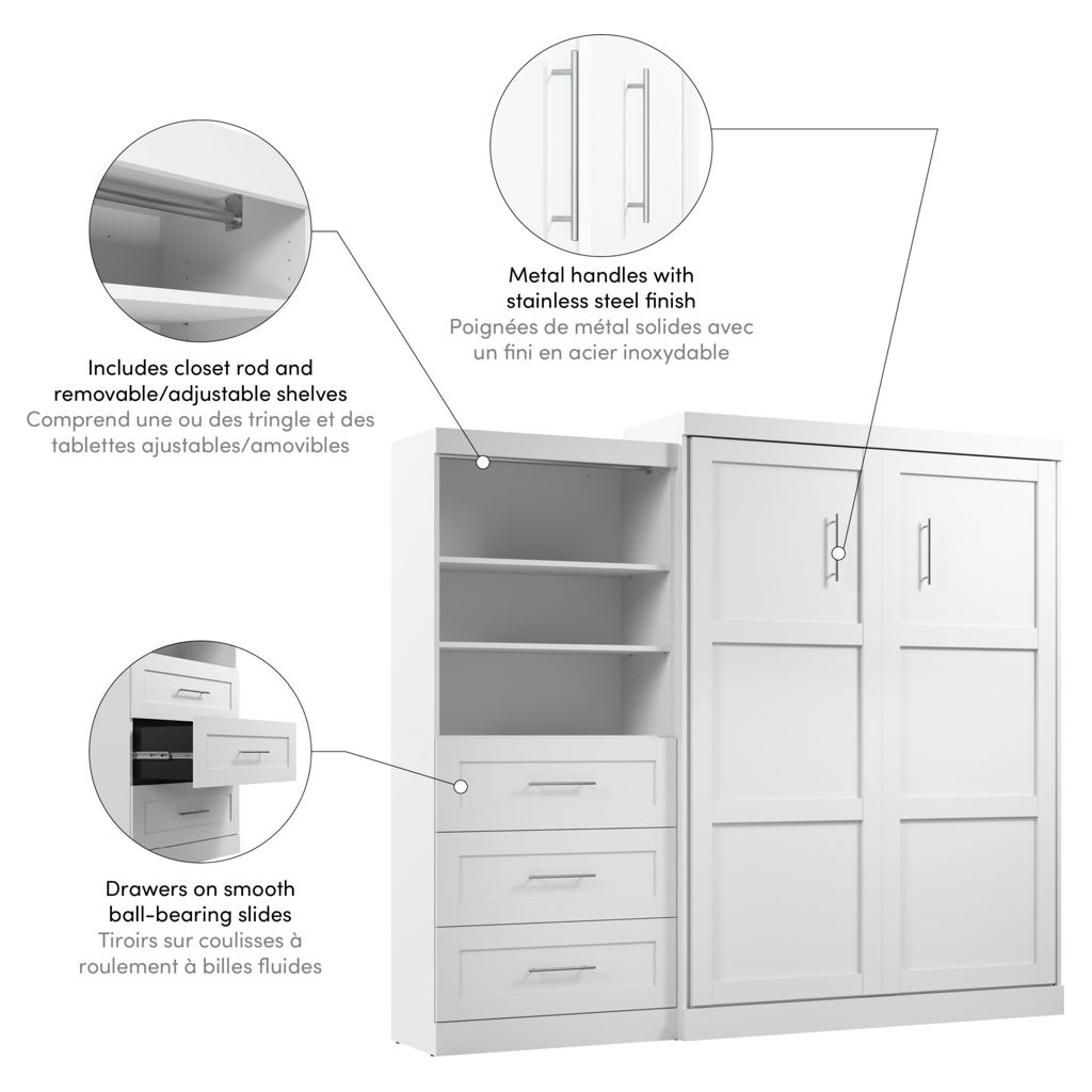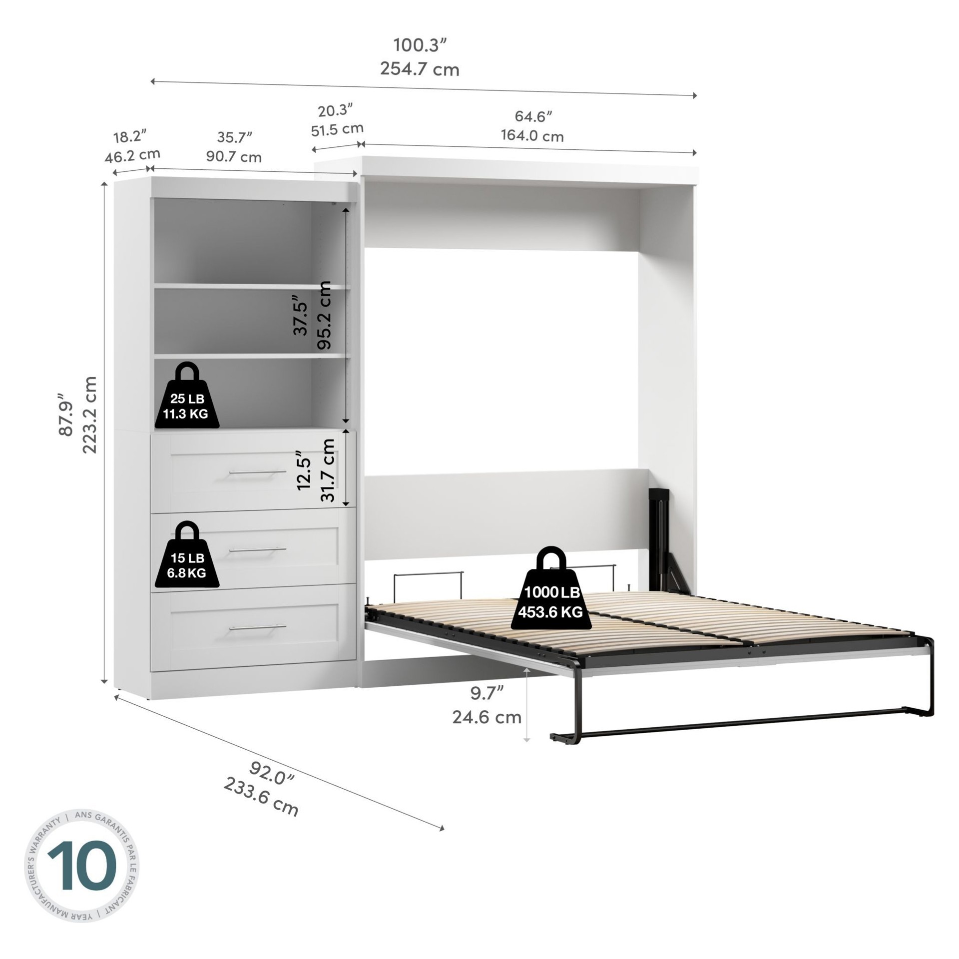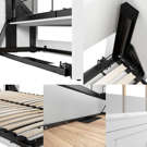 • L’ensemble comprend : un grand lit escamotable (queen) 65L et une unité de rangement avec tiroirs 36L
