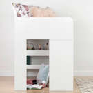 Ce superbe lit loft, en plus d’être pratique et confortable, a vraiment un look féérique! Dans la chambre à coucher de votre enfant, il ajoutera un style charmant et féminin avec ses poignées ornées de jolis bijoux. De plus, votre fille pourra jouer dans l’espace sous le lit, derrière la penderie. Ça deviendra sa vraie cachète secrète où elle pourra jouer tranquillement.