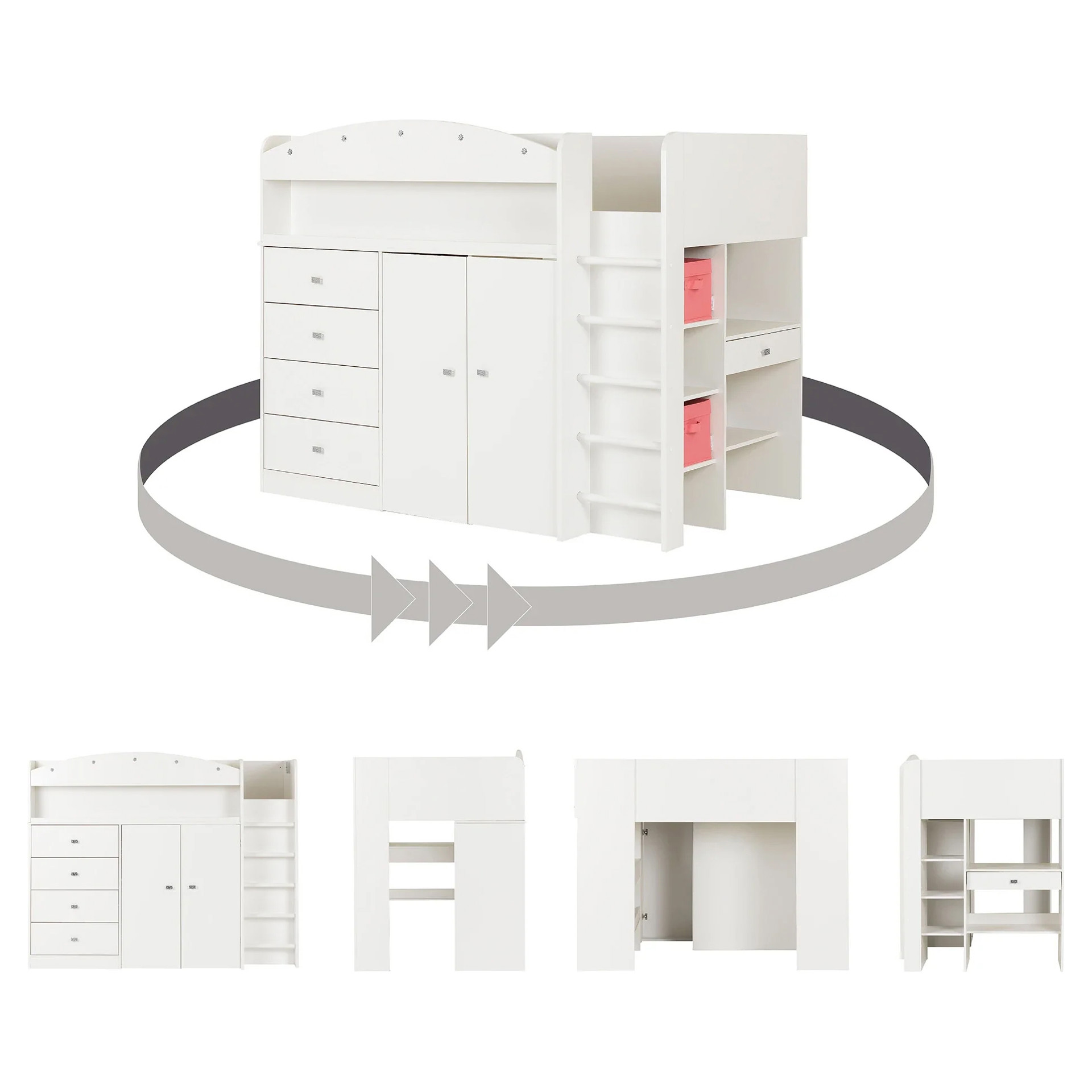 • BUREAU DE TRAVAIL INTÉGRÉ: un petit bureau de travail a été intégré à ce lit pour donner à votre enfant un espace devoir dédié. Fillette disposera aussi d’une tablette sous le bureau et de trois tablettes à côté pour organiser son matériel. Deux paniers de rangement sont même inclus avec le produit!