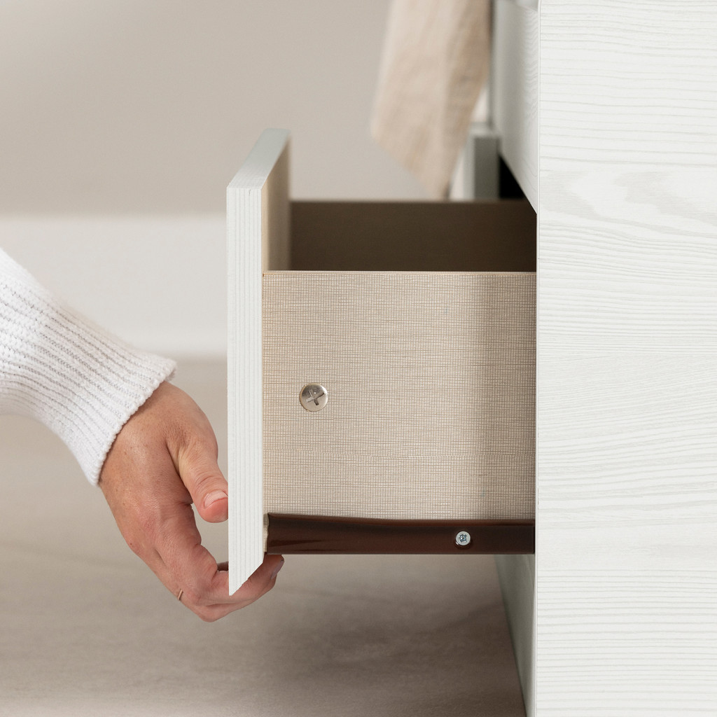 COULISSES DE MÉTAL : les tiroirs à la hauteur du sol seront idéals pour les jeunes. Ils sont doux à l´ouverture et à la fermeture puisqu´ils sont montés sur des glissières de métal.