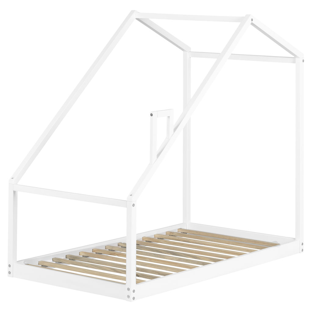 BASE DE LIT TENDANCE ET LUDIQUE : ce lit en bois en forme de maisonnette de style scandinave est absolument à croquer avec sa petite cheminée. Votre enfant aura hâte à l´heure du dodo!