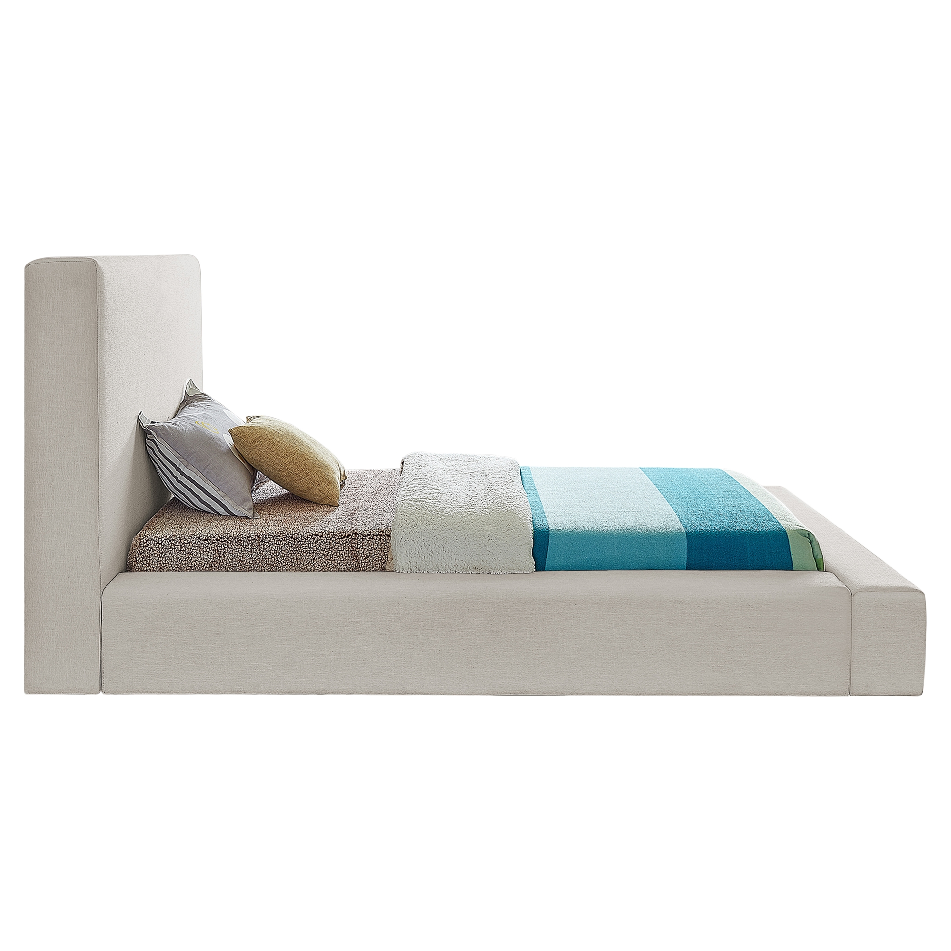 Ce magnifique lit a un look haut de gamme distinctif, avec son tissu luxueux en lin beige texturé recouvrant chaque centimètre carré, de la tête de lit aux rails latéraux et au pied de lit, qui ont une épaisseur de 20 cm pour une sensation de douceur et de confort luxueux contre votre corps pendant que vous vous détendez et vous relaxez avant de vous endormir.
