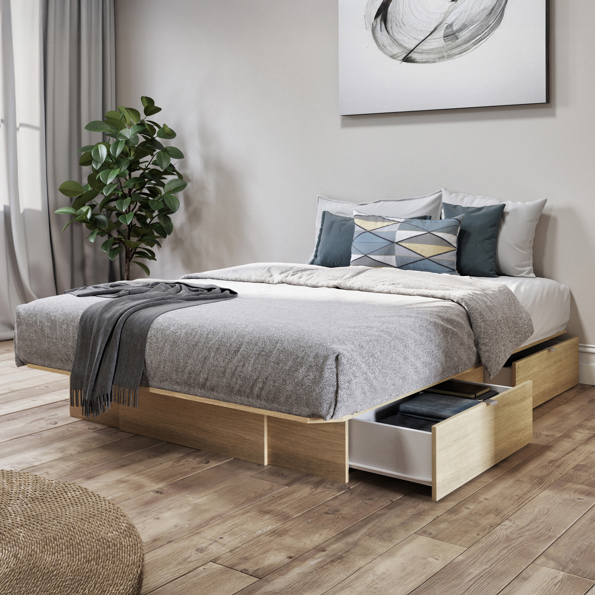 Ce lit plateforme au style épuré s'agencera facilement avec votre décor
