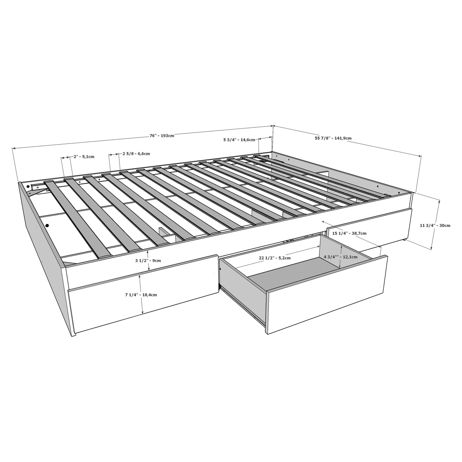 • Lit plateforme avec tiroirs série 3754 - Double : 56 X 76 X 11 3/4