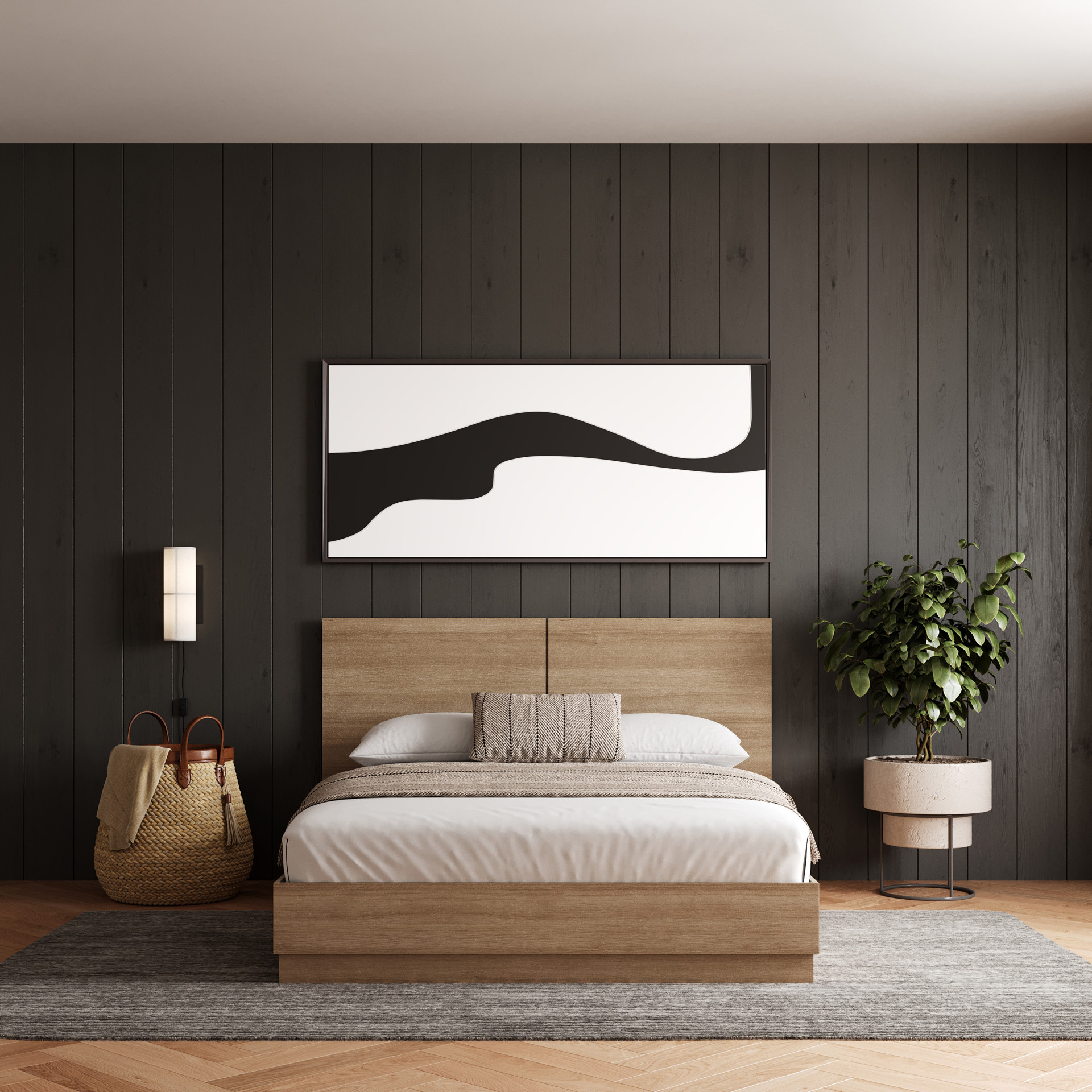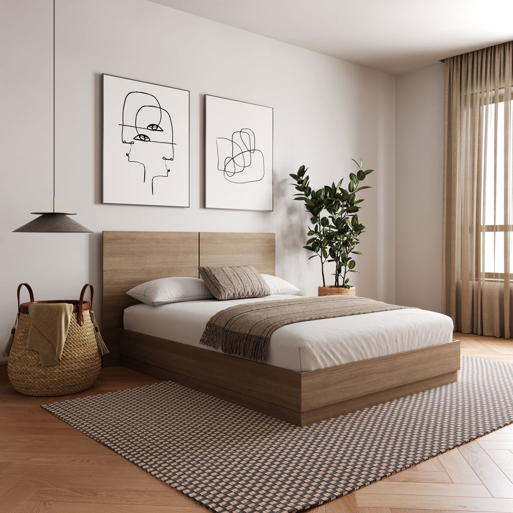 Plonger-vous dans l'essence du minimalisme confortable avec notre élégant ensemble de lit, un rafraîchissement idéal pour tout style de chambre. S'inspirant des esthétiques zen sereines, ce lit arbore une finition en chêne lisse qui enveloppe gracieusement votre matelas.