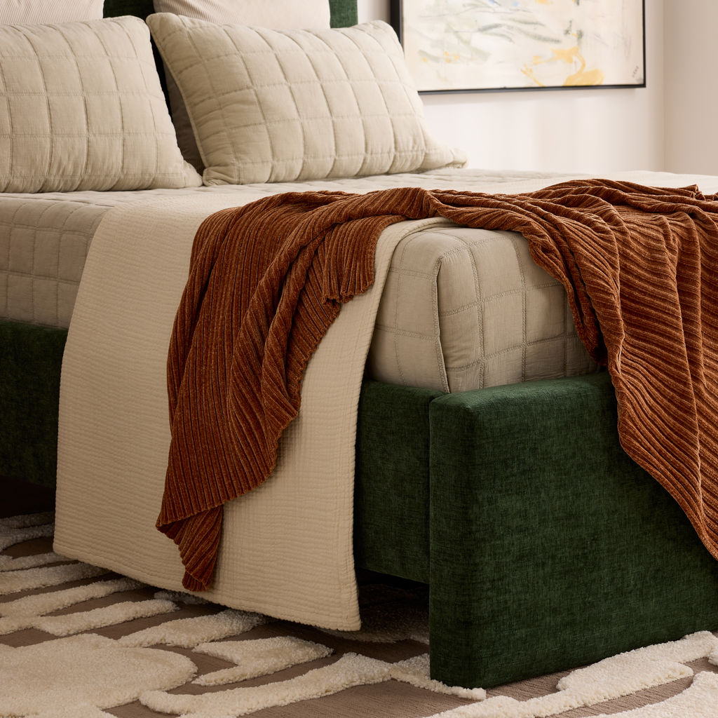 Sa tête de lit capitonnée verticale ajoute une présence raffinée tout en offrant un bon soutien pour s’adosser.