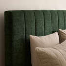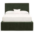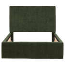 Apportez une touche moderne et confortable à votre chambre avec ce lit rembourré au tissu vert riche et élégant.