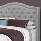 De style classique, la tête de lit courbée surmonté de clous chromés est capitonnée de motif diamants.