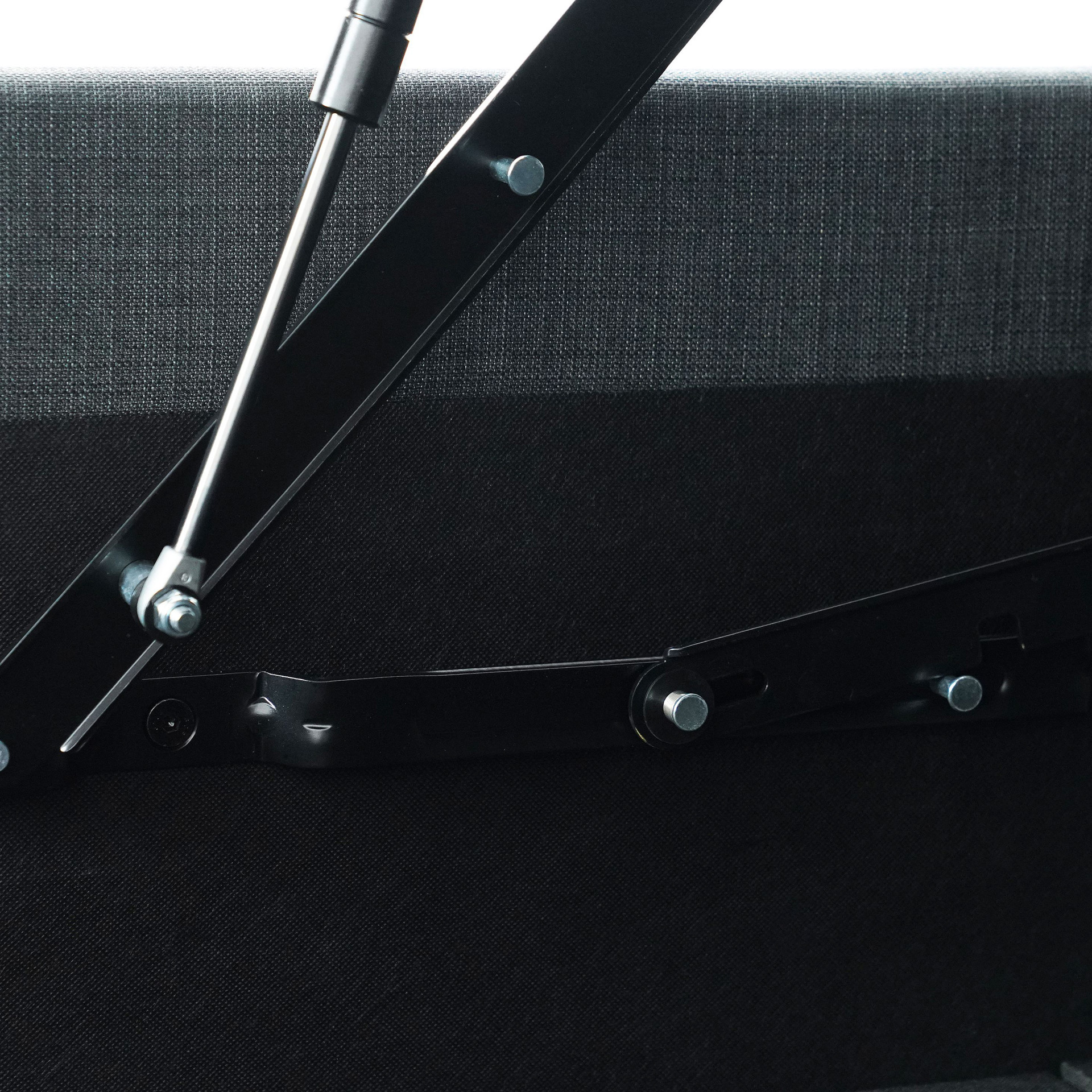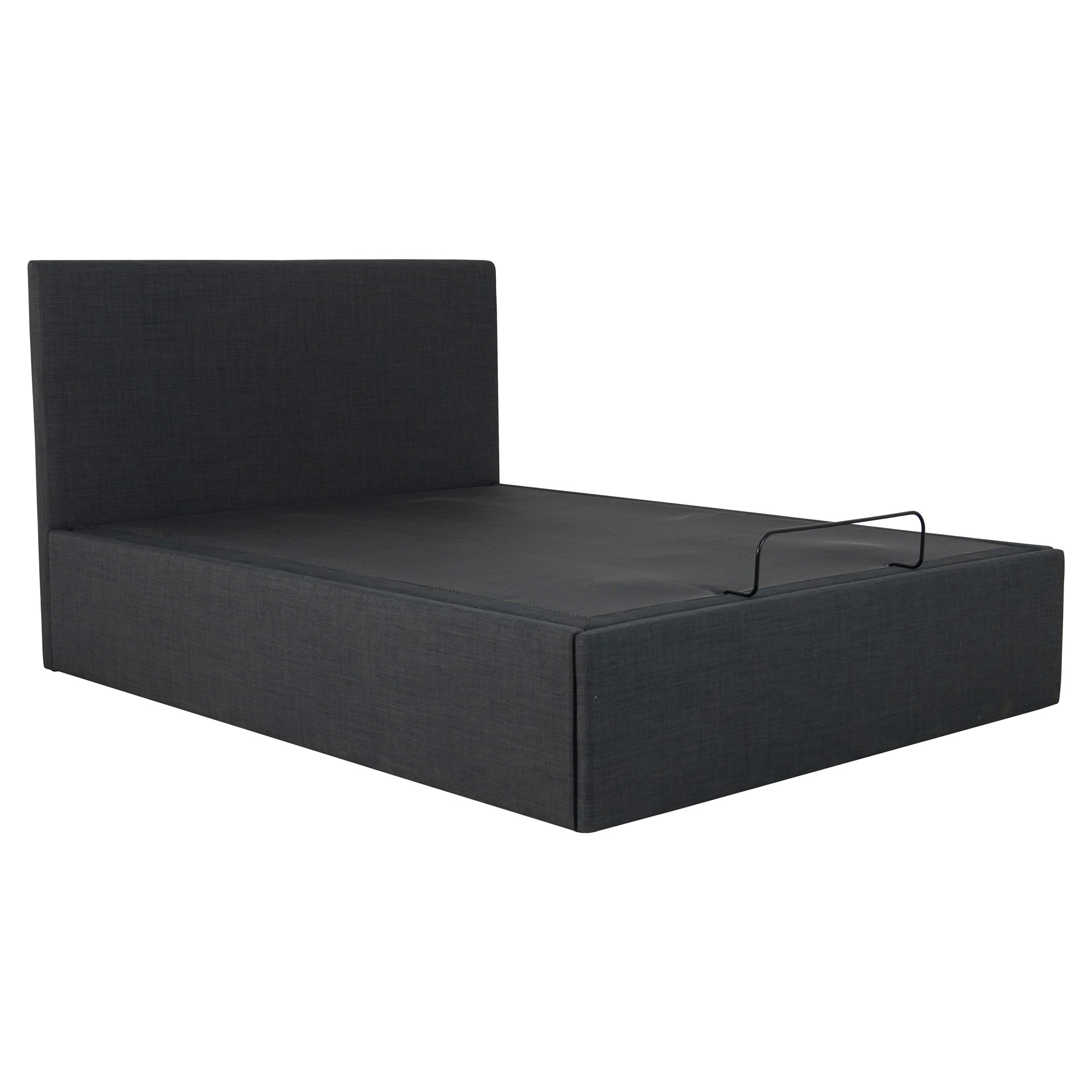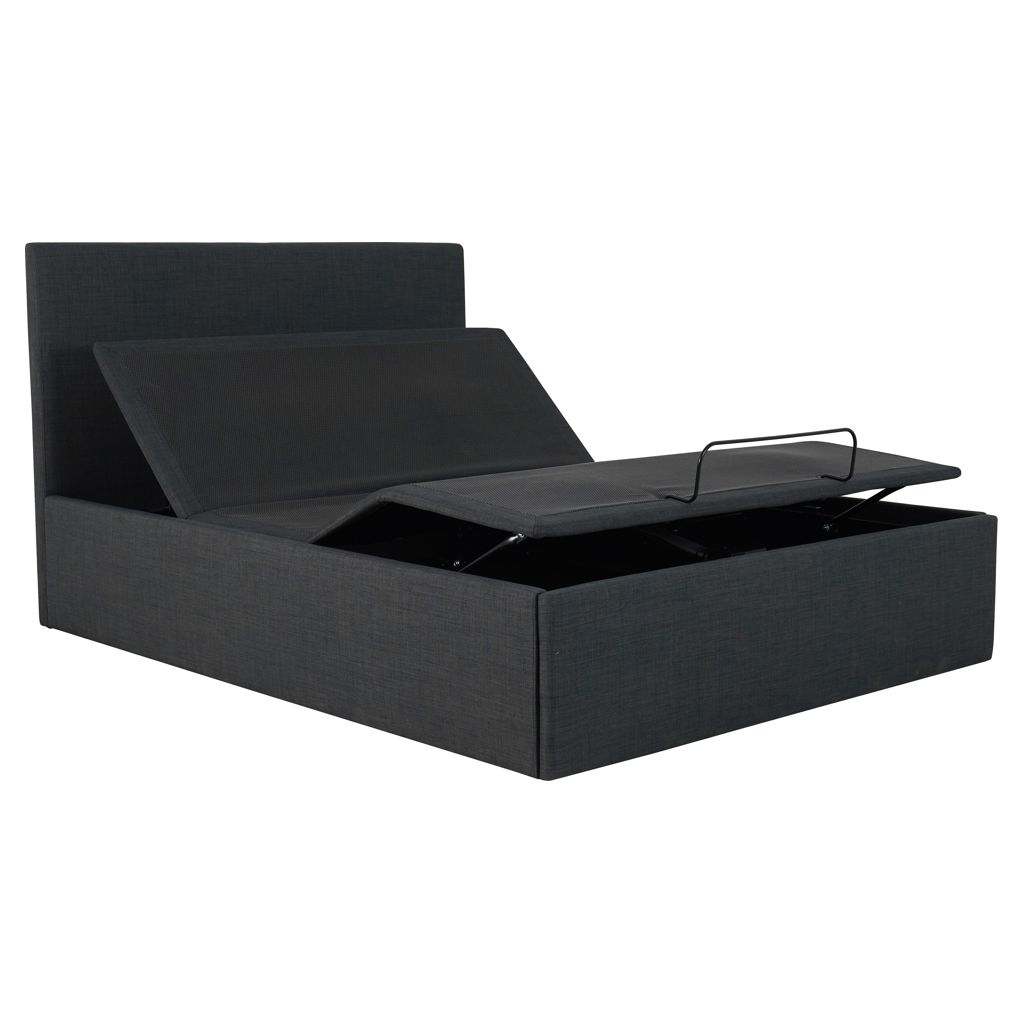 Lit rembourré complet avec lit ajustable, 25 pieds cube de rangement à l'intérieur du lit, disponible version Queen et version King, moteurs de vibration, 3 positions préprogrammées et ajustables, bouton de remise à plat, on peut le faire fonctionner à une seul main (lever et descendre le lit).