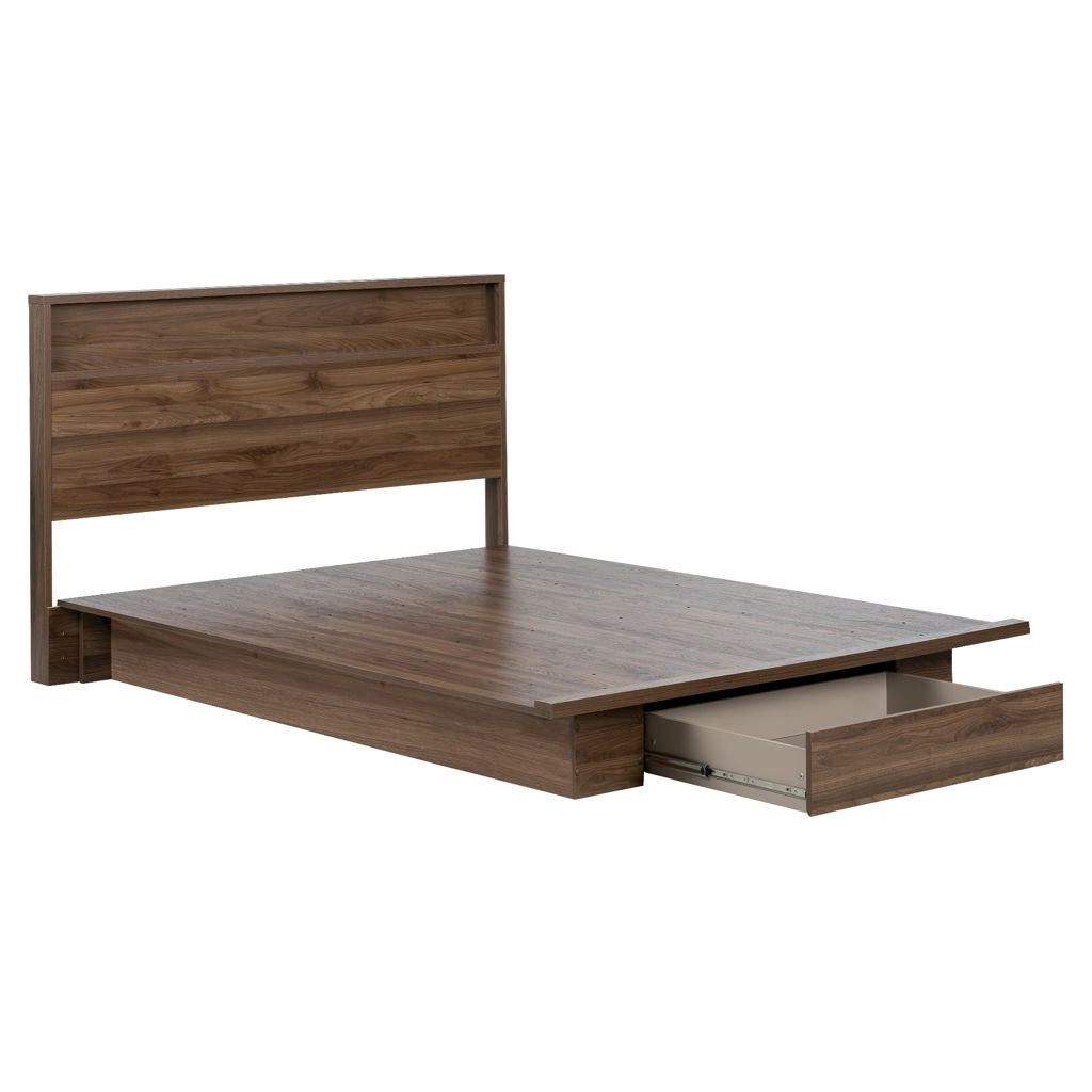 Vous n´êtes pas seul à manquer de place dans la maison pour tout ranger! Investissez dans du mobilier aussi beau que fonctionnel afin de maximiser chaque recoin de votre chambre à coucher. Au bout du lit plateforme, se trouve un spacieux tiroir de rangement doté de glissières pleine extension qui vous offrira un espace de rangement supplémentaire pour vos vêtements hors saison. Utilisez la tablette de la tête de lit pour conserver vos essentiels du coucher à proximité.