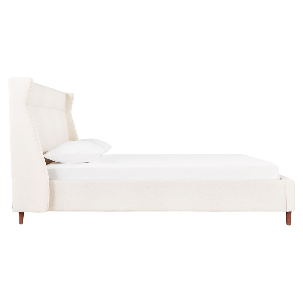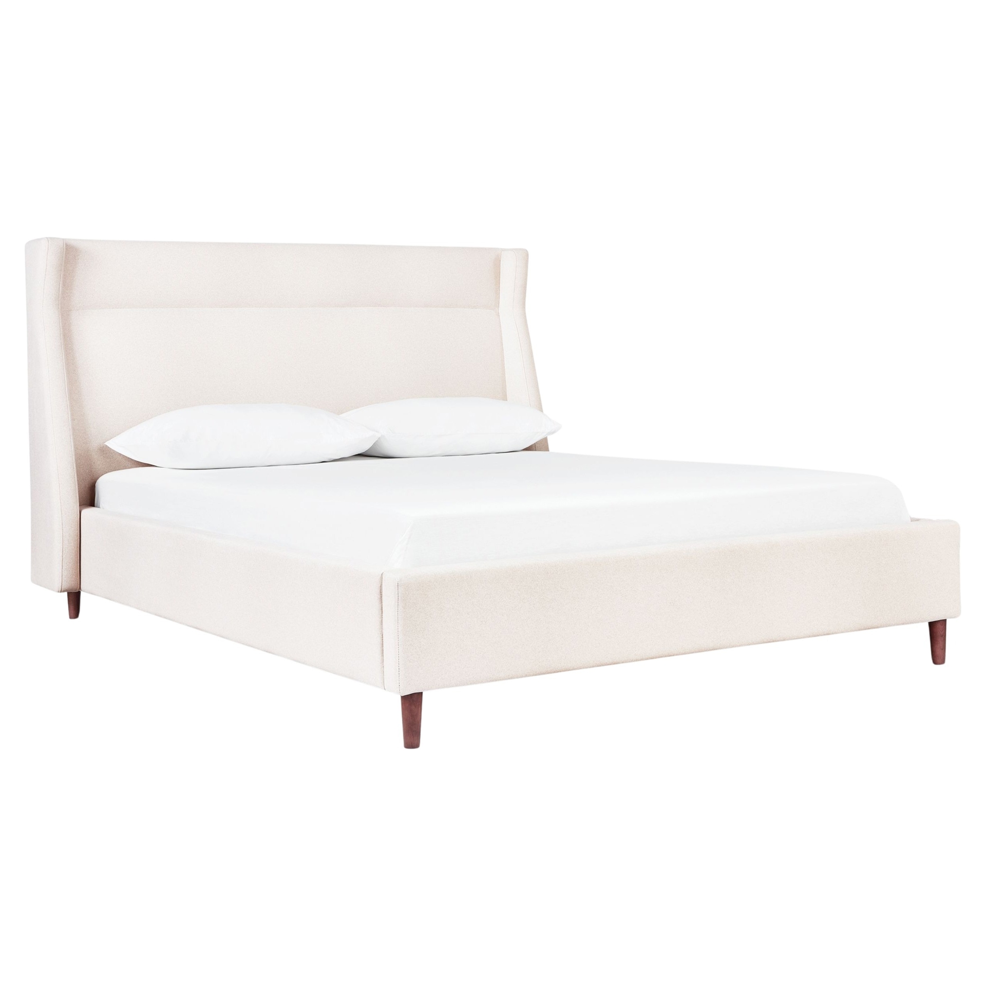 Le lit Carmichael fusionne les sensibilités traditionnelles et contemporaines, apportant des lignes épurées et modernes à un style classique. La conception comprend une tête de lit, un pied de lit et des rails latéraux entièrement rembourrés, avec des pieds en bois massif élégants et effilés.