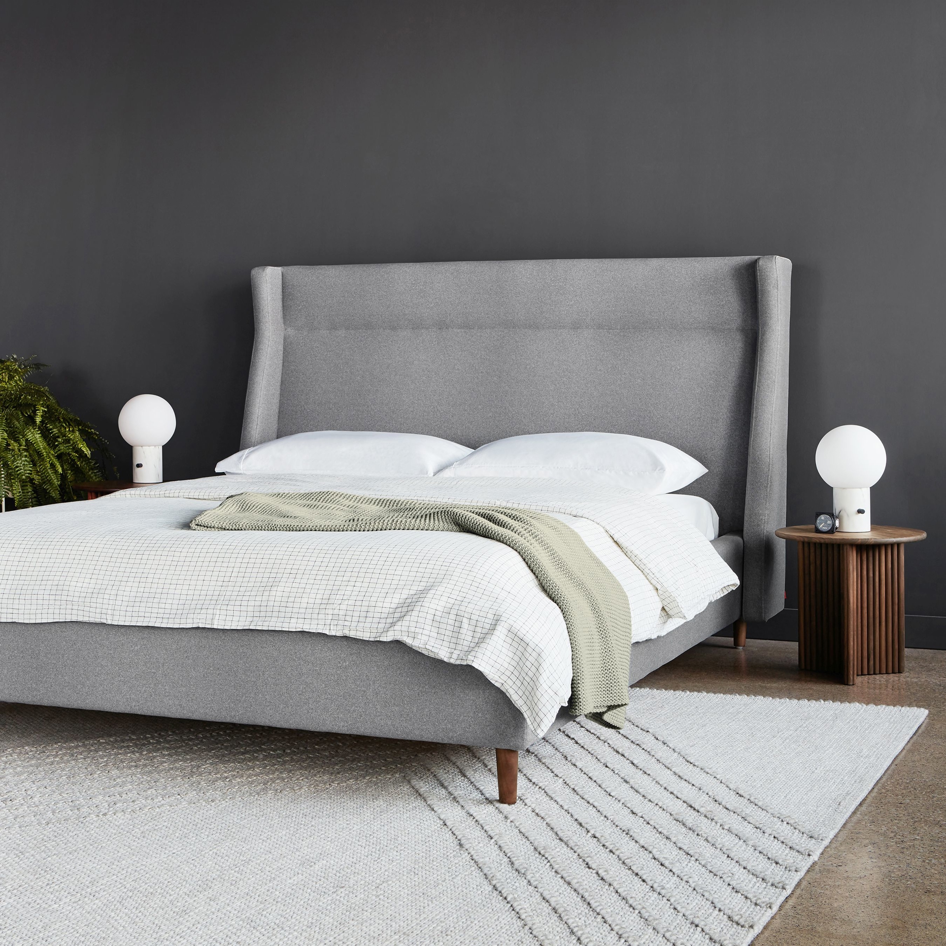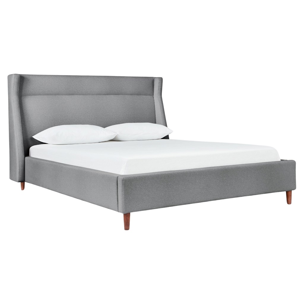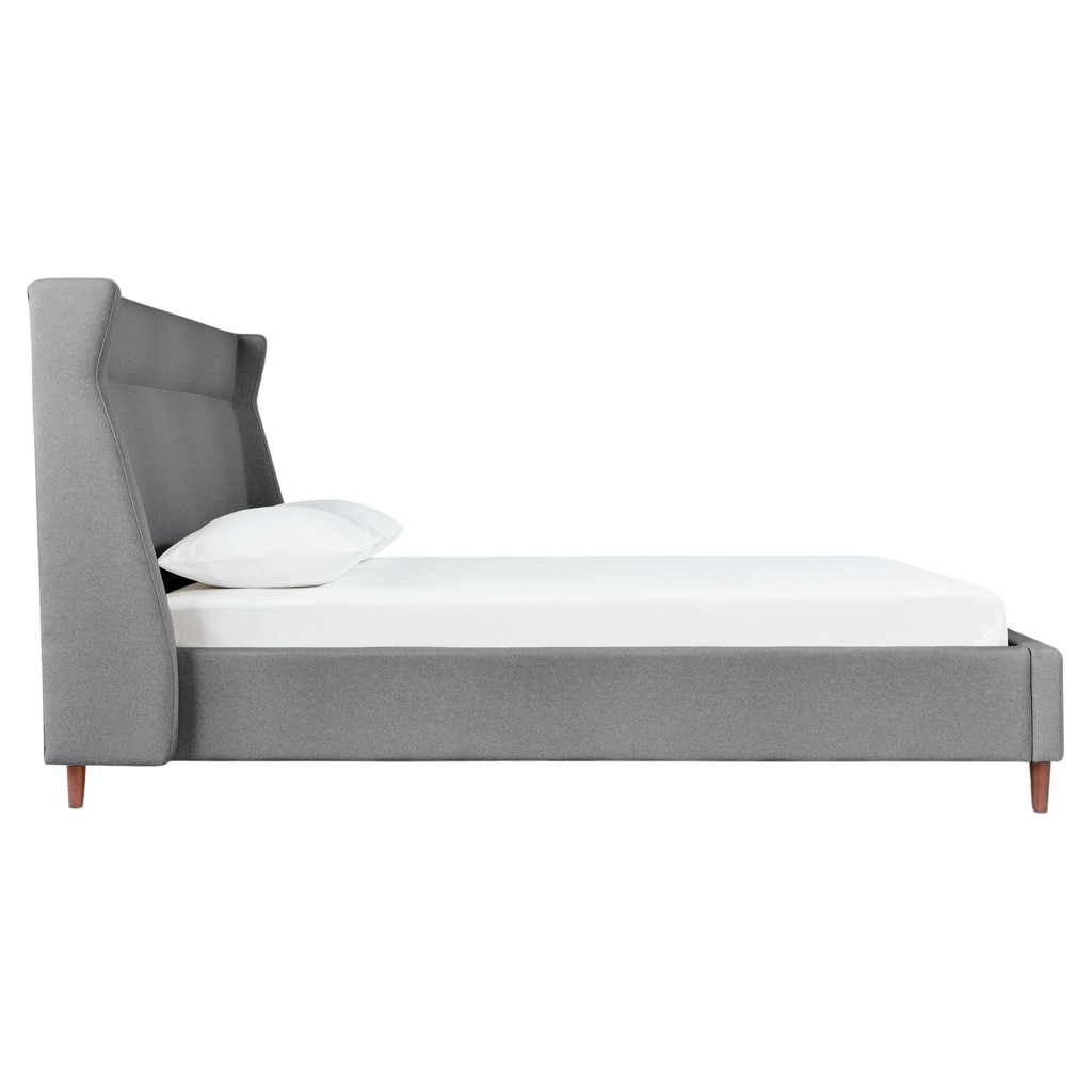 Le lit Carmichael fusionne les sensibilités traditionnelles et contemporaines, apportant des lignes épurées et modernes à un style classique. La conception comprend une tête de lit, un pied de lit et des rails latéraux entièrement rembourrés, avec des pieds en bois massif élégants et effilés.