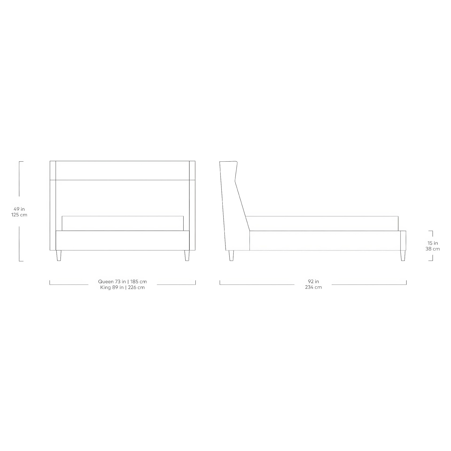 • Hauteur de la base de lit : 15 po