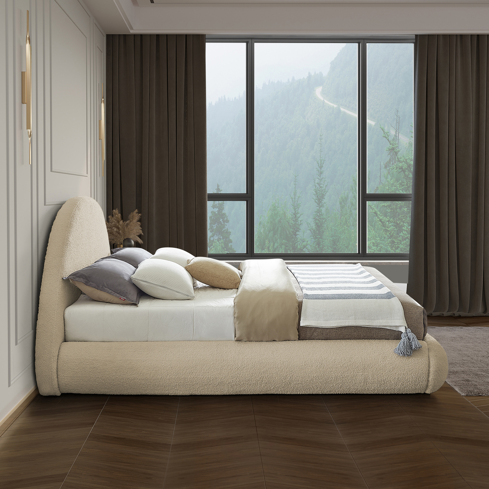Donnez à votre chambre à coucher une touche moderne avec ce lit en tissu Teddy Rudy.