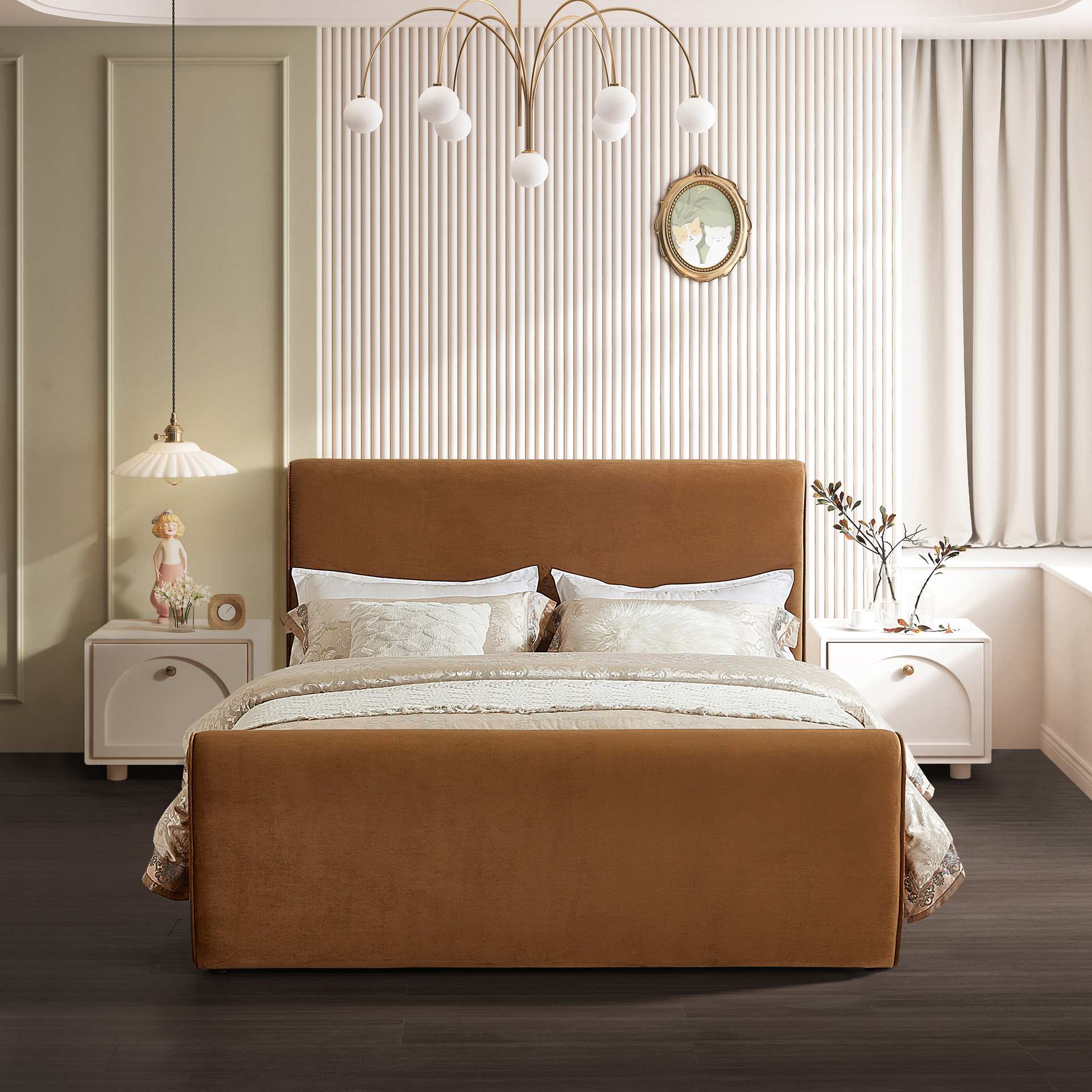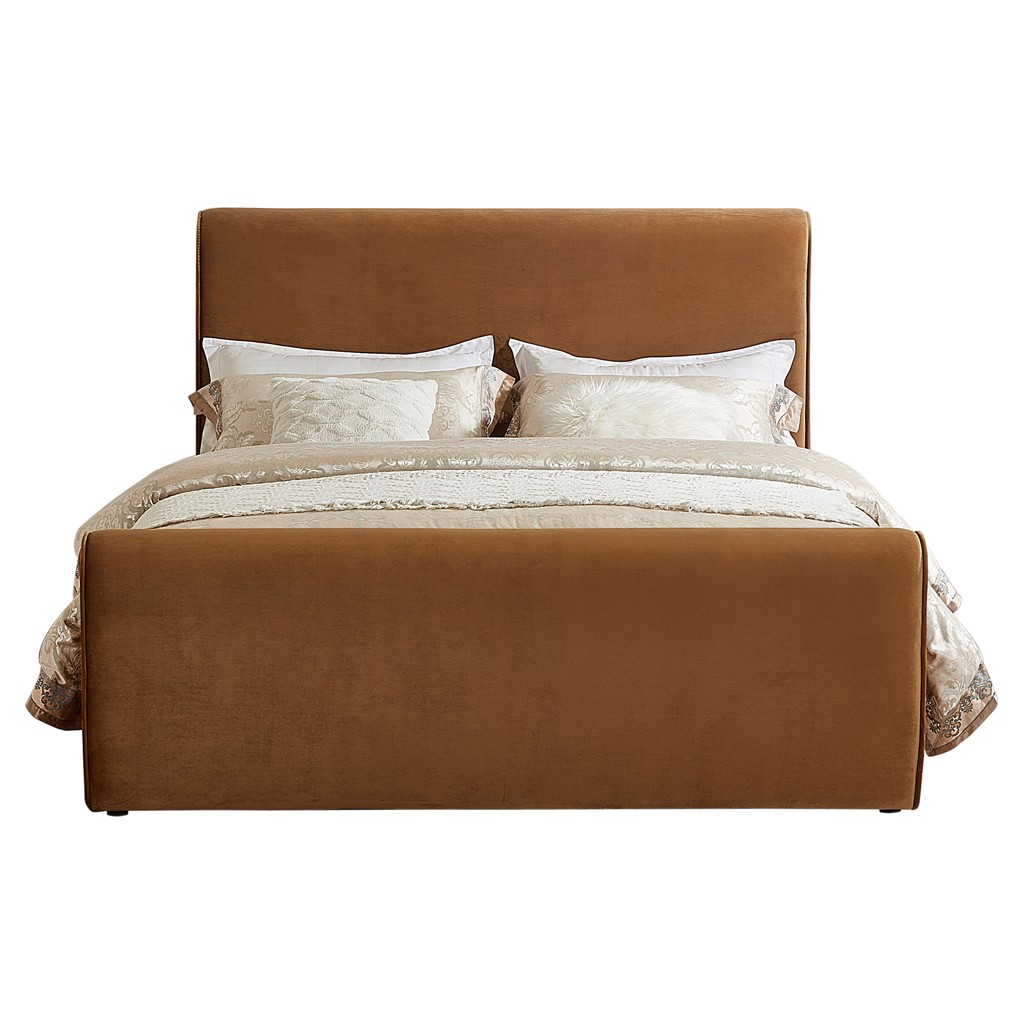 D’une beauté remarquable, ce lit est idéal pour transformer votre chambre et attirer tous les regards. Sa tête de lit, son pied de lit et ses côtés sont entièrement recouverts d’un velours brun ambré riche et ultra doux, offrant un rendu saisissant à l’élégance résolument contemporaine, que ce soit dans la chambre principale ou dans tout autre espace.