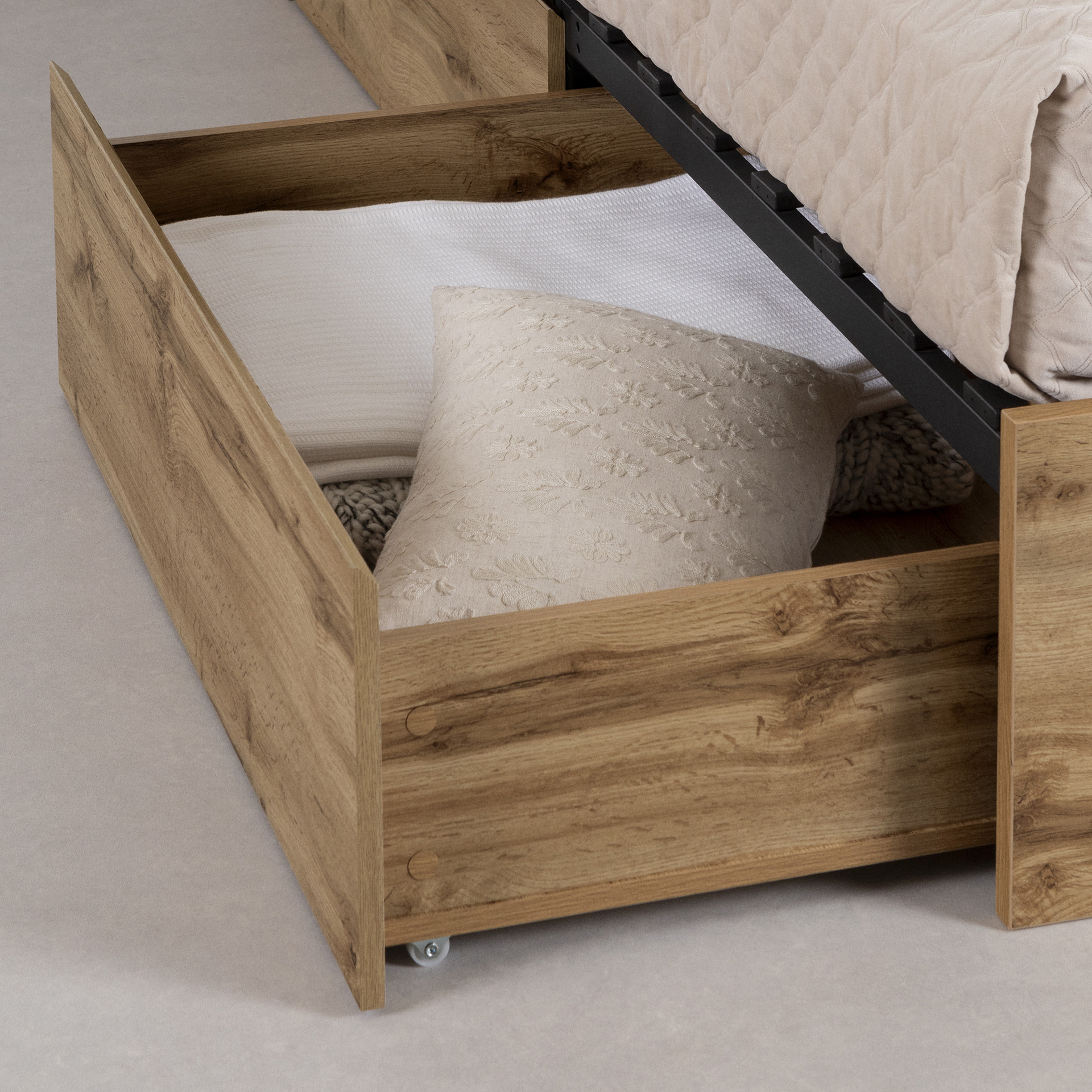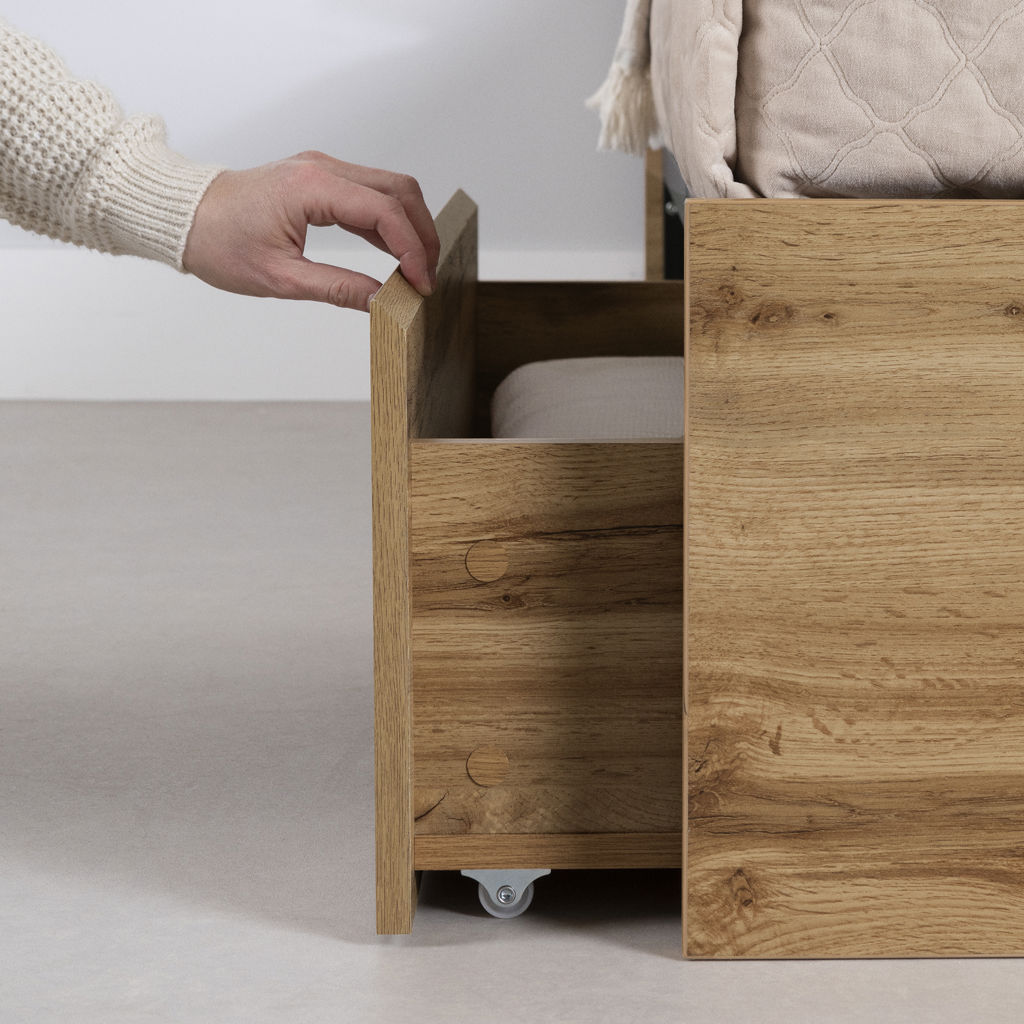 Dès le premier regard, vous serez séduit par ce lit complet doté d´une élégante tête de lit et de deux grands tiroirs sur roulettes. Puisque notre objectif comme fabricant de meubles est de vous offrir des produits aux fonctionnalités variées qui répondent à l´ensemble de vos besoins, vous aurez la possibilité lors de l´assemblage d´installer les tiroirs de chaque côté du lit ou tous d´un même côté.