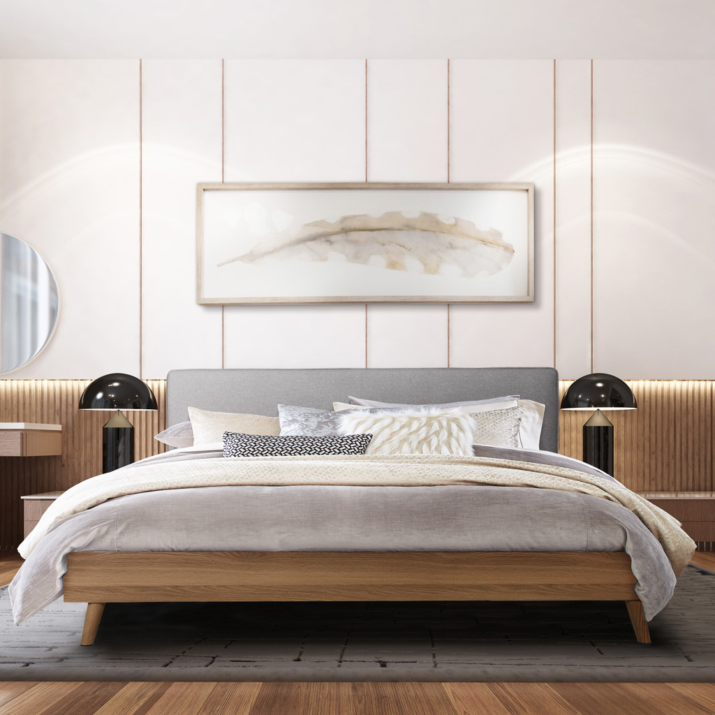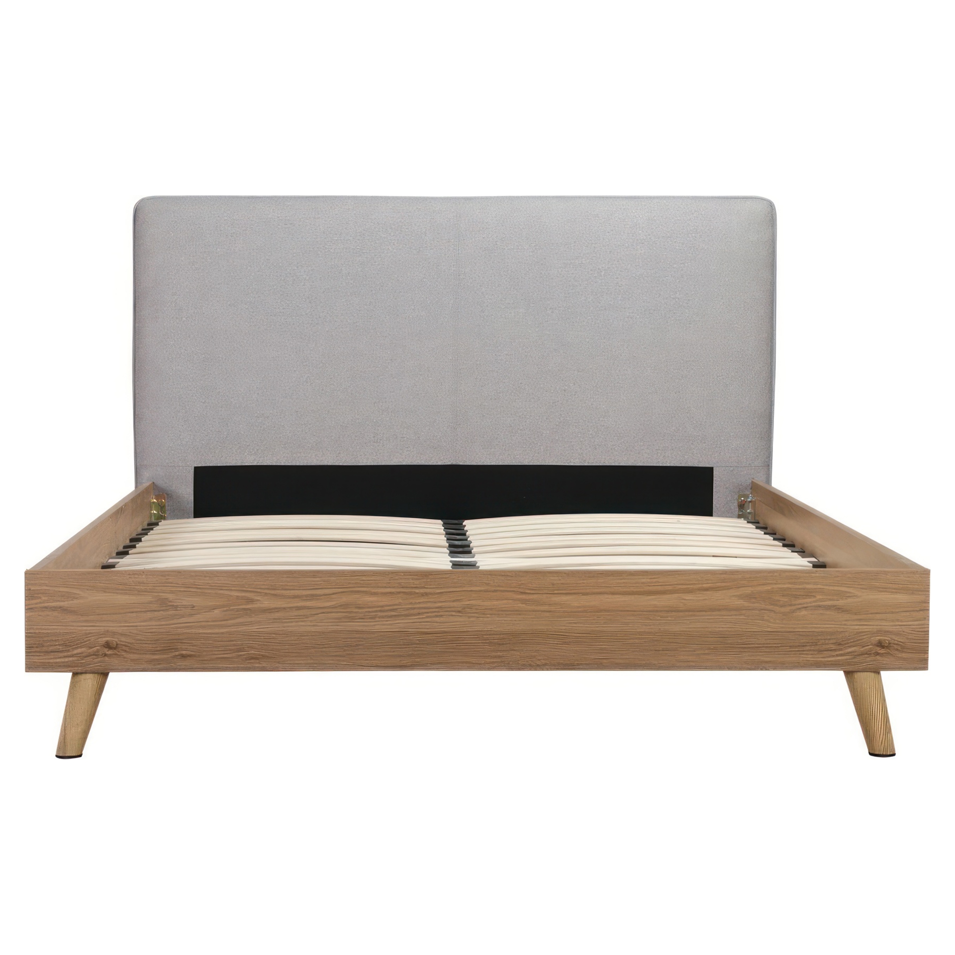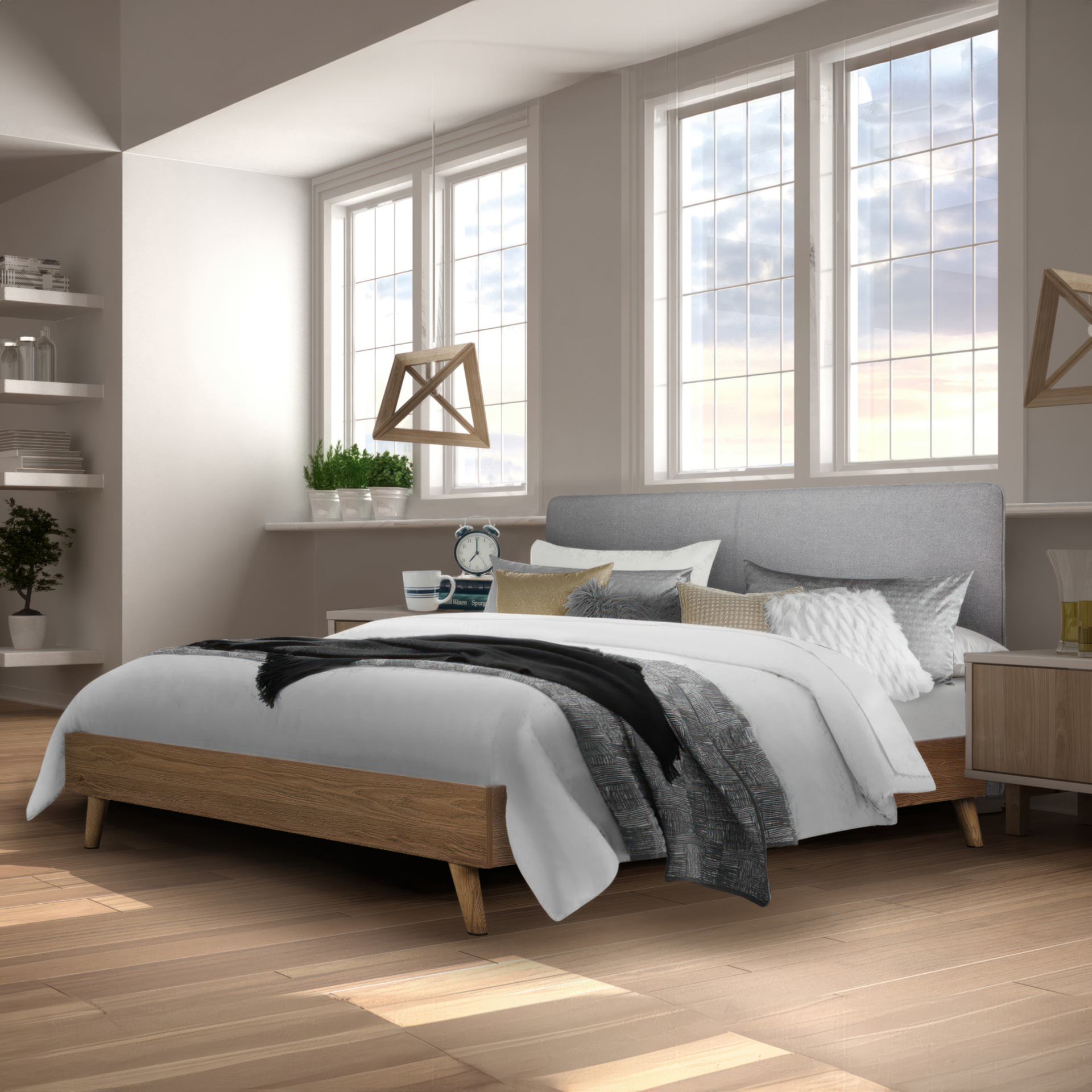Ce lit format Grand lit à tête en tissu et côtés en bois vous procurera des heures de sommeil inespérées.