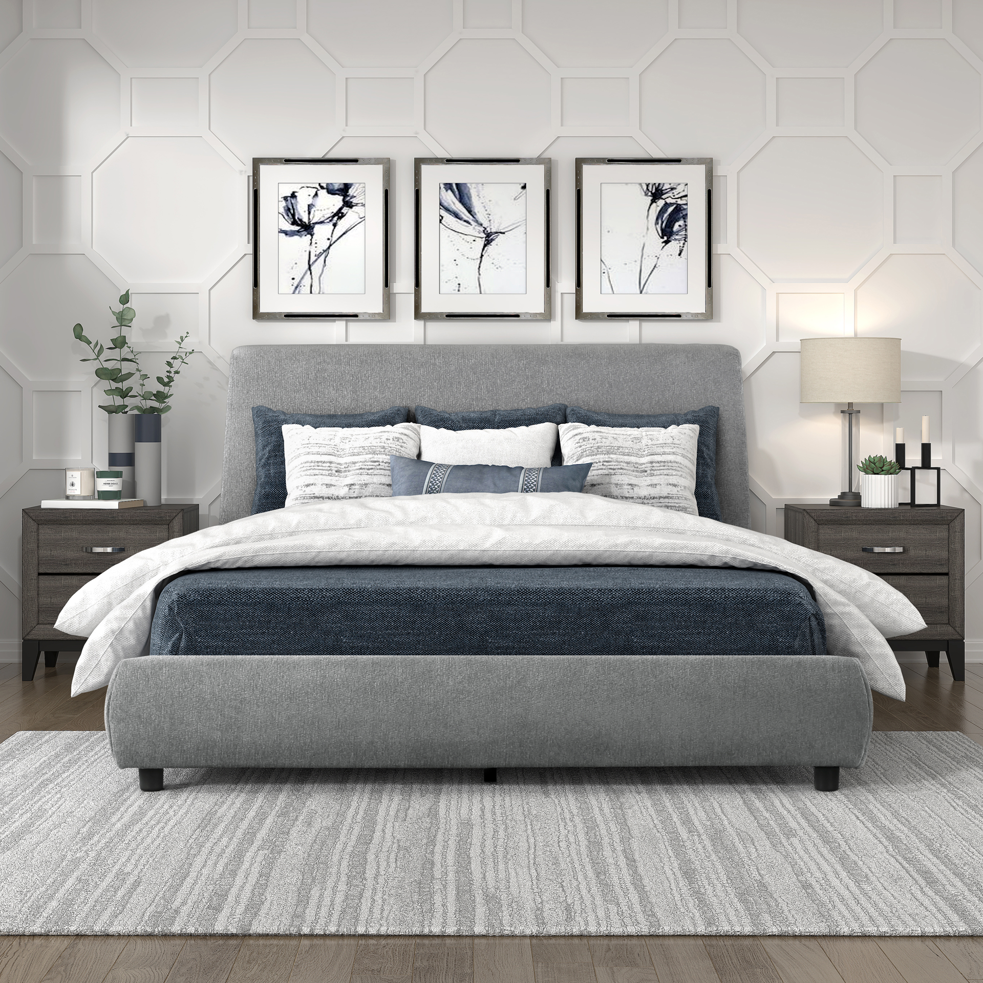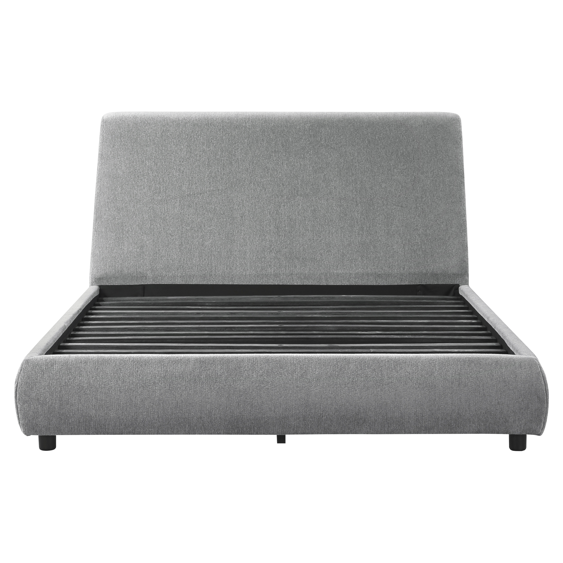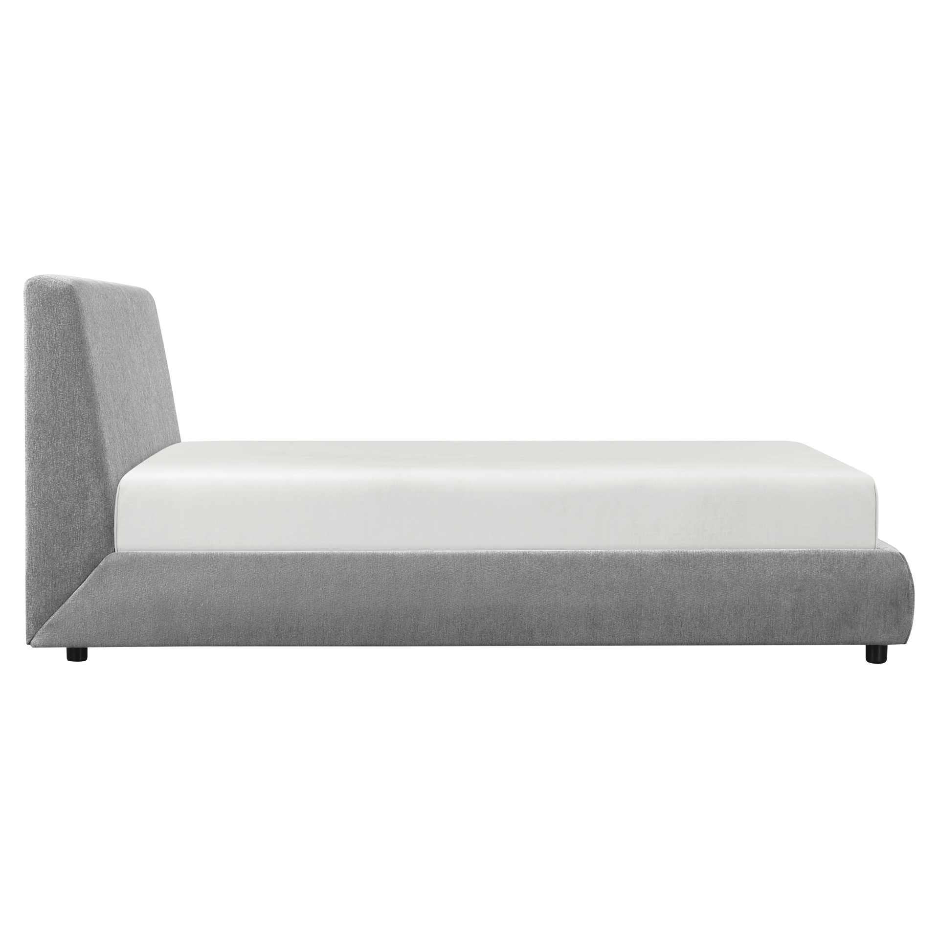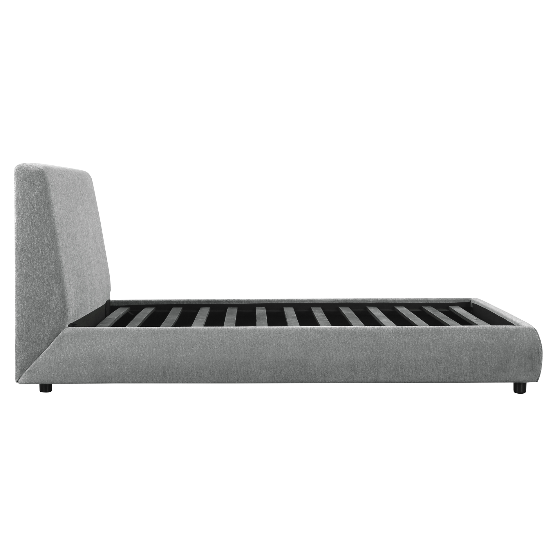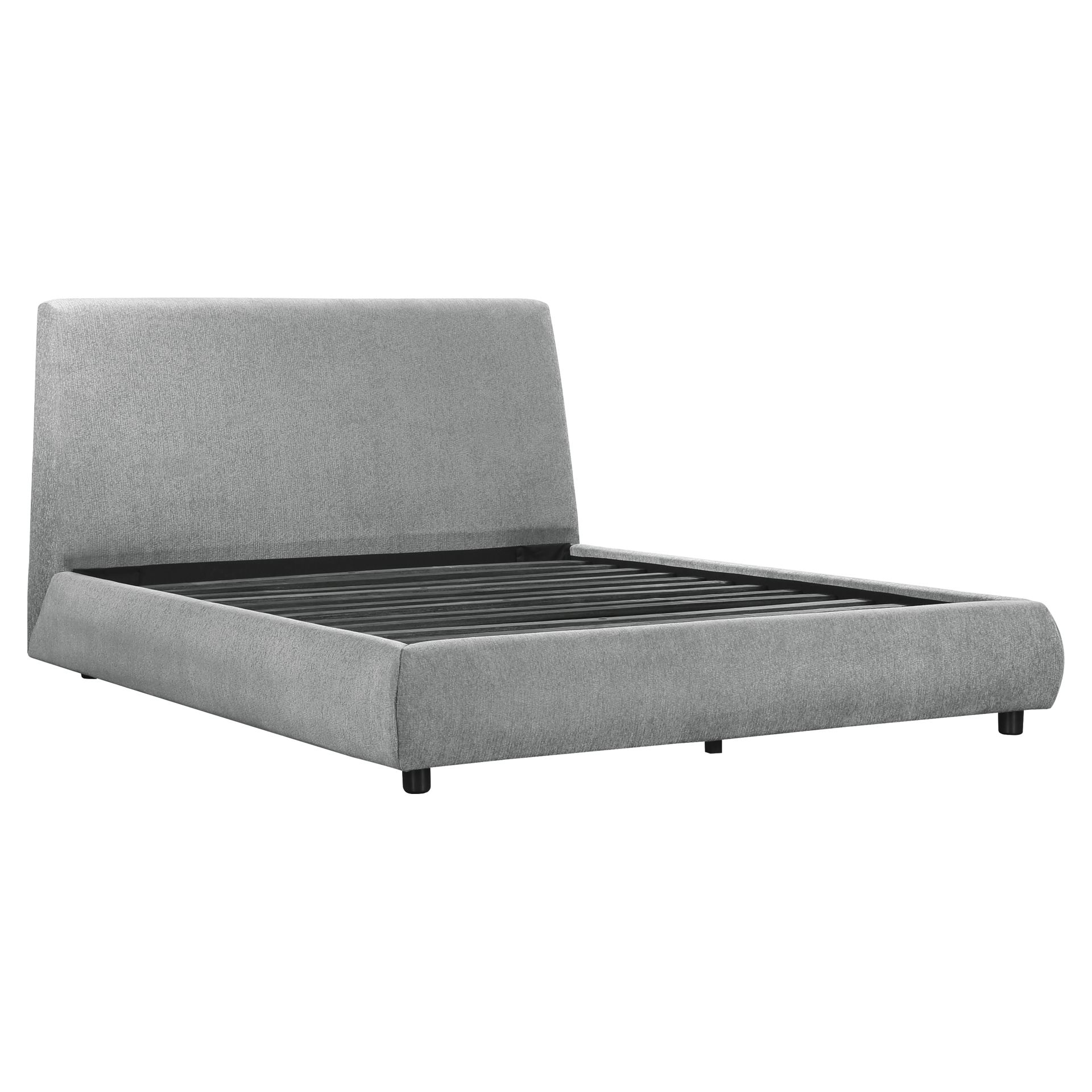 Le design de la collection est composé de lignes libres et d'un toucher doux, créant un ajout élégant à toute chambre moderne. Le profil sans entrave du profil de la tête de lit solidifie l'esthétique moderne de la collection. Le revêtement en tissu recouvre la tête de lit, le pied de lit et les rails du lit plateforme ultra-bas.