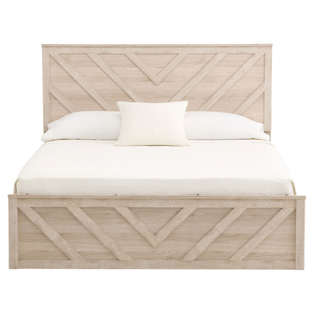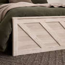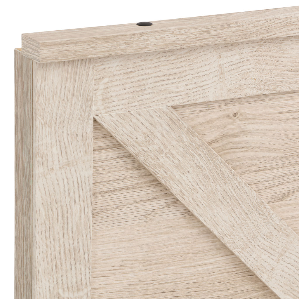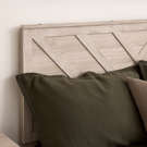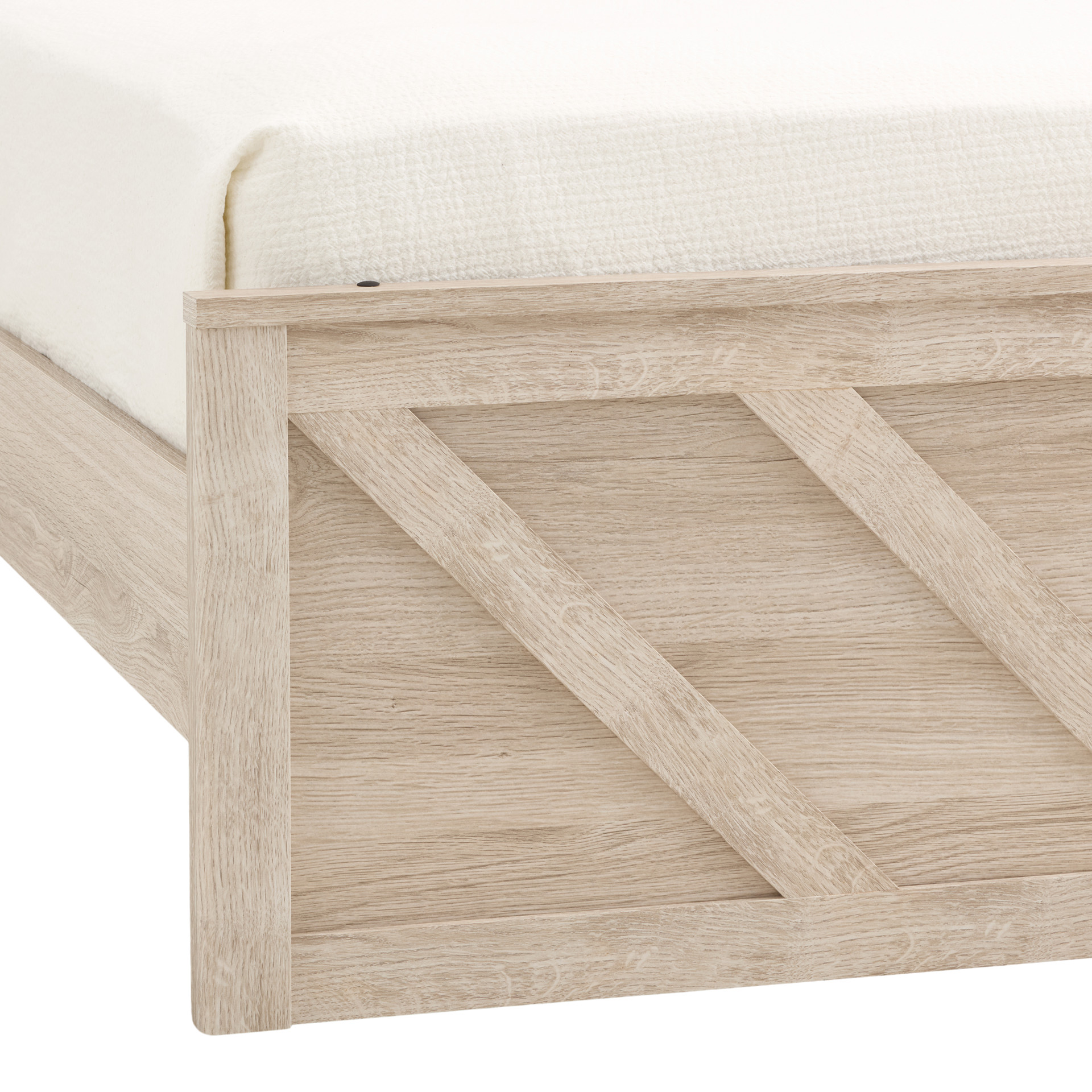 Sa finition effet bois naturel apporte chaleur et sérénité, tandis que sa construction robuste garantit stabilité et durabilité pour des années de confort. Le design réfléchi de la tête et du pied de lit ajoute une dimension visuelle unique qui rehausse instantanément l'ambiance de votre chambre.