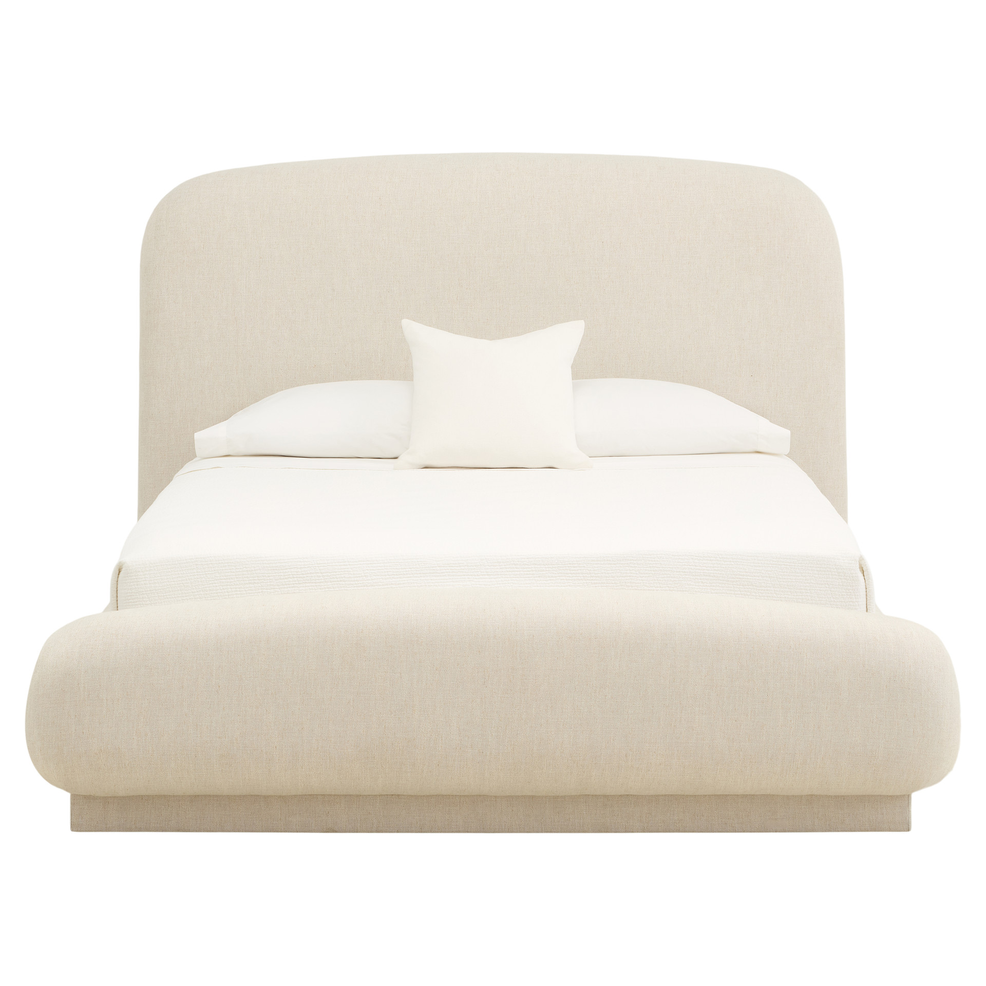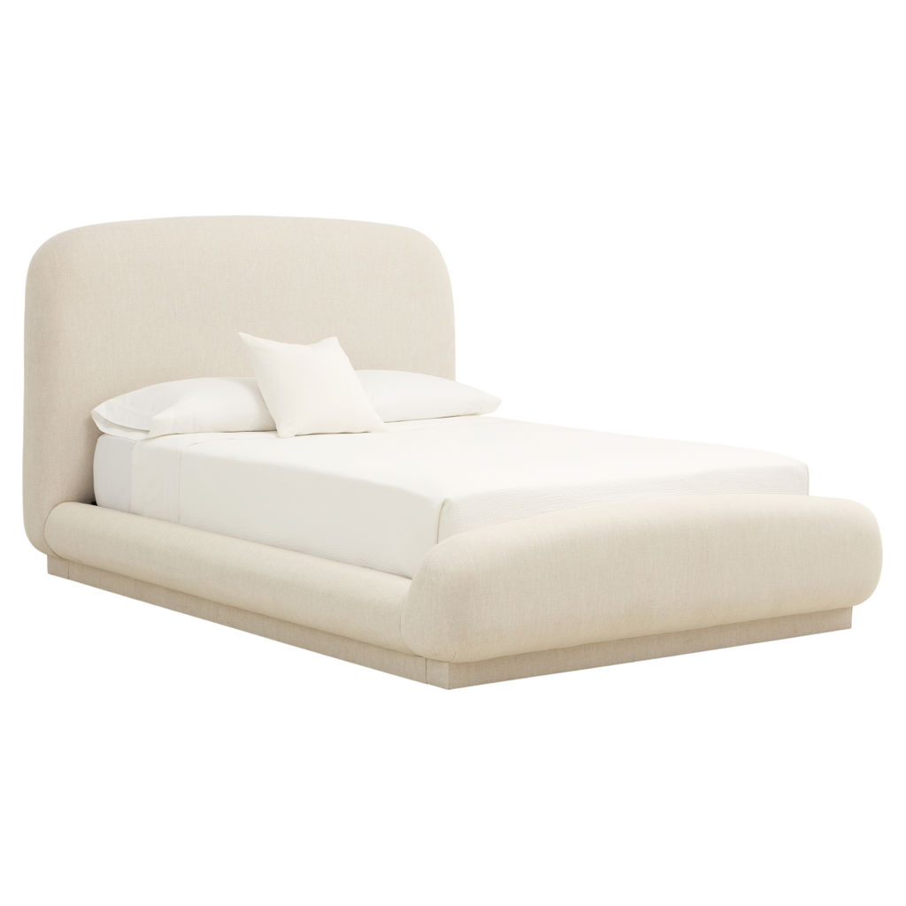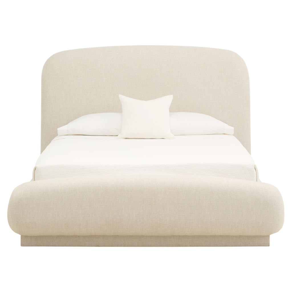 Son cadre entièrement rembourré et sa tête de lit aux lignes douces créent une sensation de confort immédiat, tout en apportant une présence rassurante et élégante à la chambre. Le revêtement en tissu clair contribue à illuminer l’espace et à instaurer une ambiance apaisante, propice à la détente.