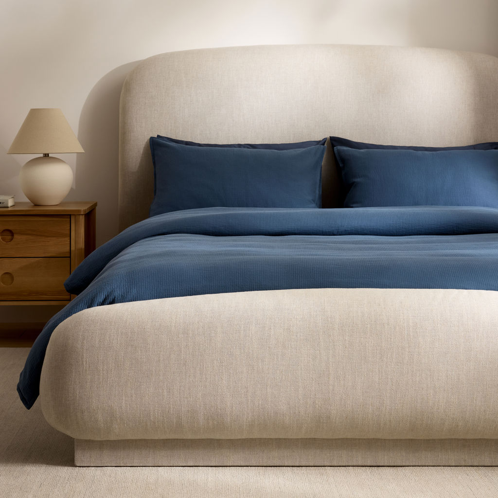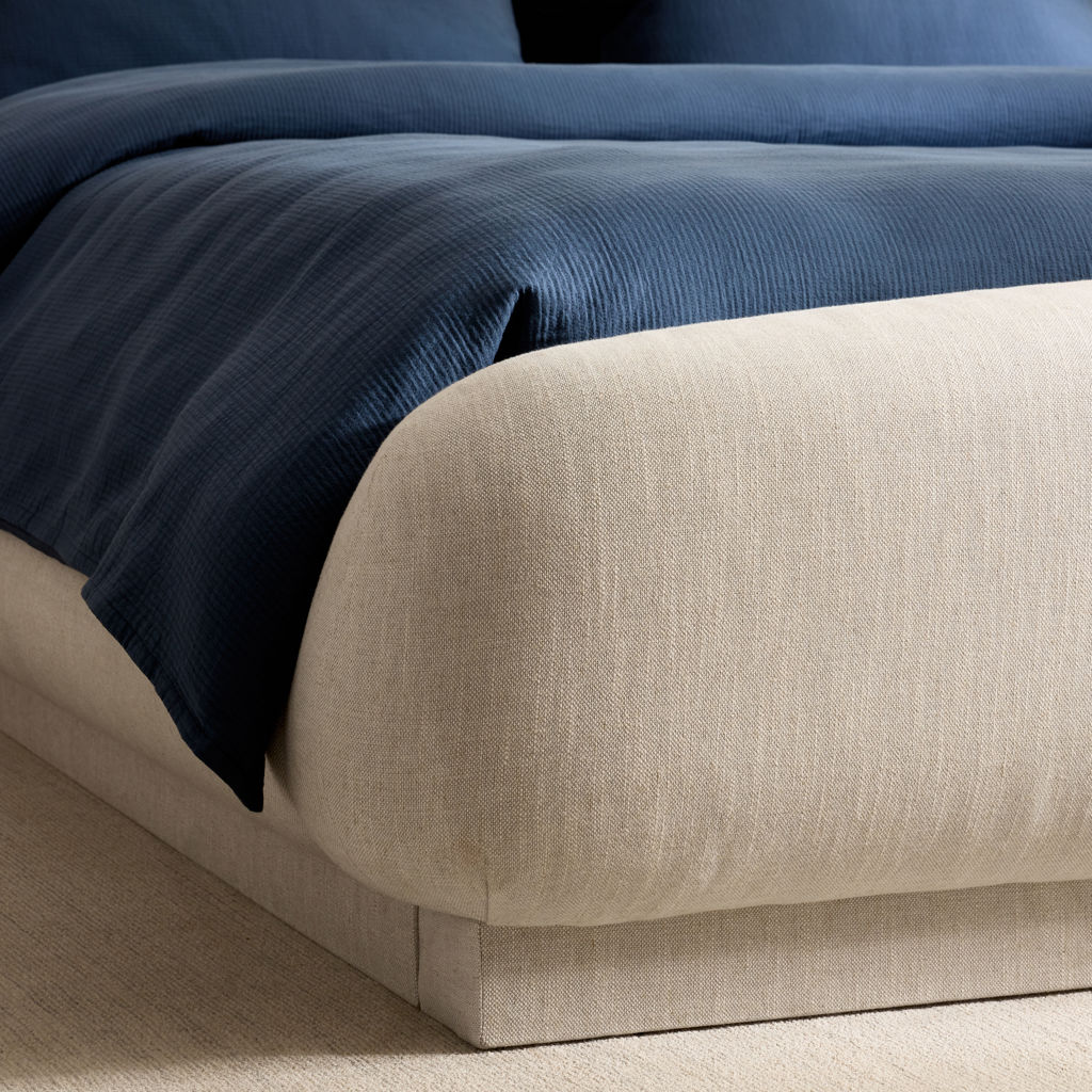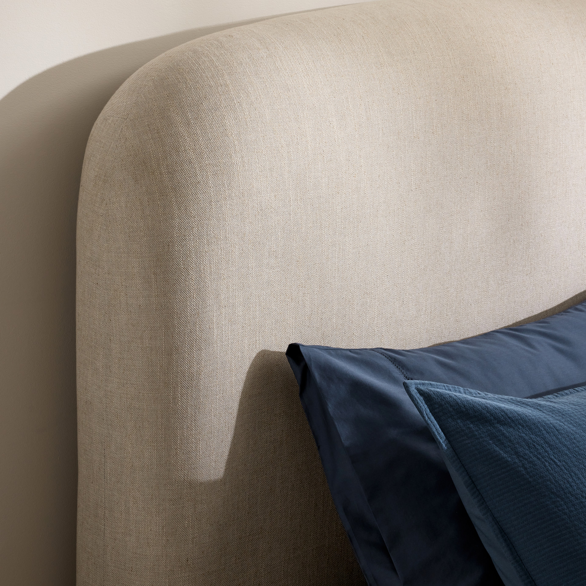 Le lit rembourré de la collection Tirimbina se distingue par ses formes généreuses et son allure enveloppante qui invitent au repos.