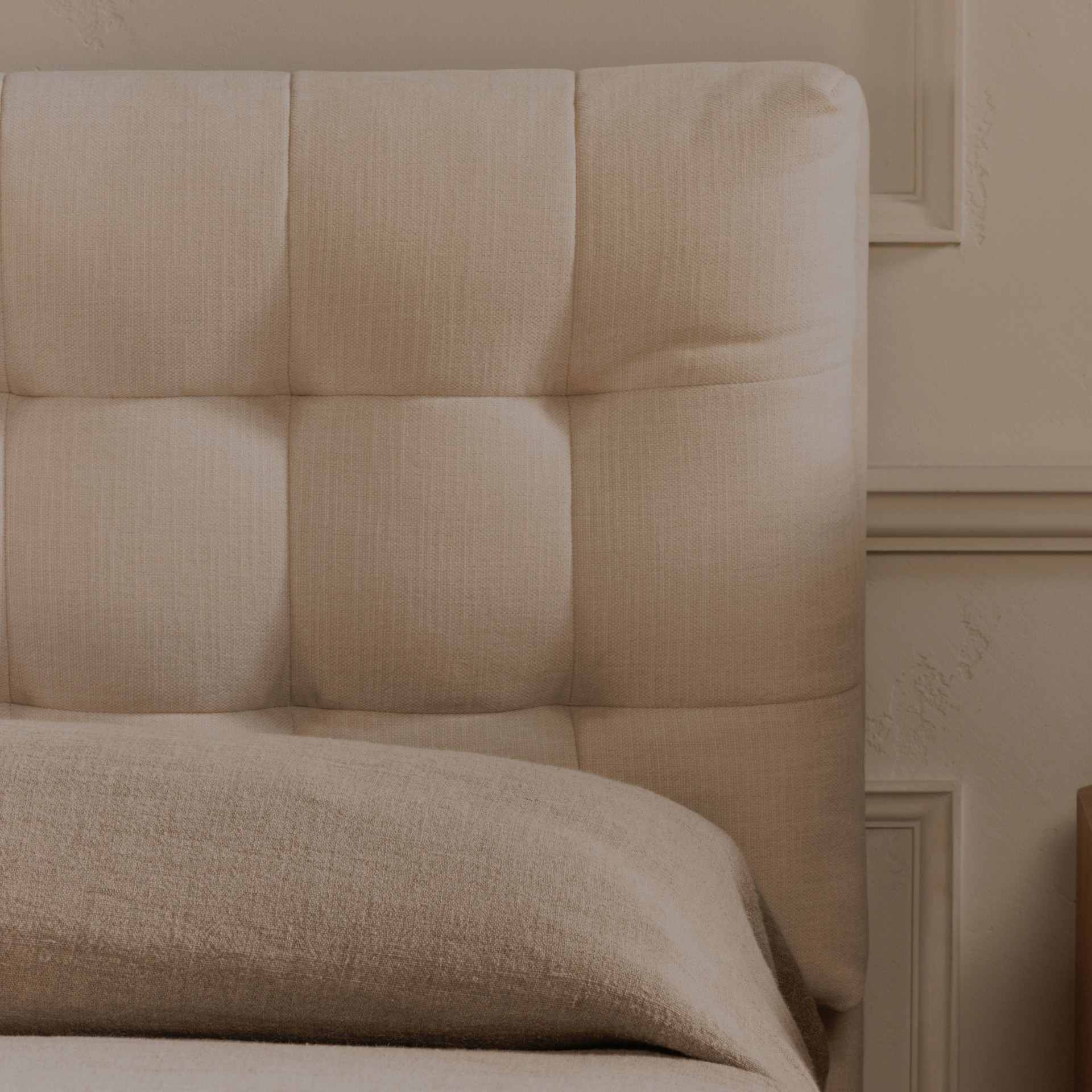 Offrez à votre chambre un parfait équilibre entre style et fonctionnalité avec le lit coffre Sebastion. Sa tête de lit capitonnée en double couche, au design inspiré d’un coussin, apporte une touche de confort et de sophistication. Revêtu d’un tissu en polyester doux et durable, il repose sur une structure en bois massif solide.