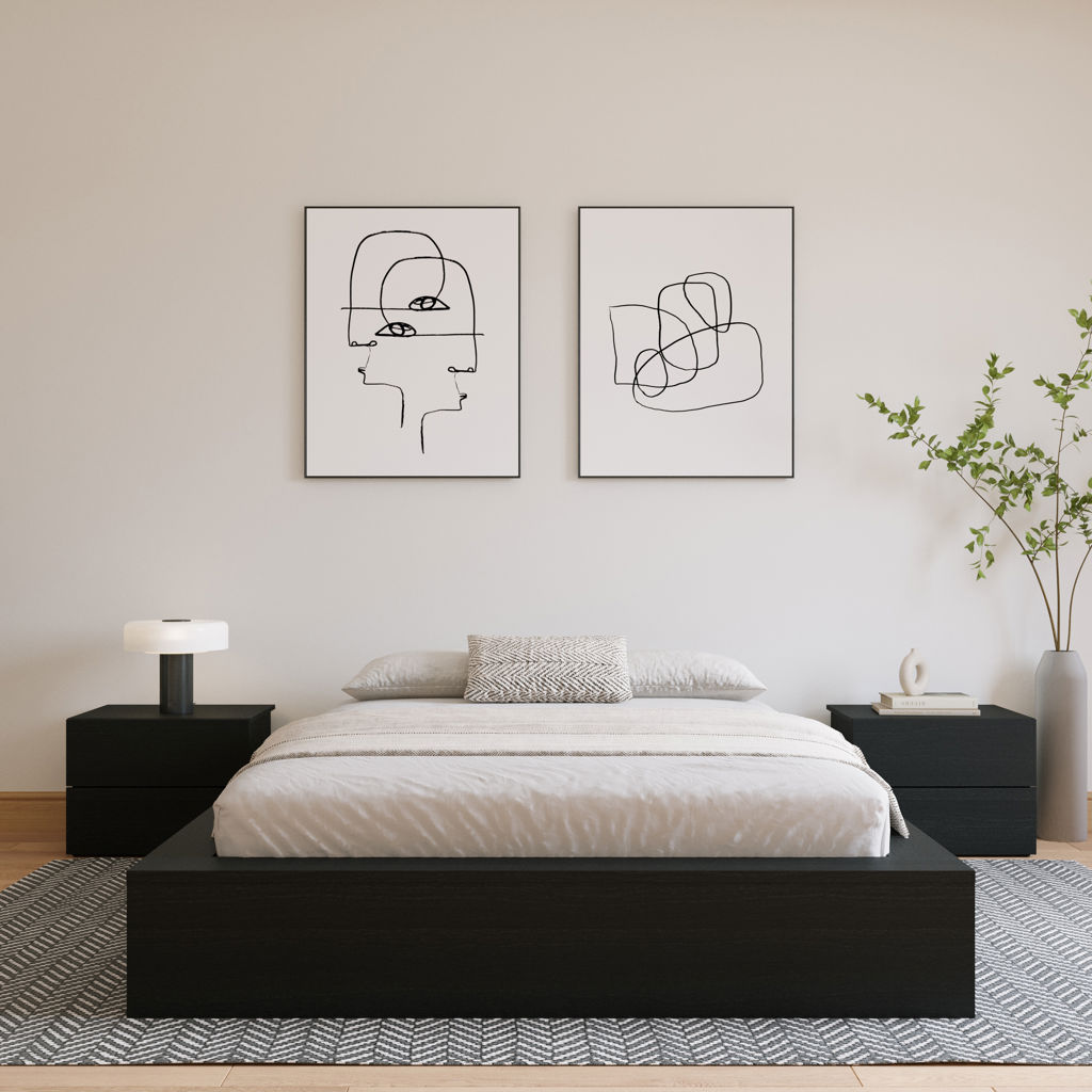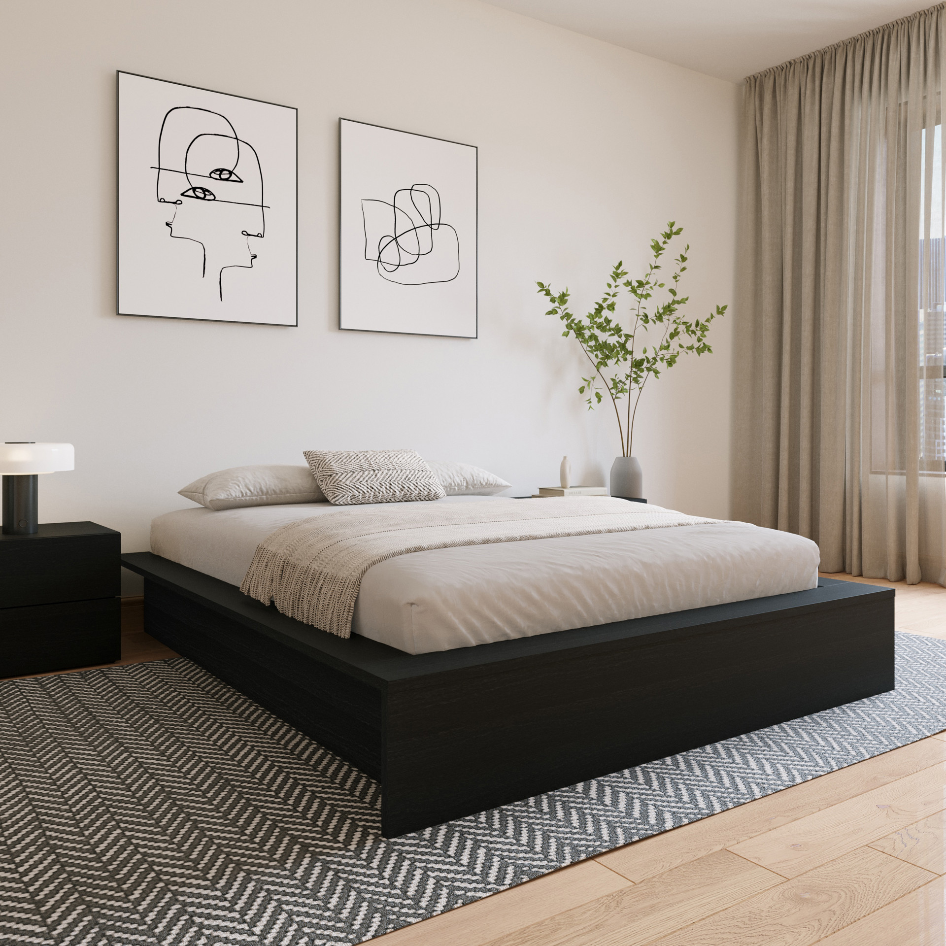 Découvrez notre grand lit plateforme noir, une parfaite fusion entre design contemporain et moderne. Fabriqué en bois d'ingénierie de haute qualité, ce lit apportera une touche chaleureuse et organique à votre espace. Les côtés extra-larges offrent non seulement un aspect élégant, mais servent également de surfaces pratiques pour vos livres ou vos appareils de charge.