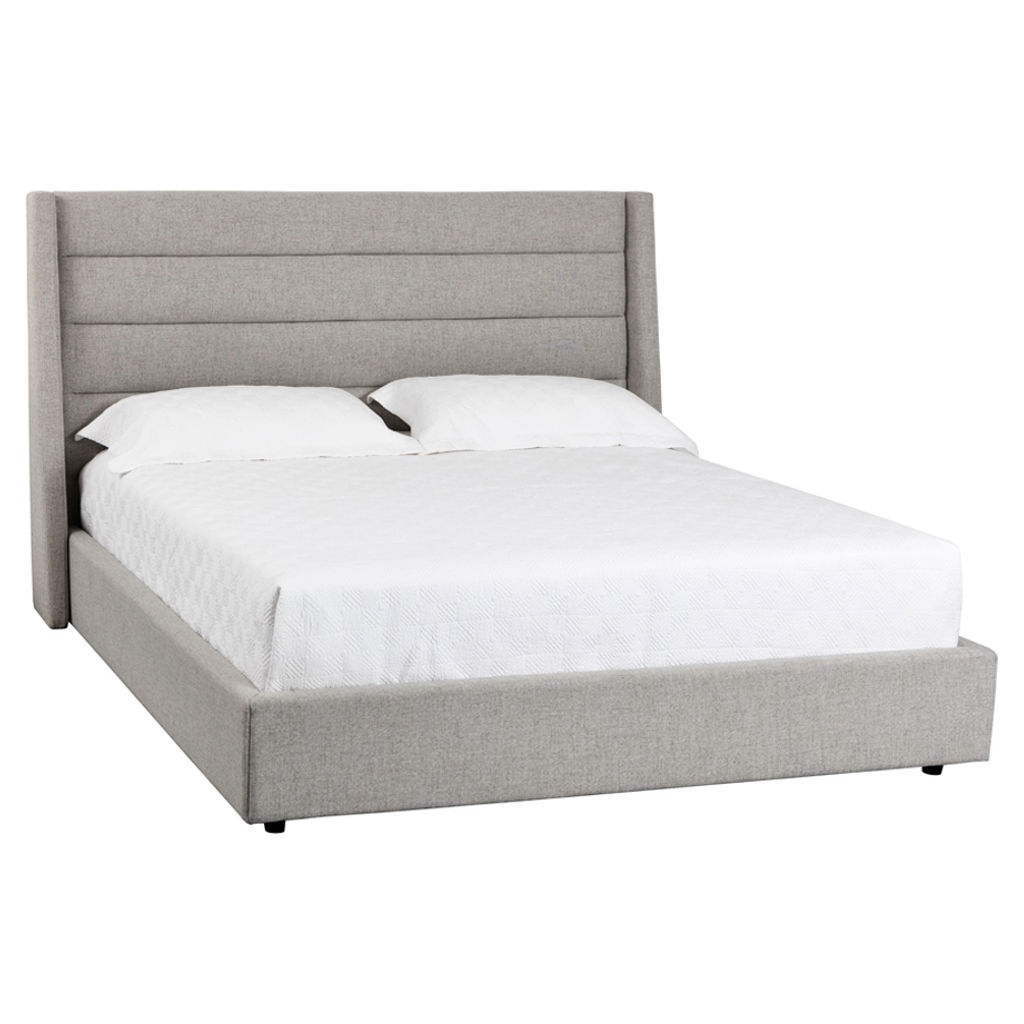 Ce lit rembourré de notre collection 5West présente un capitonnage à canaux horizontaux pour un look moderne. Fabriqué dans un tissu de marbre et de carrière avec des pieds en bois espresso. Aucun sommier n'est requis et les lattes sont incluses.