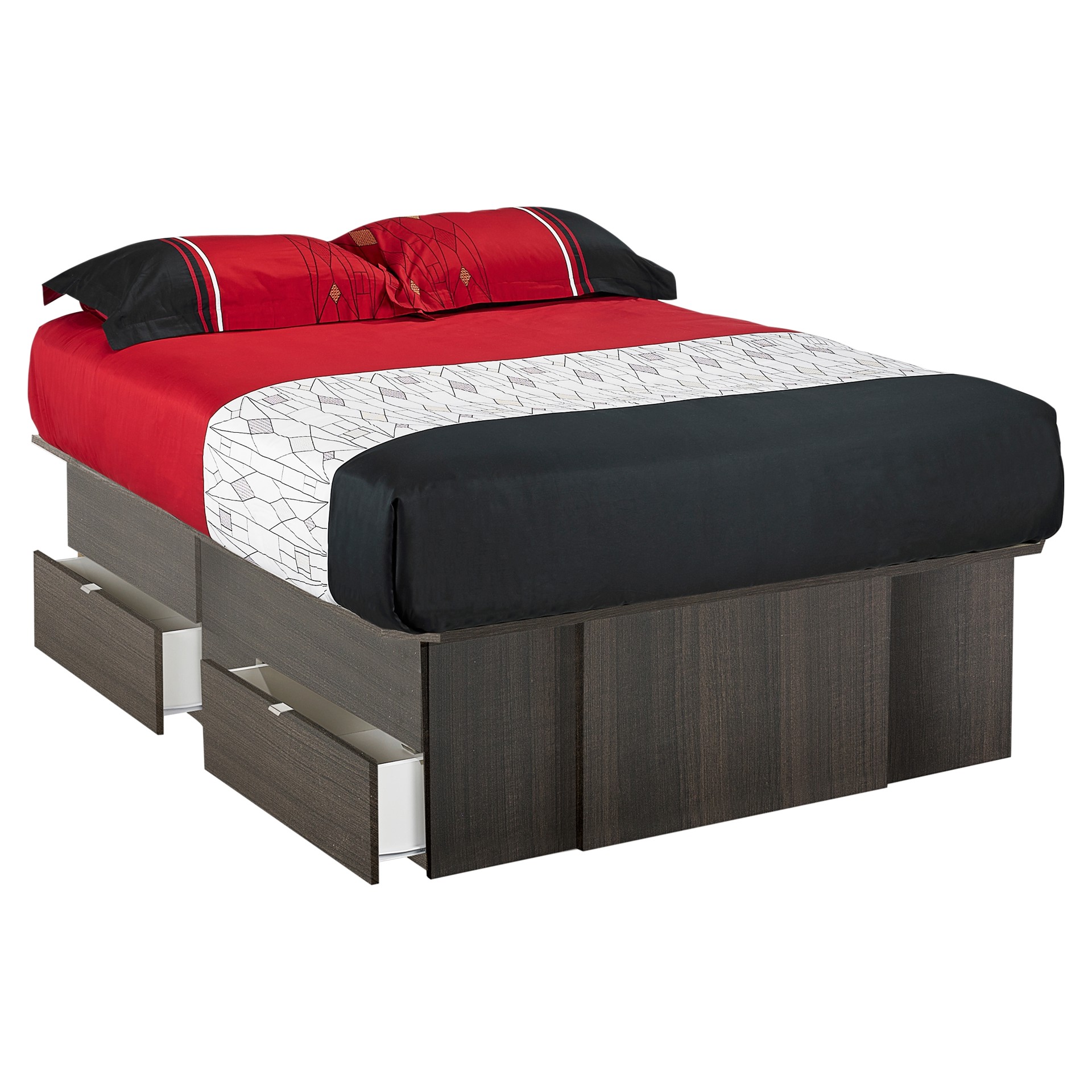 Ce lit de type plateforme d’une hauteur de 20 pouces est particulièrement pratique puisqu'il possède quatre tiroirs pouvant être installés à droite ou à gauche, vous offrant ainsi des espaces de rangement supplémentaires pour votre chambre à coucher.