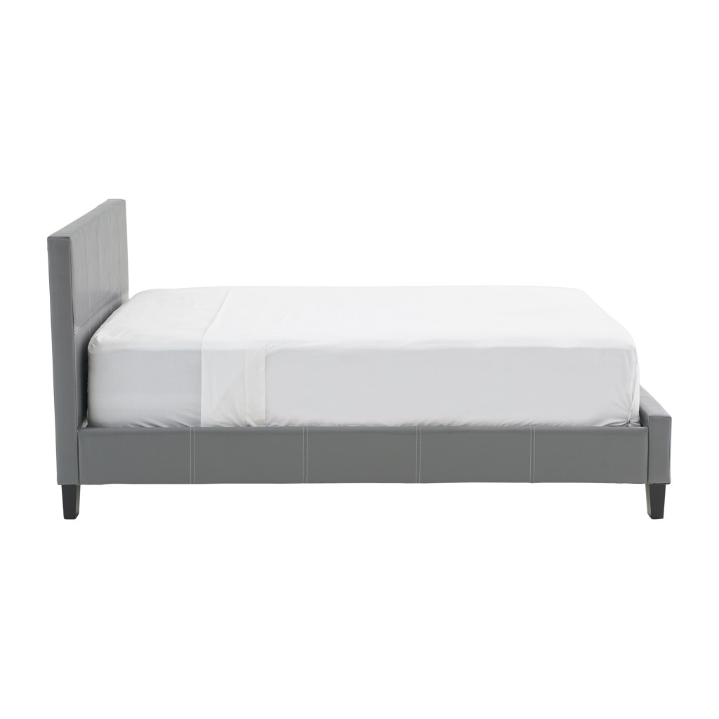 La tête de lit de ce lit plateforme se distingue par un élégant capitonnage à surpiqûres style baseball, qui se prolonge harmonieusement sur les côtés et le pied de lit. Ce détail moderne apporte une touche unique et un caractère affirmé à votre chambre, en faisant un véritable point focal.