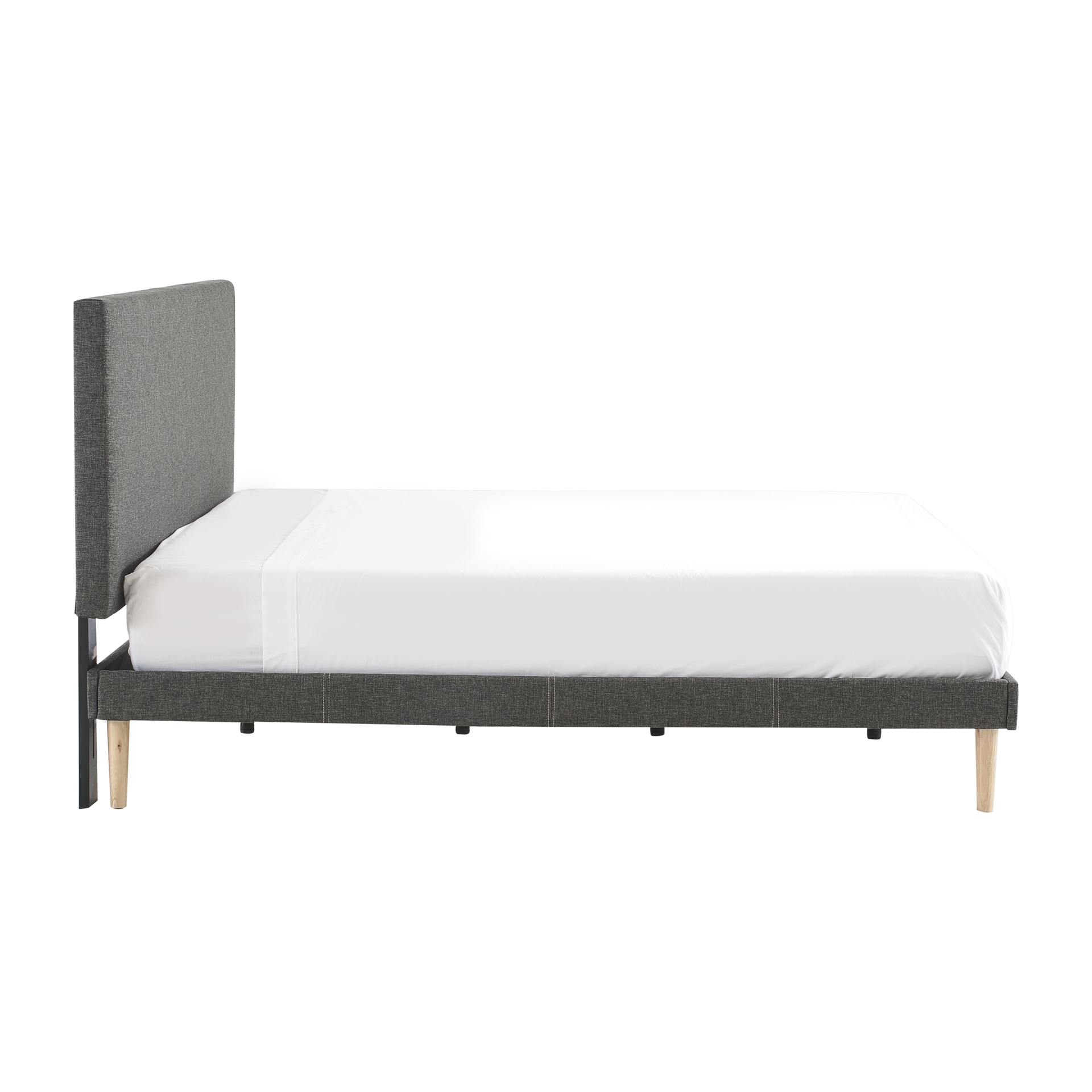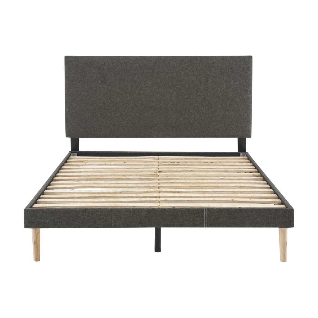 Magnifiquement recouvert de lin gris anthracite, ce très grand lit allie une couleur riche à un fini d'apparence naturelle.