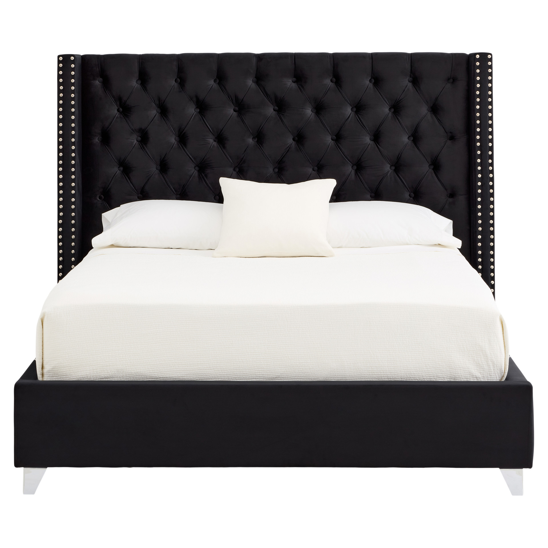 Les ailes rehaussées de clous ajoutent une touche de charme royal au design, créant une tête de lit qui se démarque vraiment et s'impose dans votre espace.