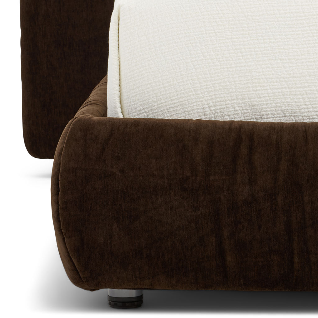 Recouvert d’un tissu doux de couleur brun foncé, il crée une atmosphère accueillante et apaisante dans la chambre.