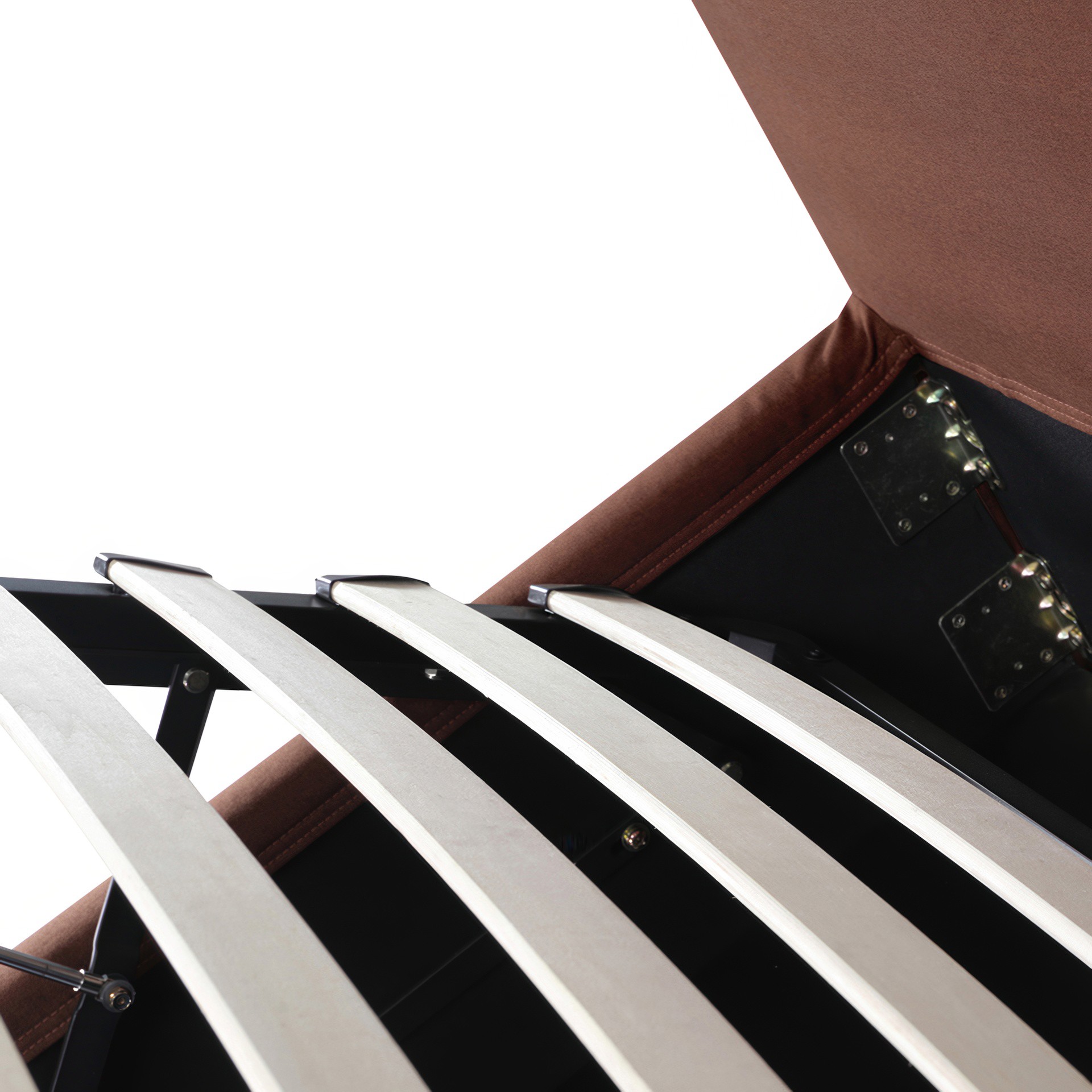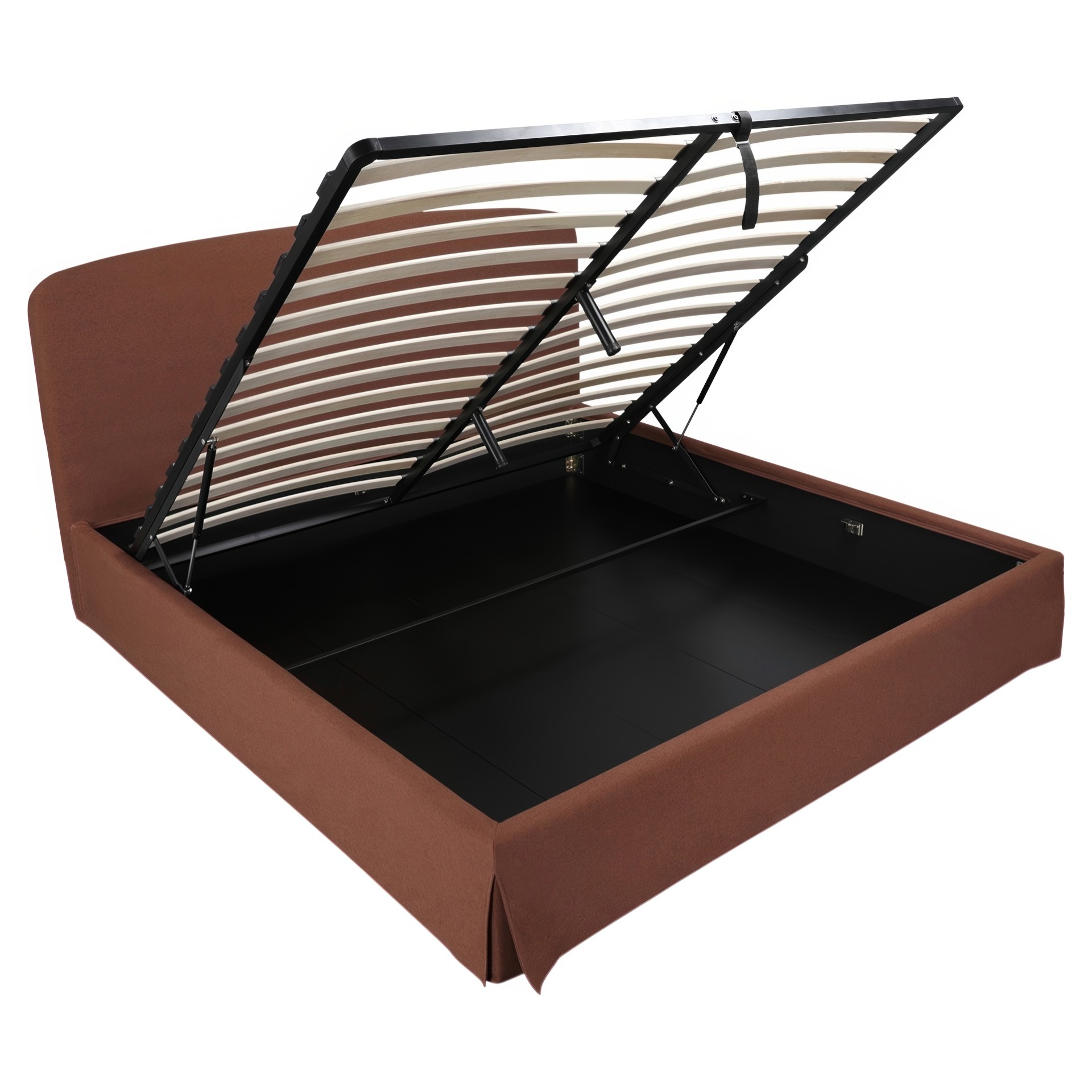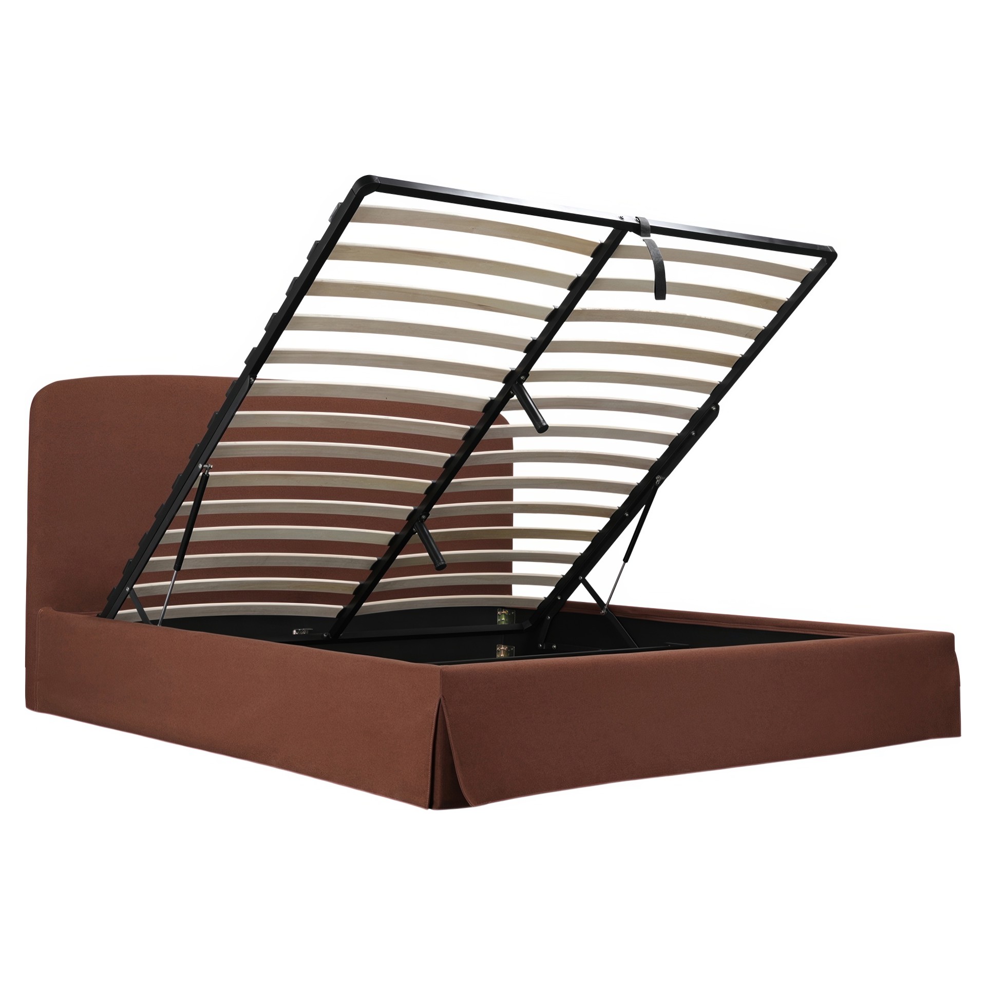 Le lit Joan est plus qu'il n'y paraît, avec un compartiment caché qui est innovant et facile d'accès. Sous le matelas, un système hydraulique révèle un grand espace de rangement soigneusement rangé, tandis qu'une housse entièrement amovible permet un nettoyage facile.